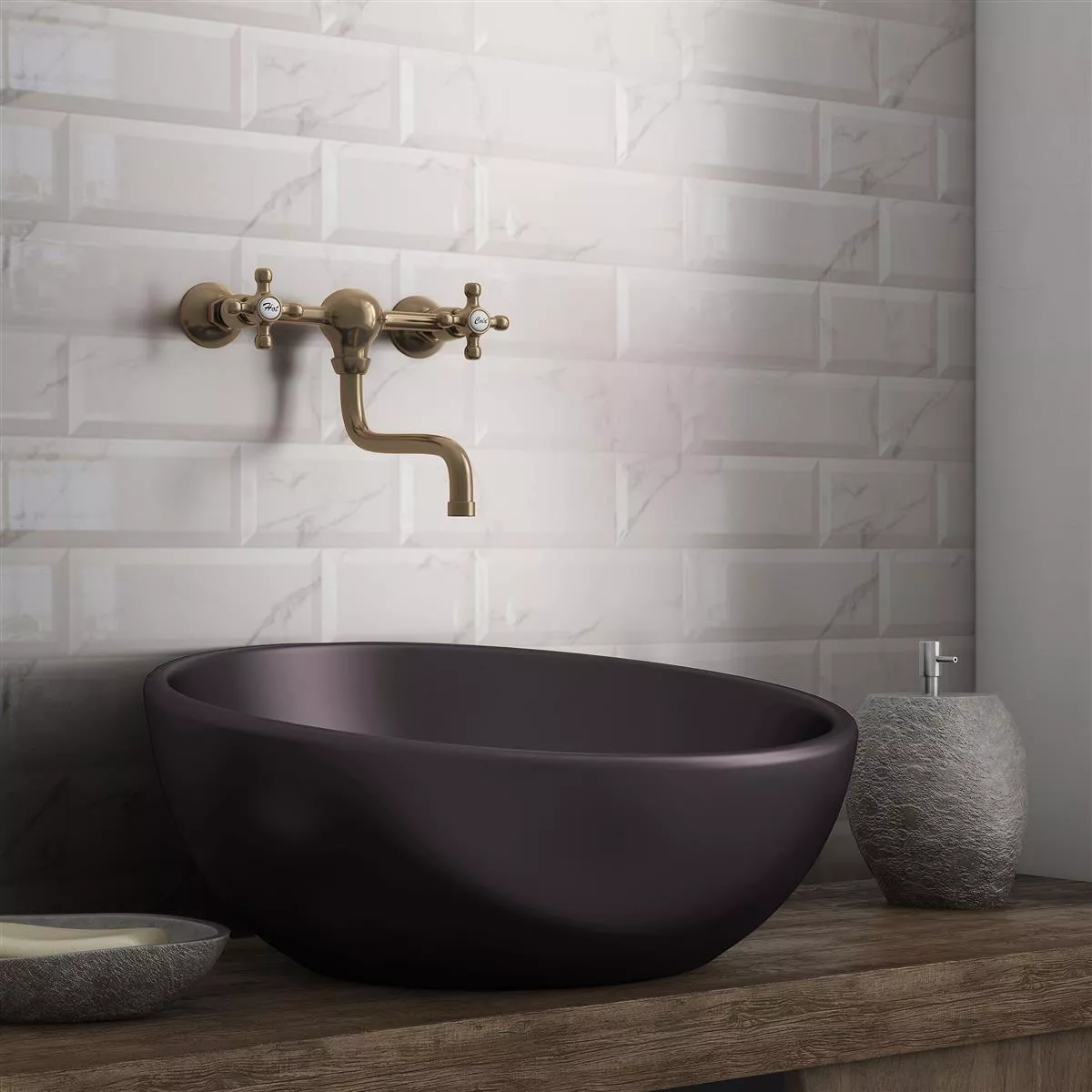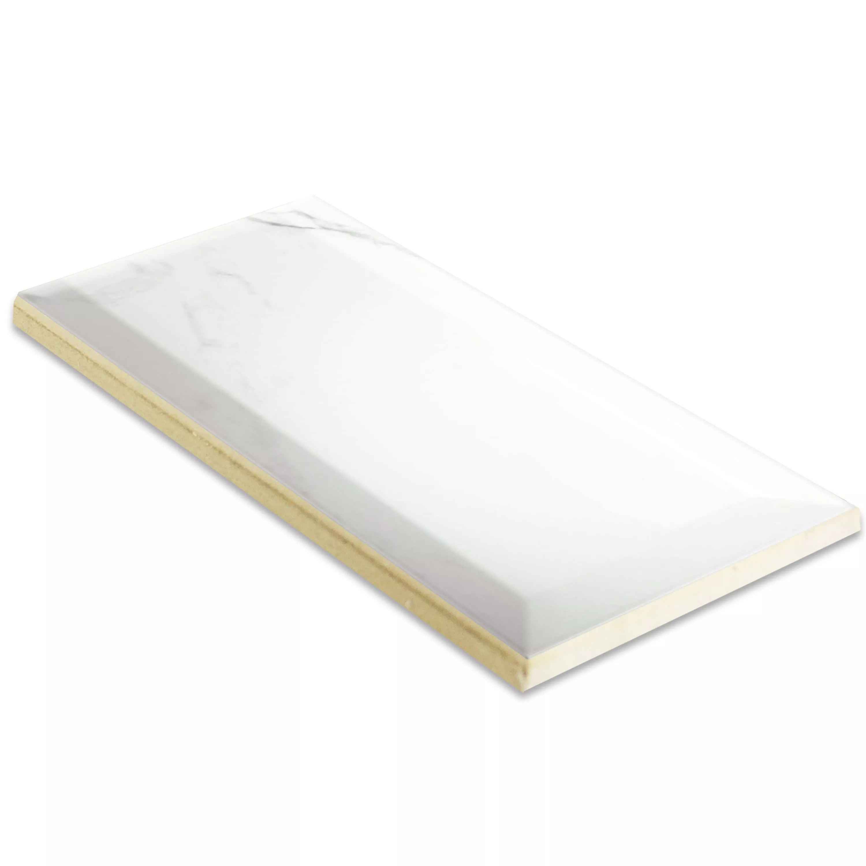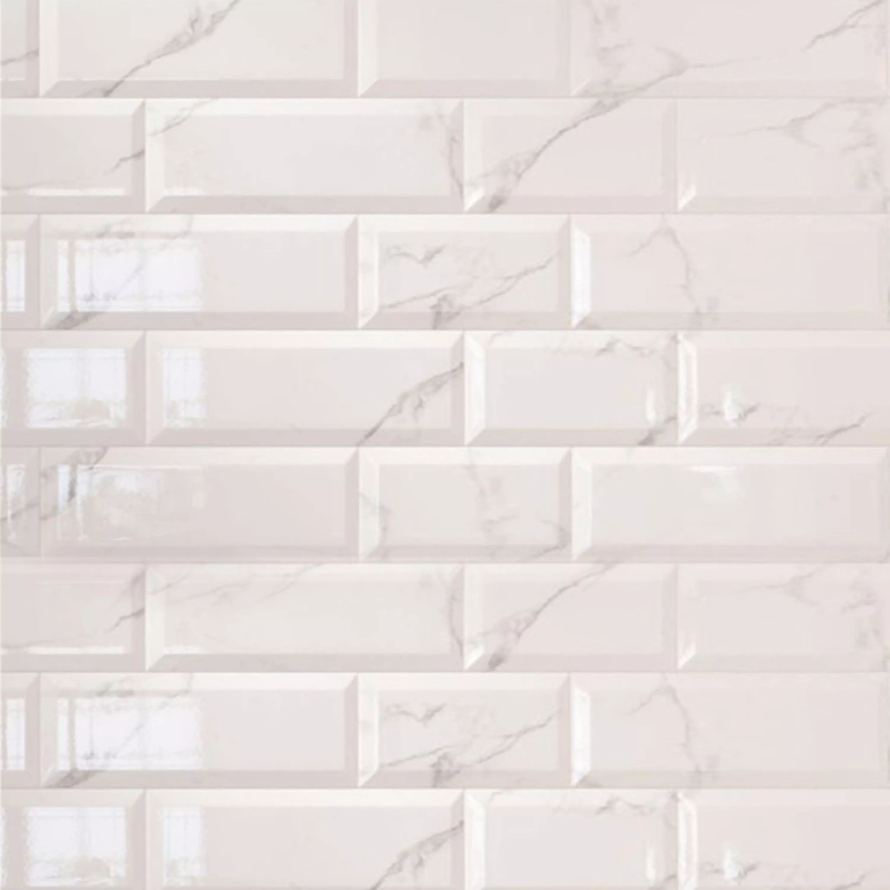 Muster von Metro Wandfliesen Girona Marmoroptik Facette Weiß Glänzend 10x20cm