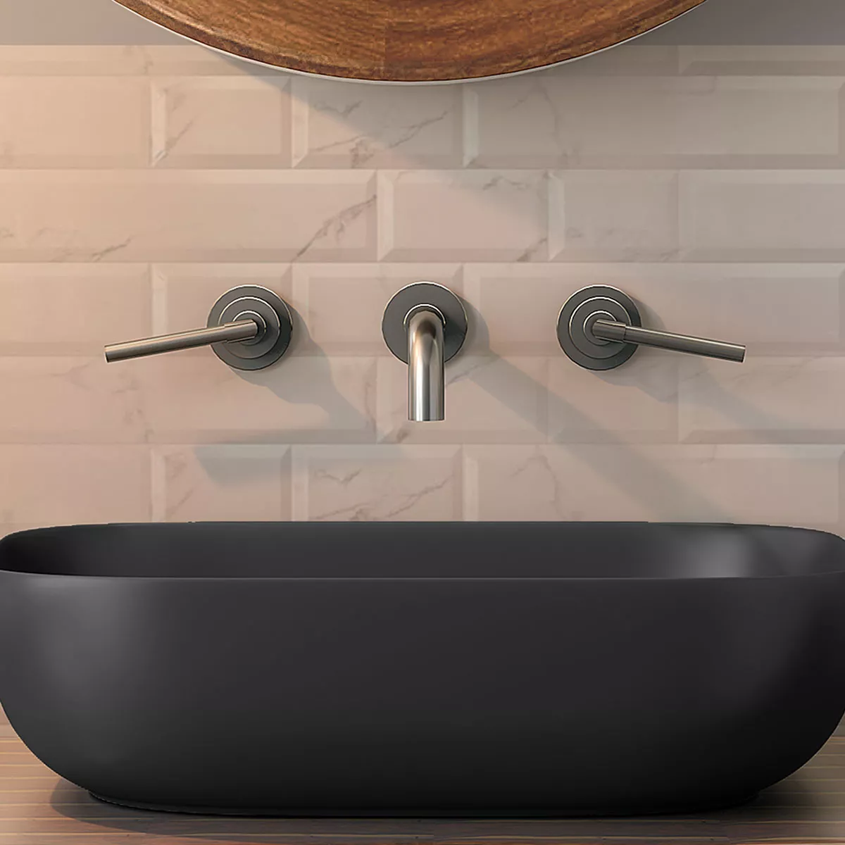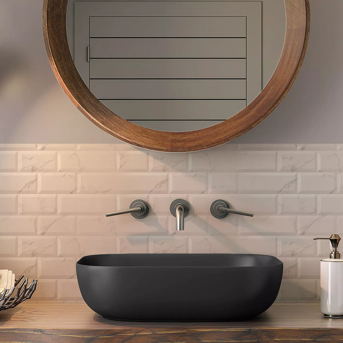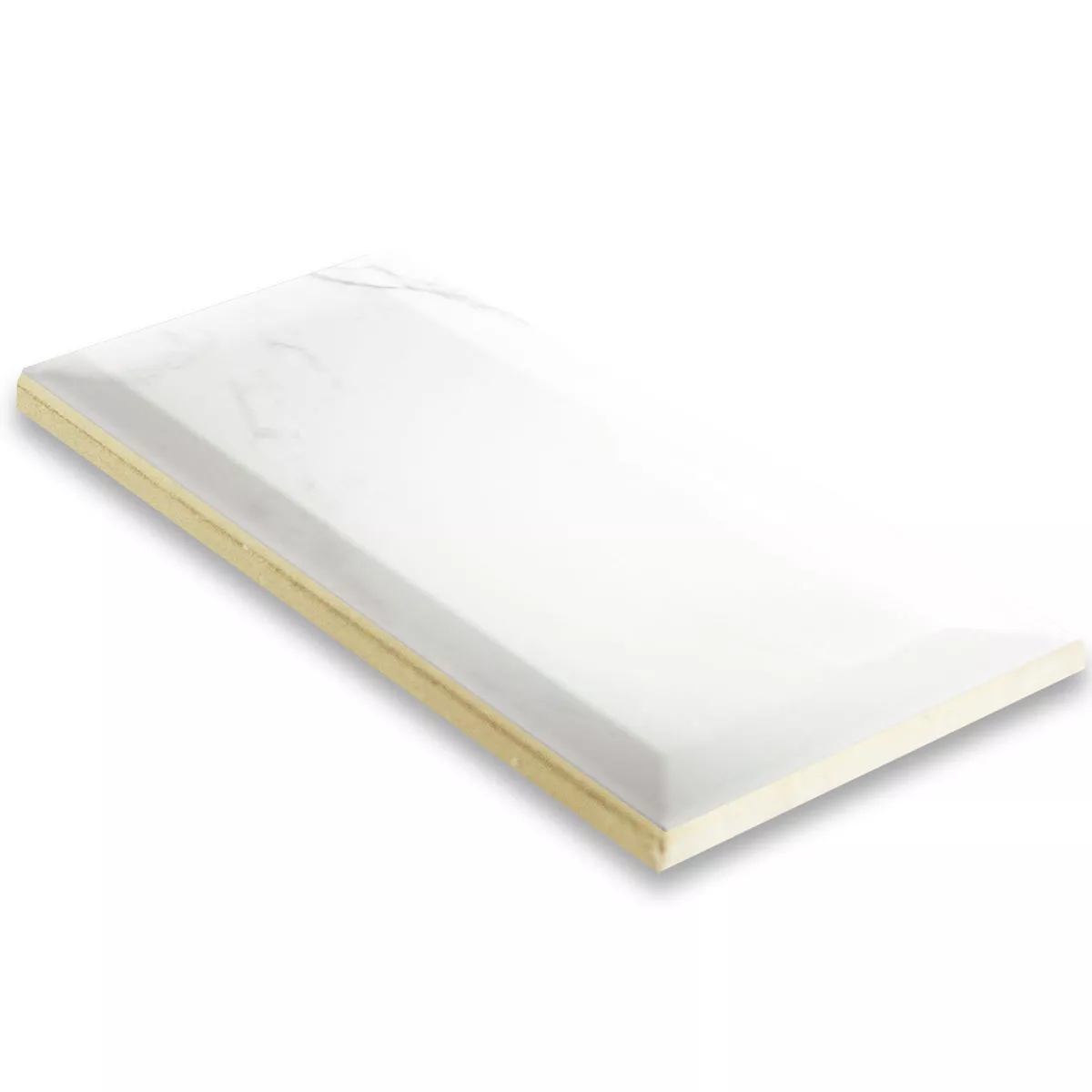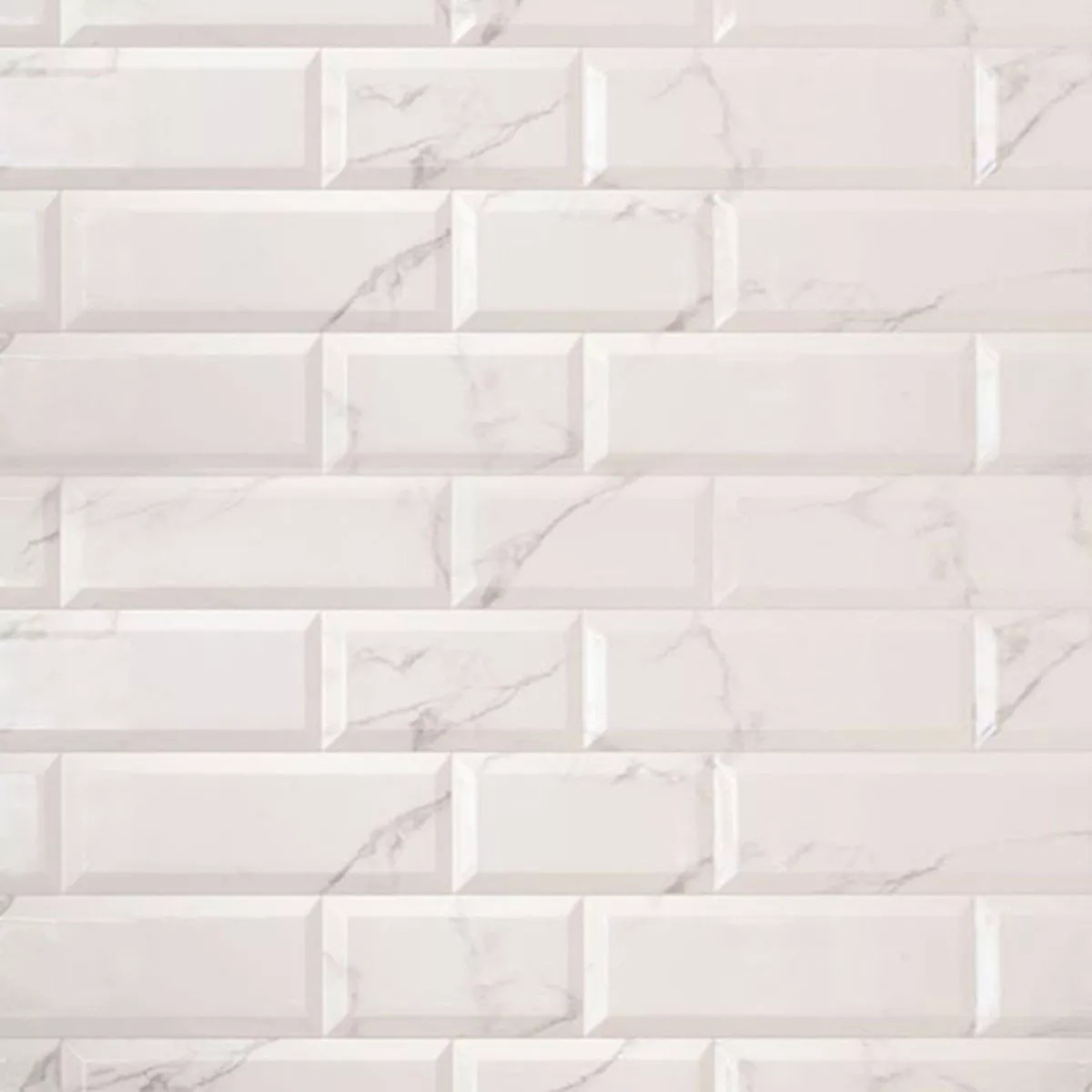 Muster von Metro Wandfliesen Girona Marmoroptik Facette Weiß Matt 10x20cm