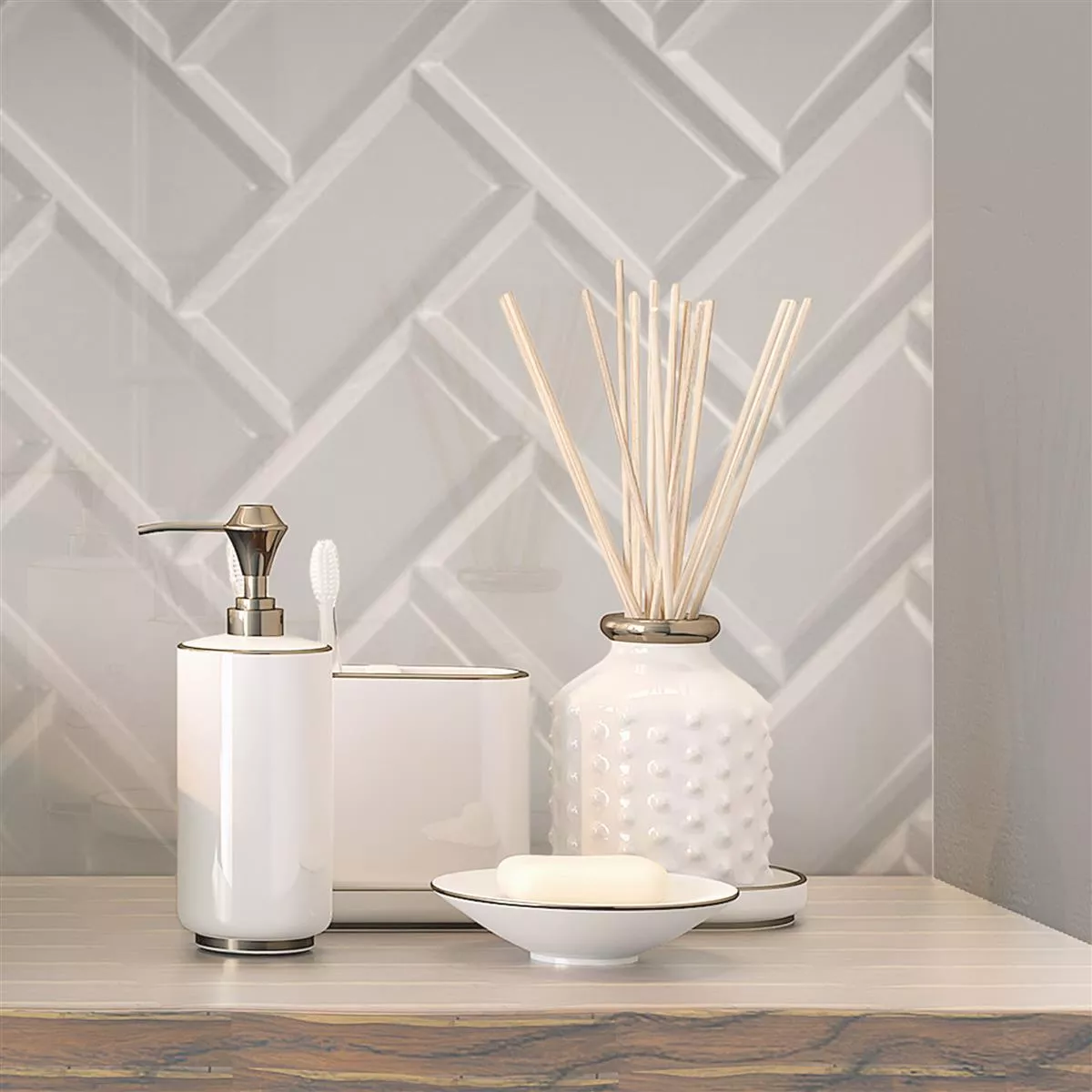 Muster von Metro Wandfliesen Heliopolis Facette Weiß 7,5x15cm