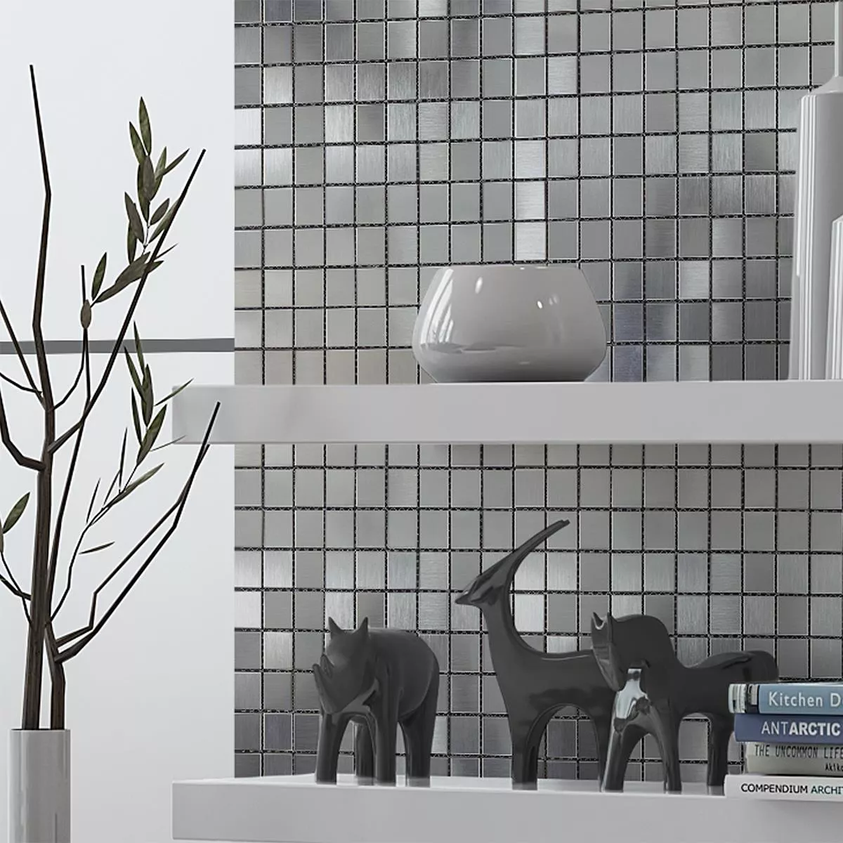 Muster von Mosaikfliesen Edelstahl Gebürstet Silvernova Quadrat 23