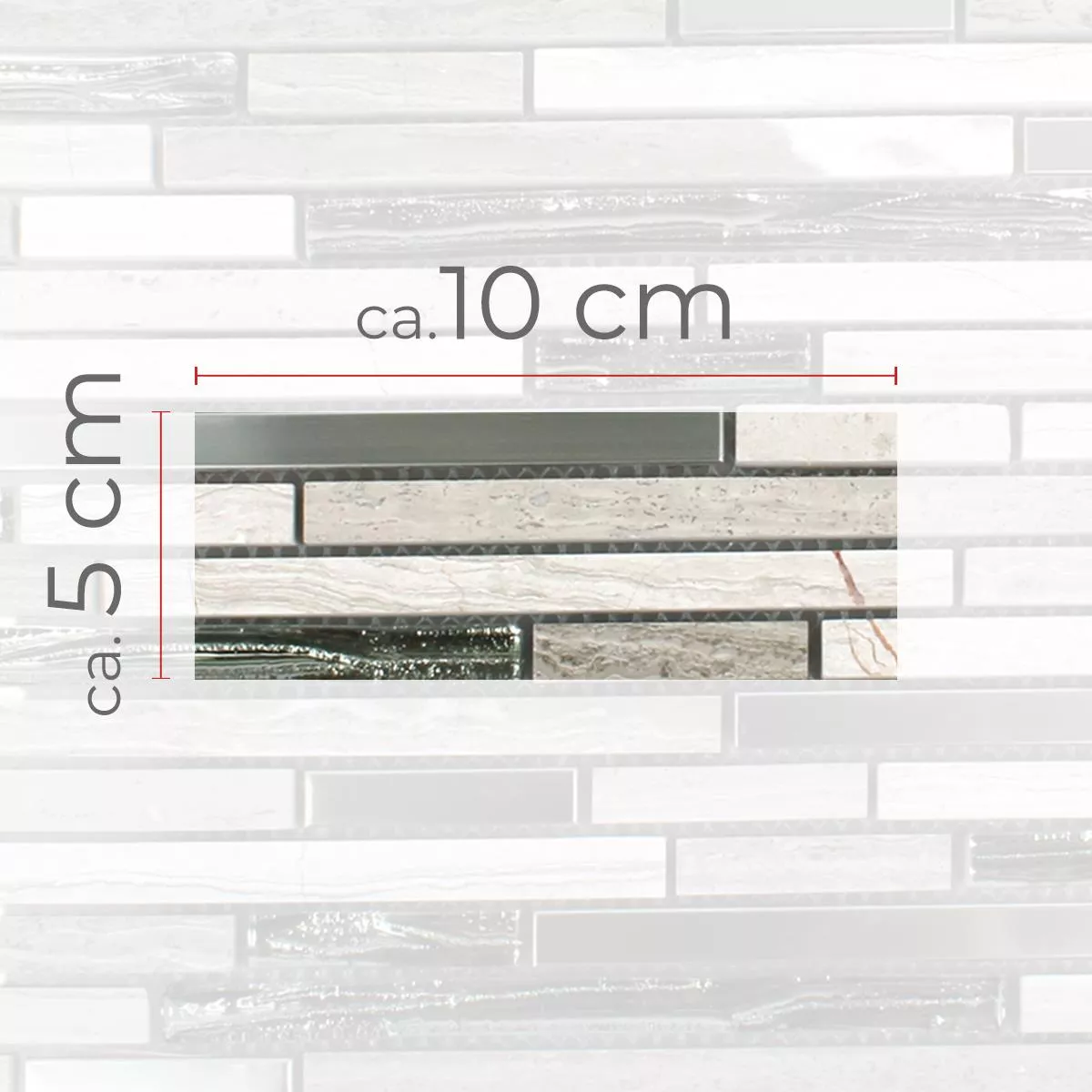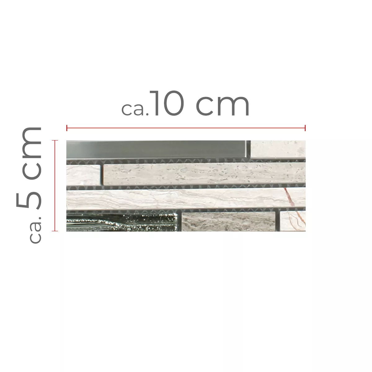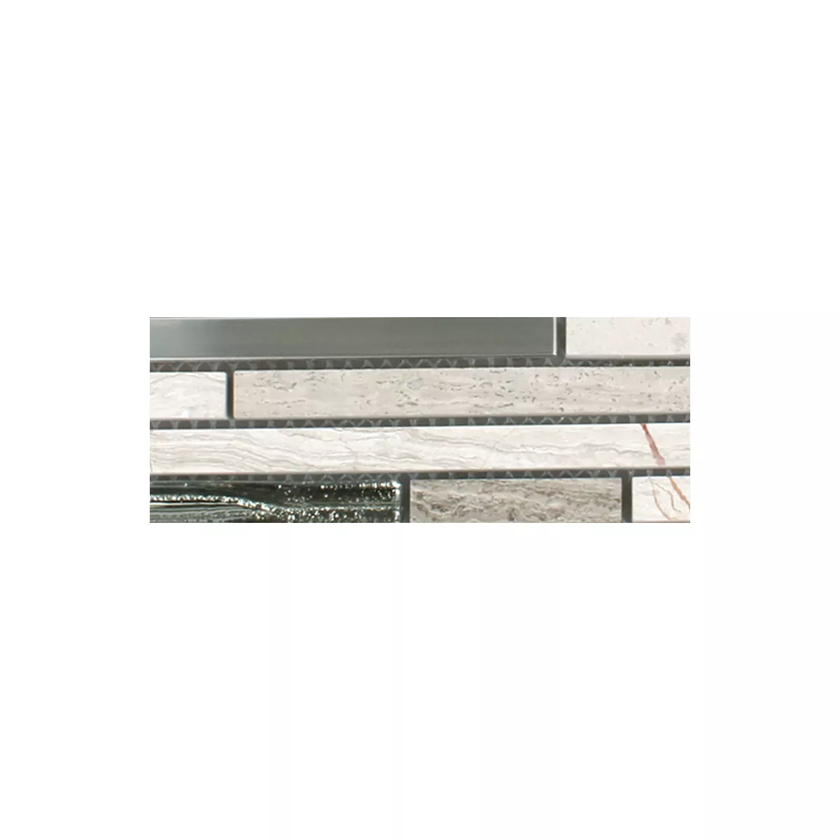 Muster von Mosaikfliesen Elektra Glas Stein Stahl Mix Grau