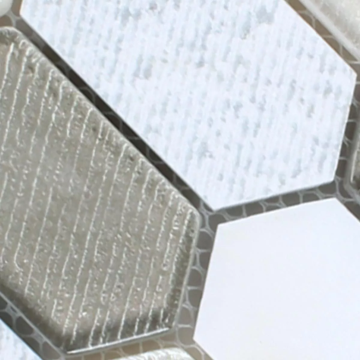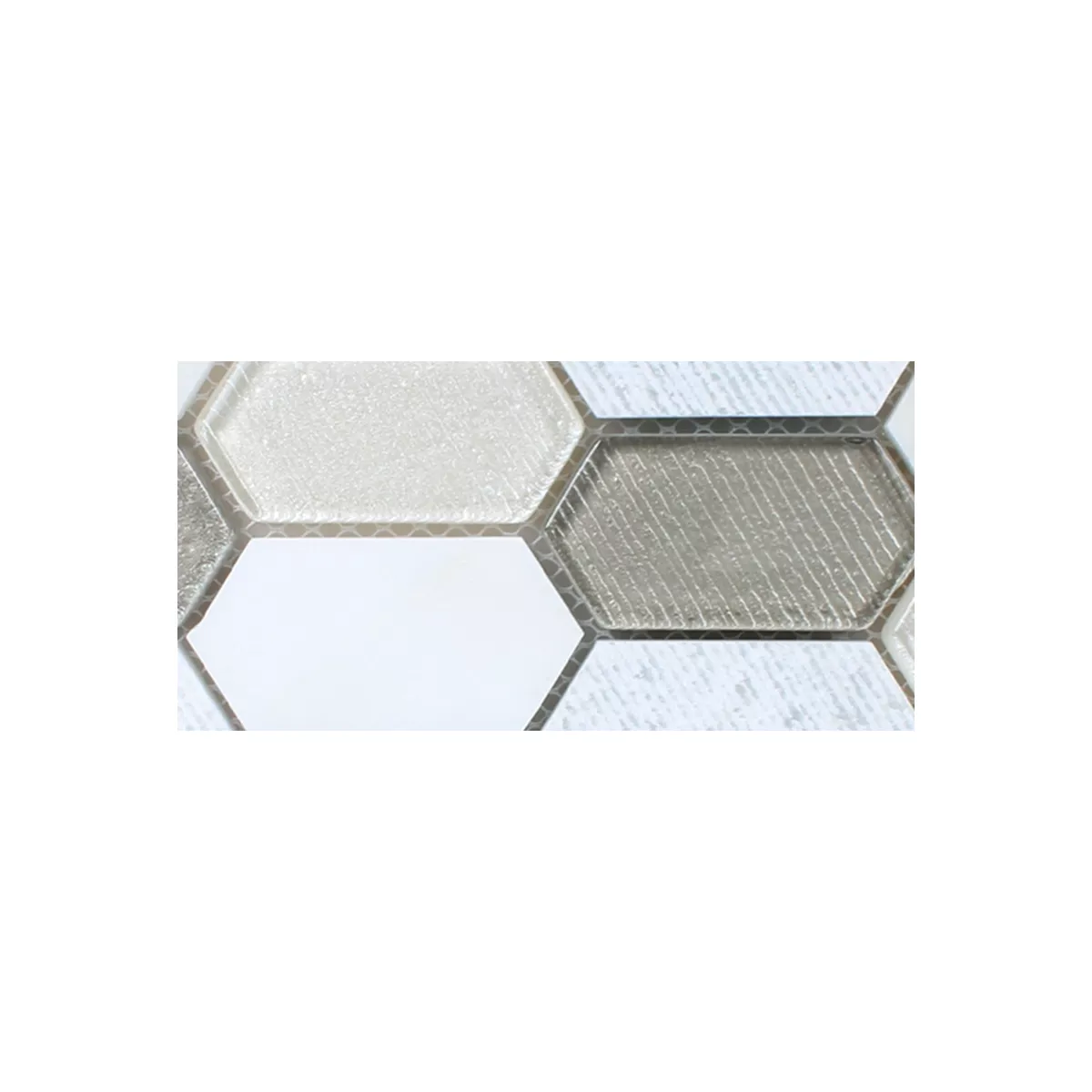 Muster von Mosaikfliesen Februata Hexagon Weiss Beige Grau