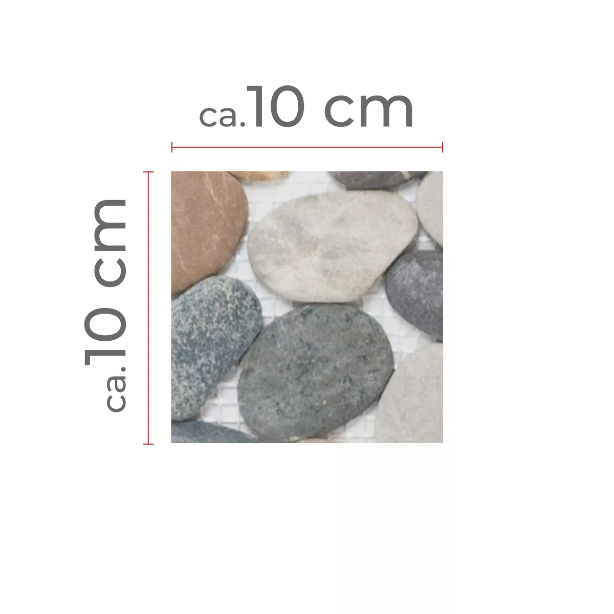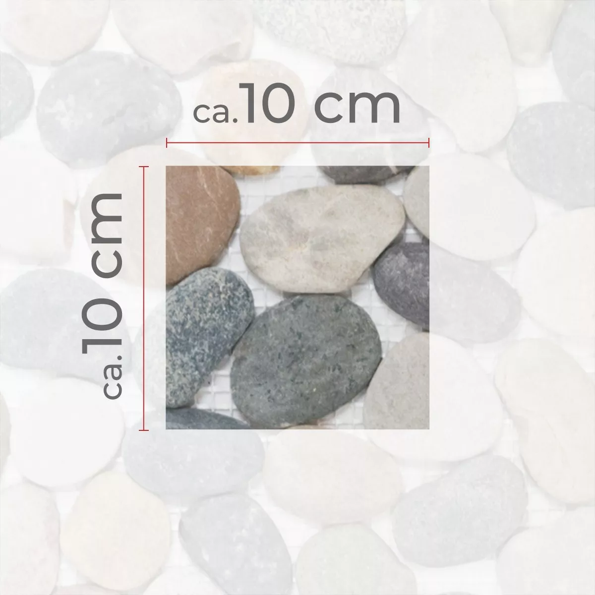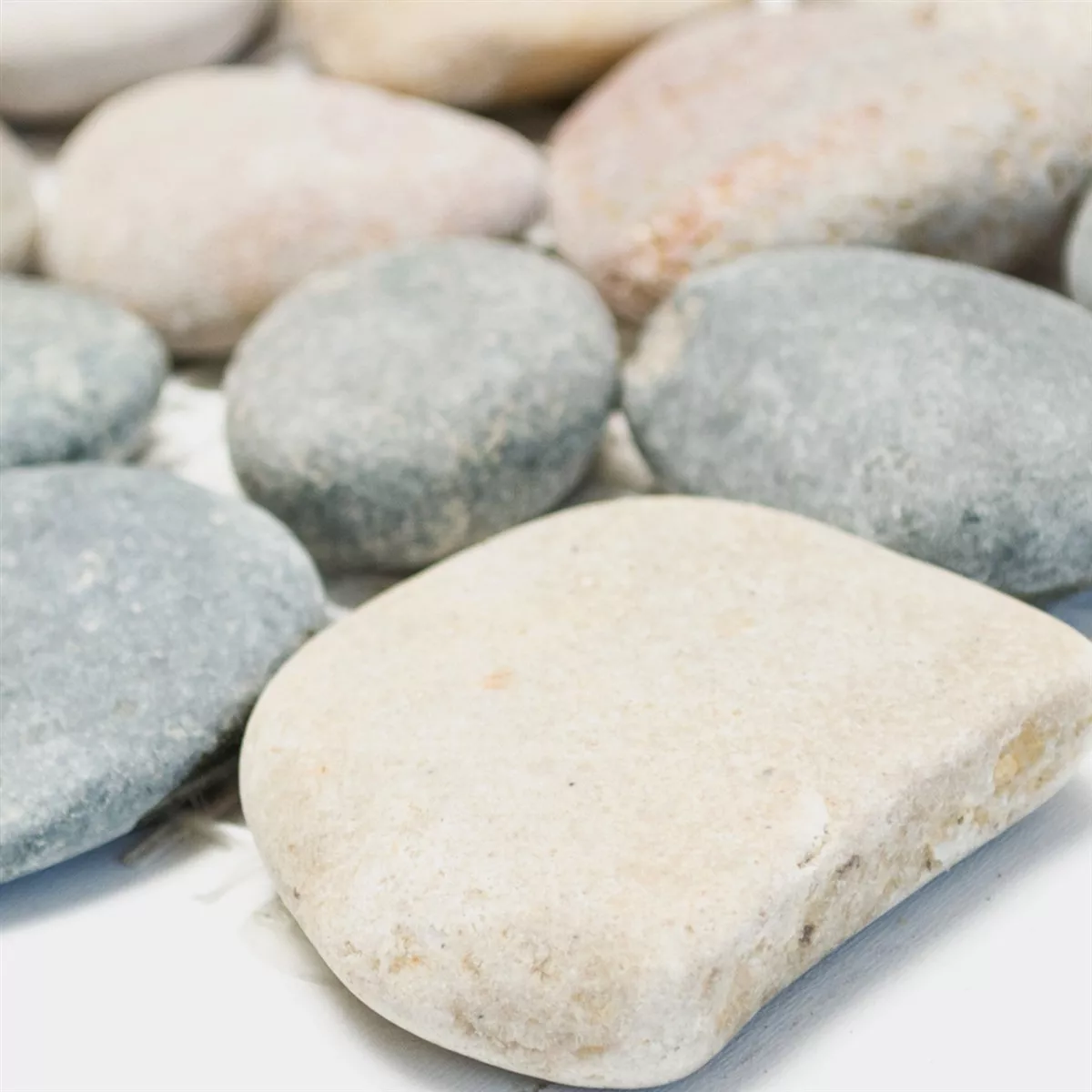 Muster von Mosaikfliesen Flusskiesel Naturstein Doha Beige Grau Schwarz