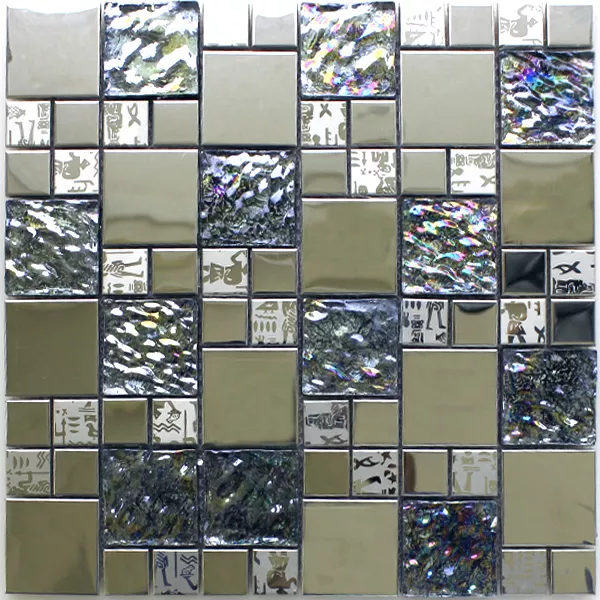 Muster von Mosaikfliesen Glas Edelstahl Metall Agypt Silber