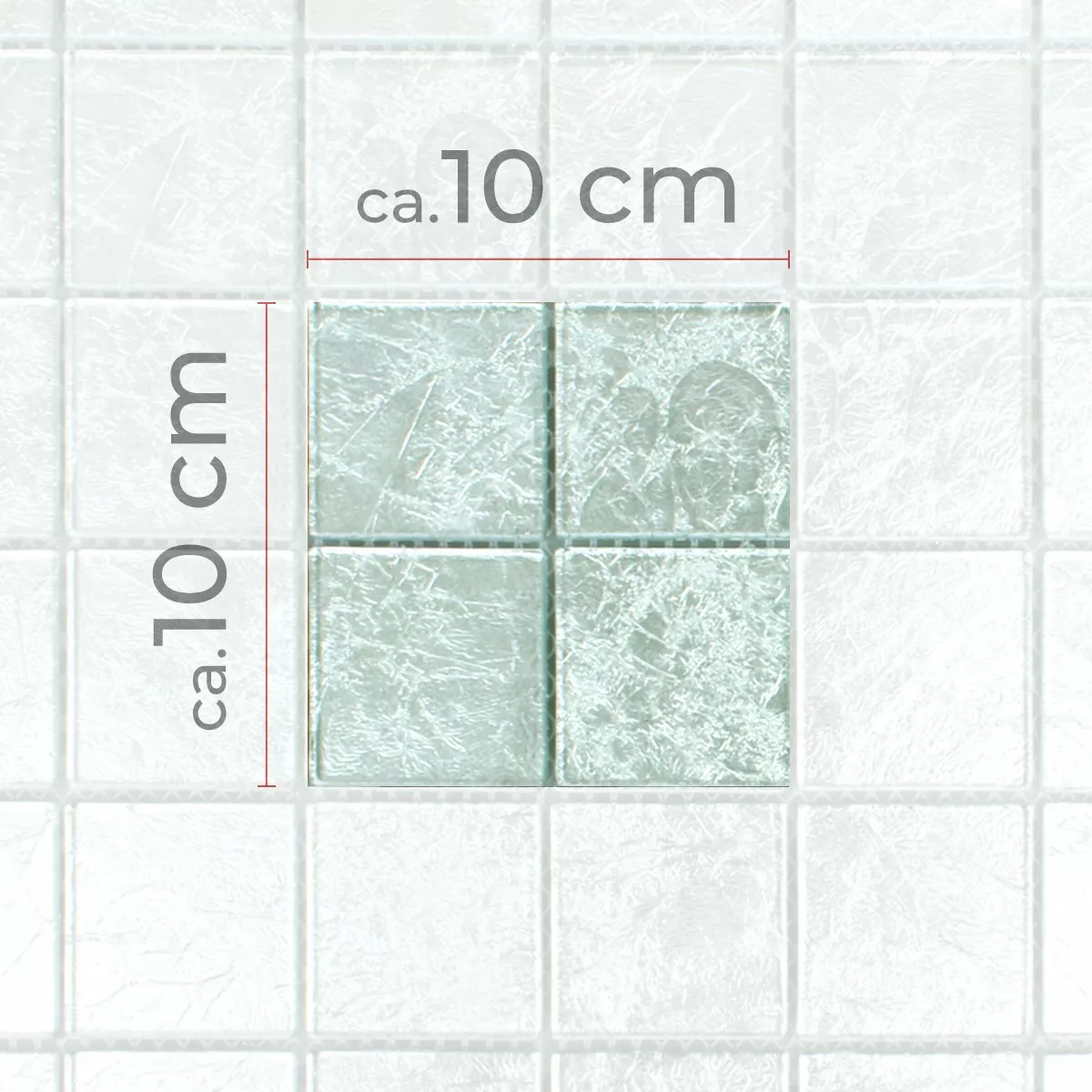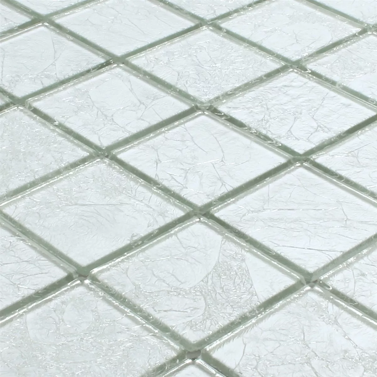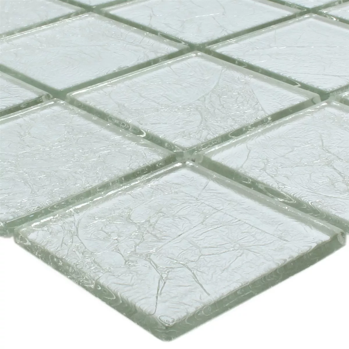 Muster von Mosaikfliesen Glas Lucca Silber 48x48x4mm