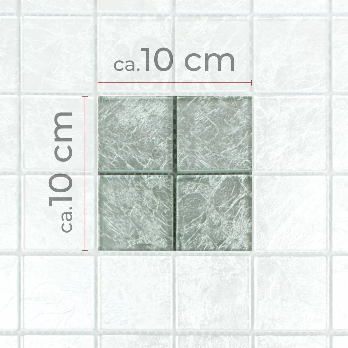 Muster von Mosaikfliesen Glas Lucca Silber 48x48x8mm
