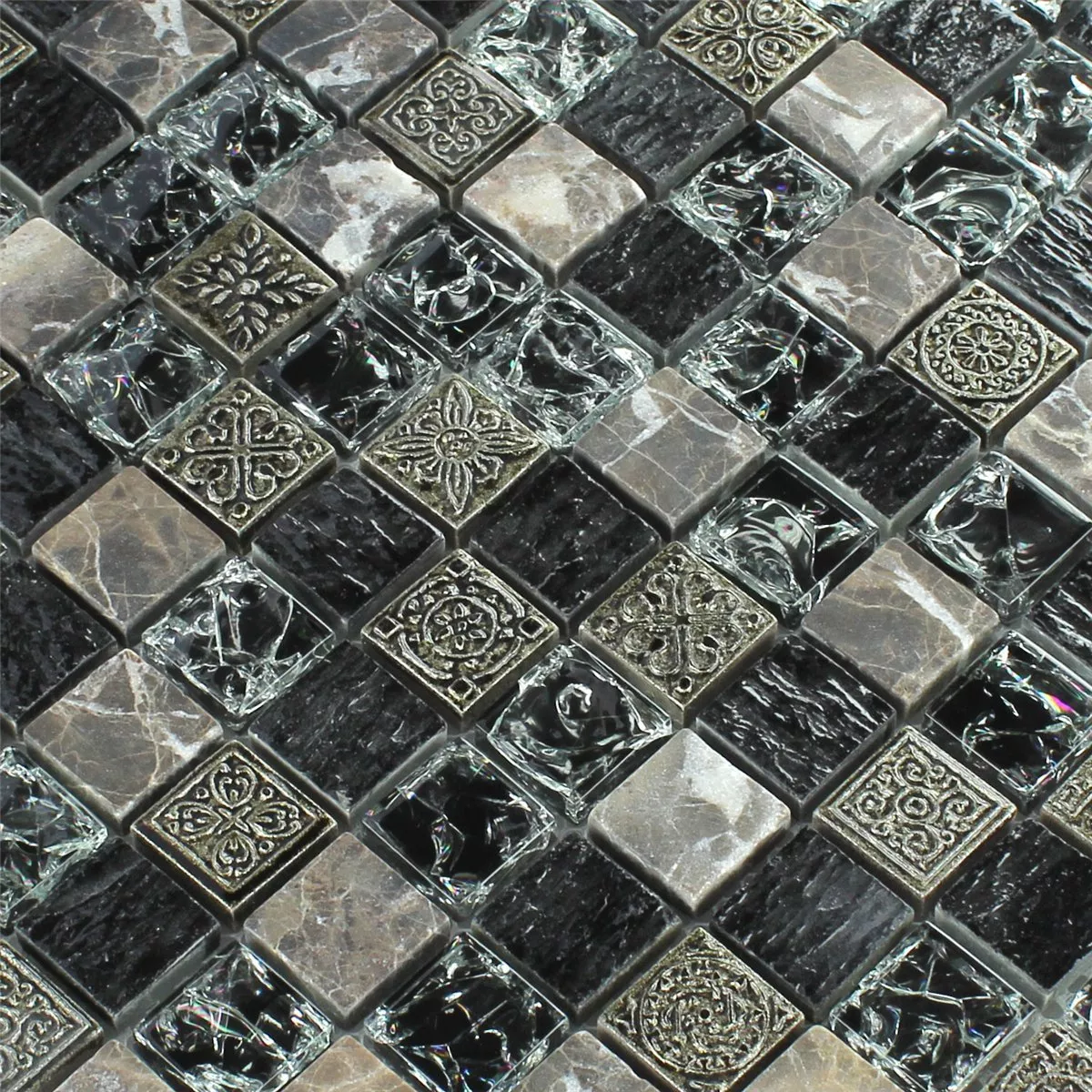 Muster von Mosaikfliesen Glas Marmor Effekt Schwarz