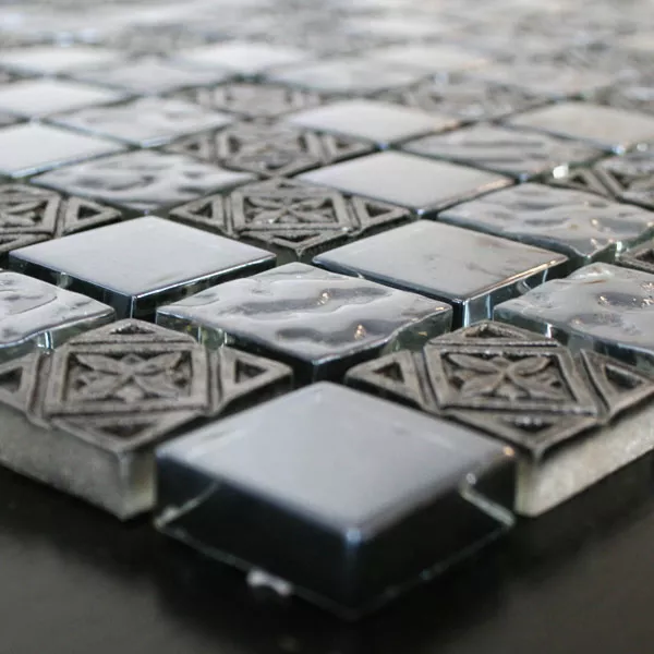 Muster von Mosaikfliesen Glas Marmor Effekt Silver Sail