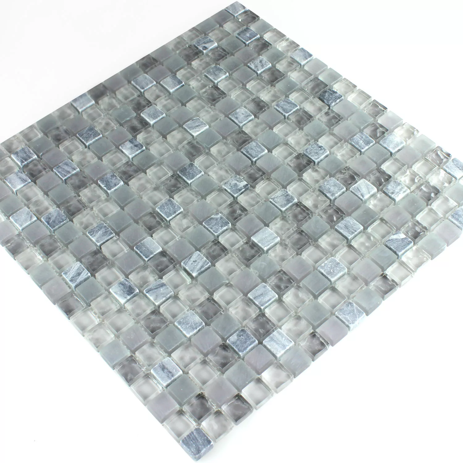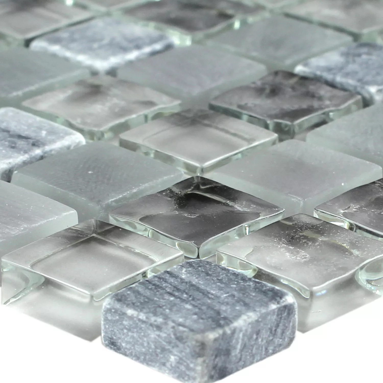Muster von Mosaikfliesen Glas Marmor Festus Hellgrau Schwarz