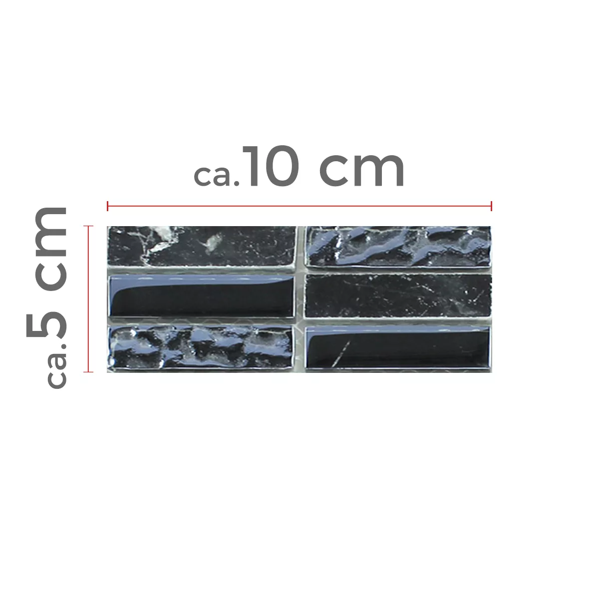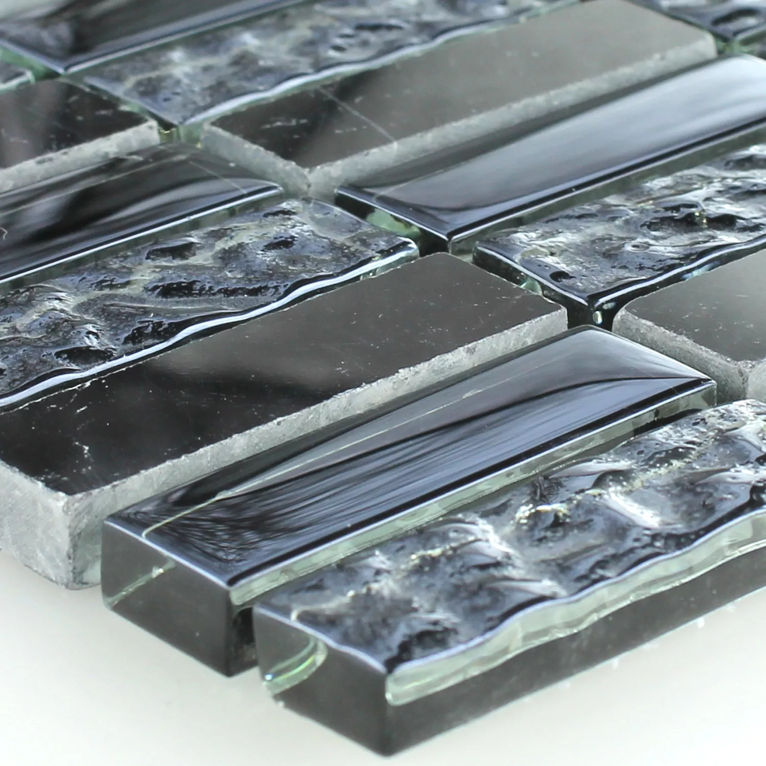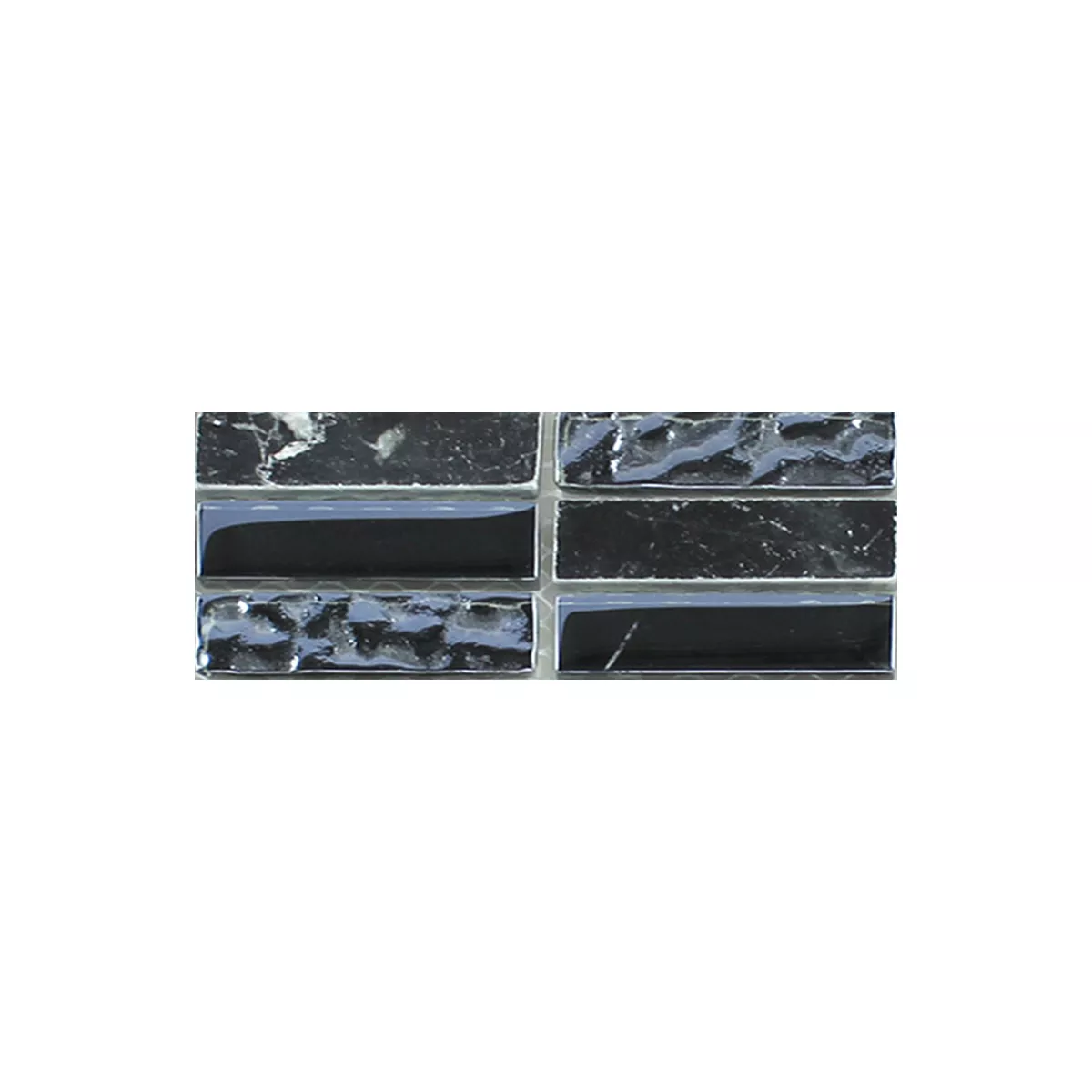 Muster von Mosaikfliesen Glas Marmor Naturstein Helsinki Schwarz Geriffelt Stäbchen