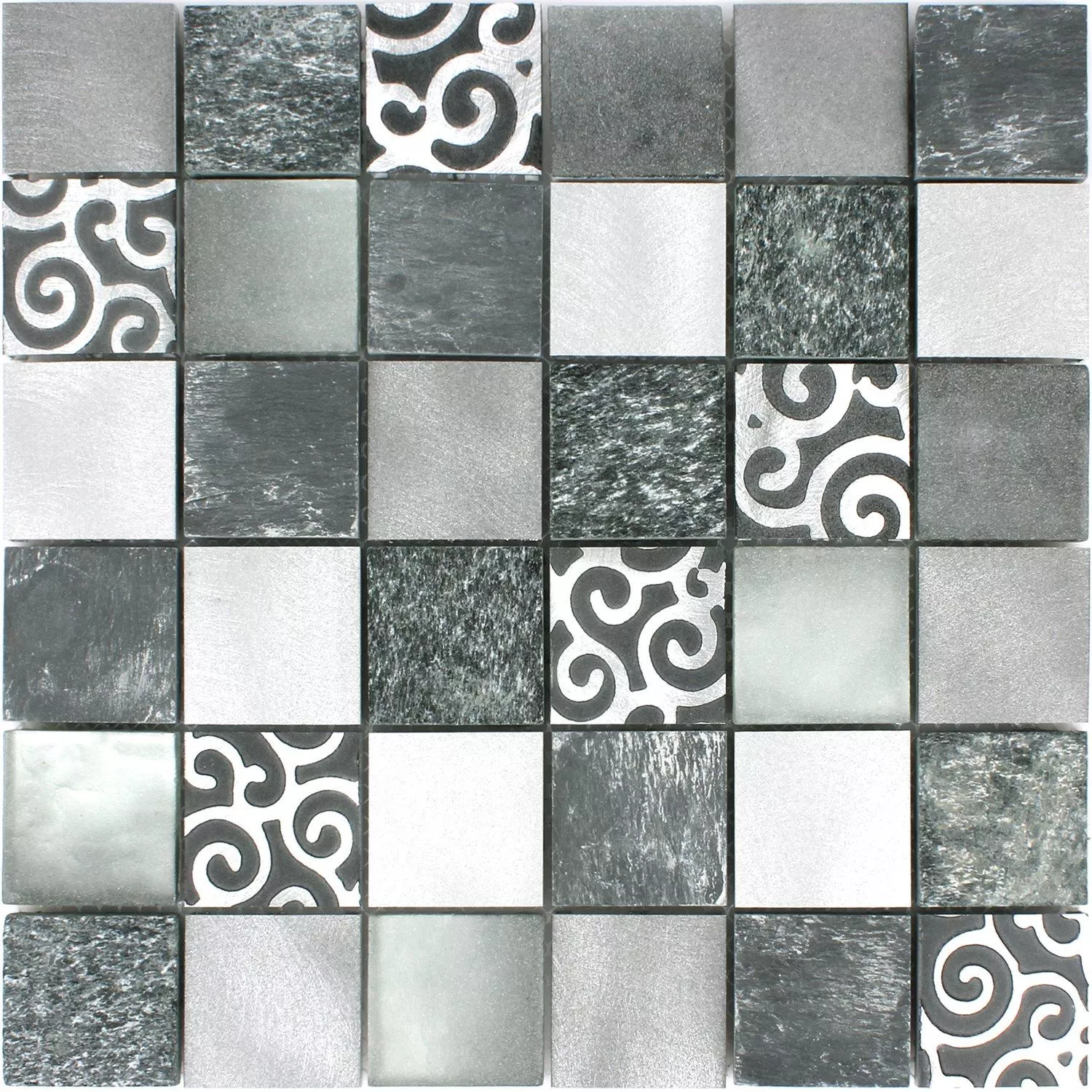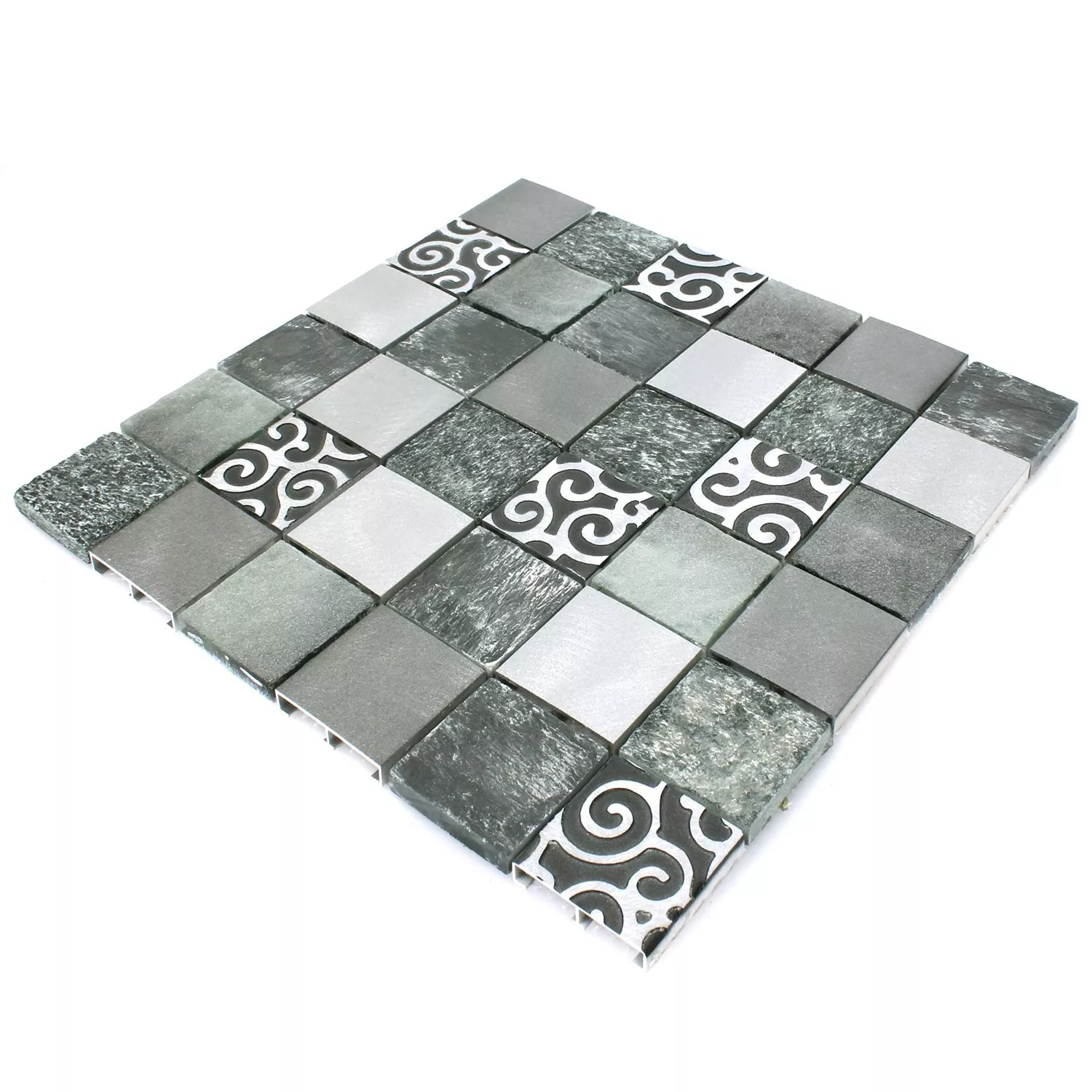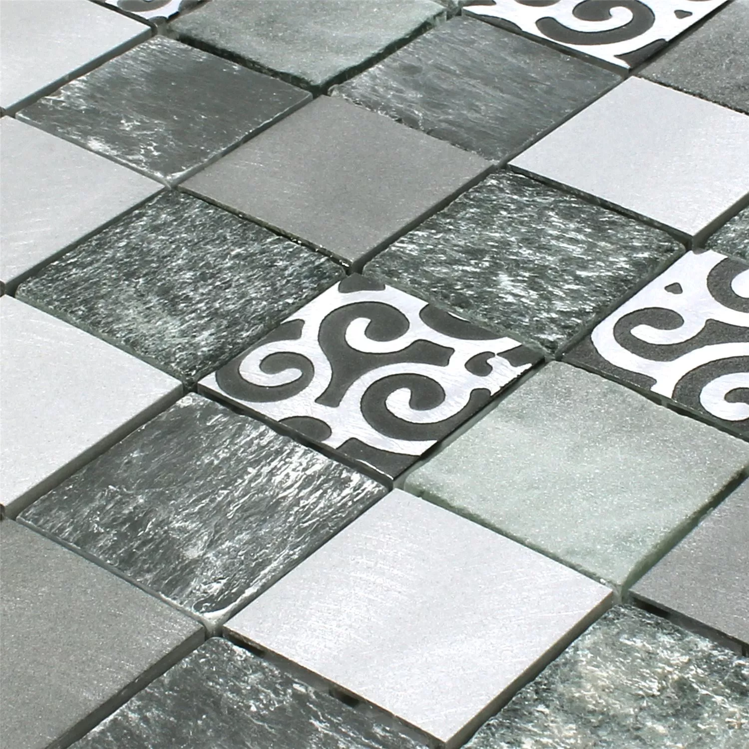 Muster von Mosaikfliesen Glas Naturstein Aluminium Valdivia Grau