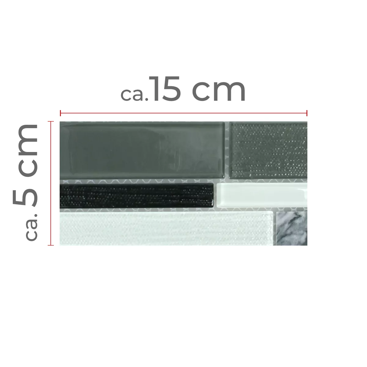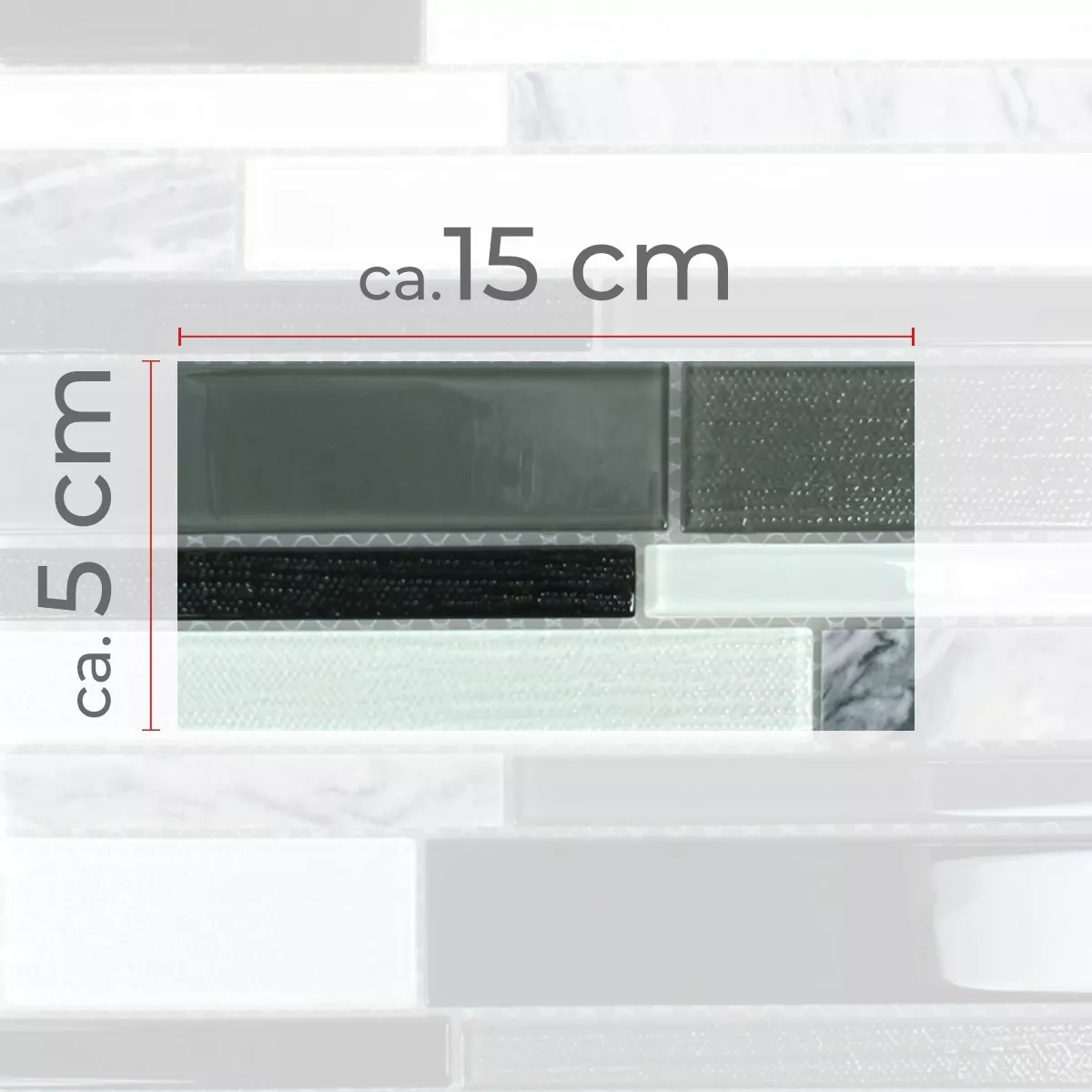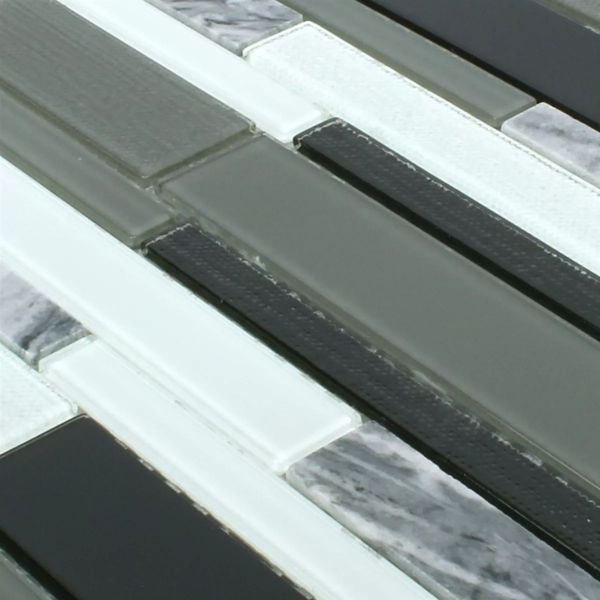 Muster von Mosaikfliesen Glas Naturstein Kalamos Schwarz Weiss