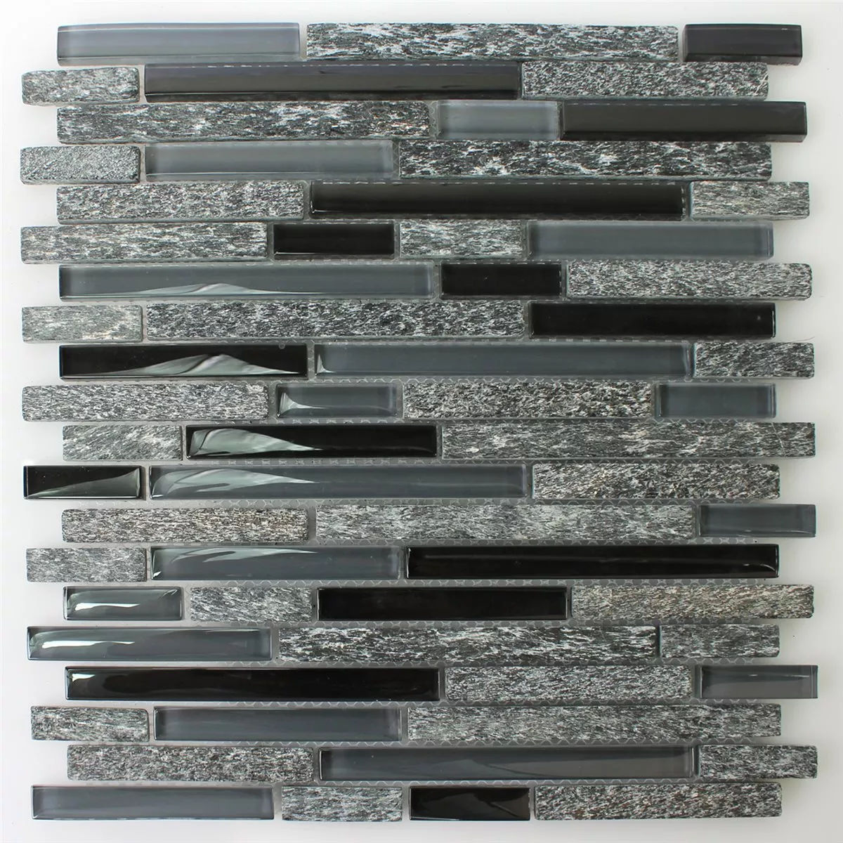 Muster von Mosaikfliesen Glas Naturstein Schwarz Grau