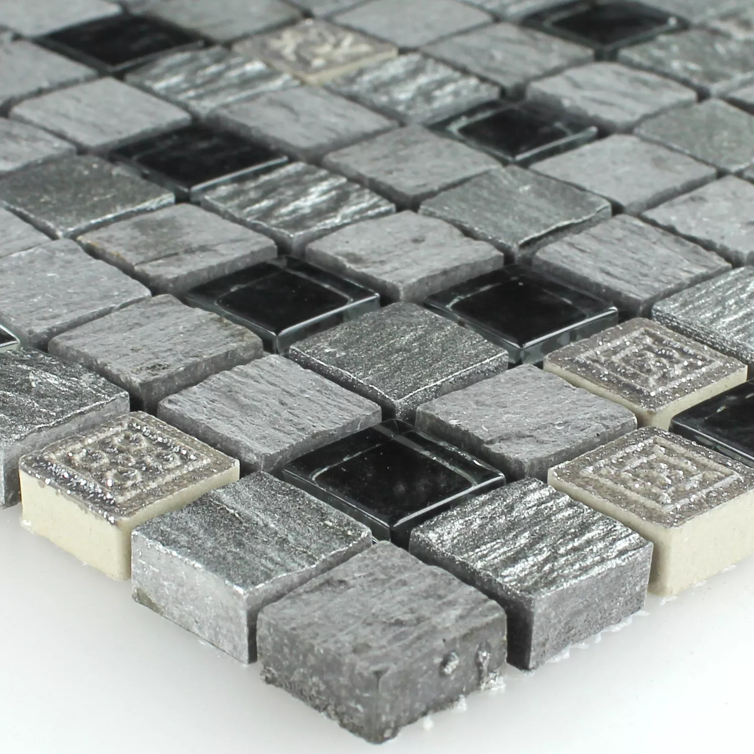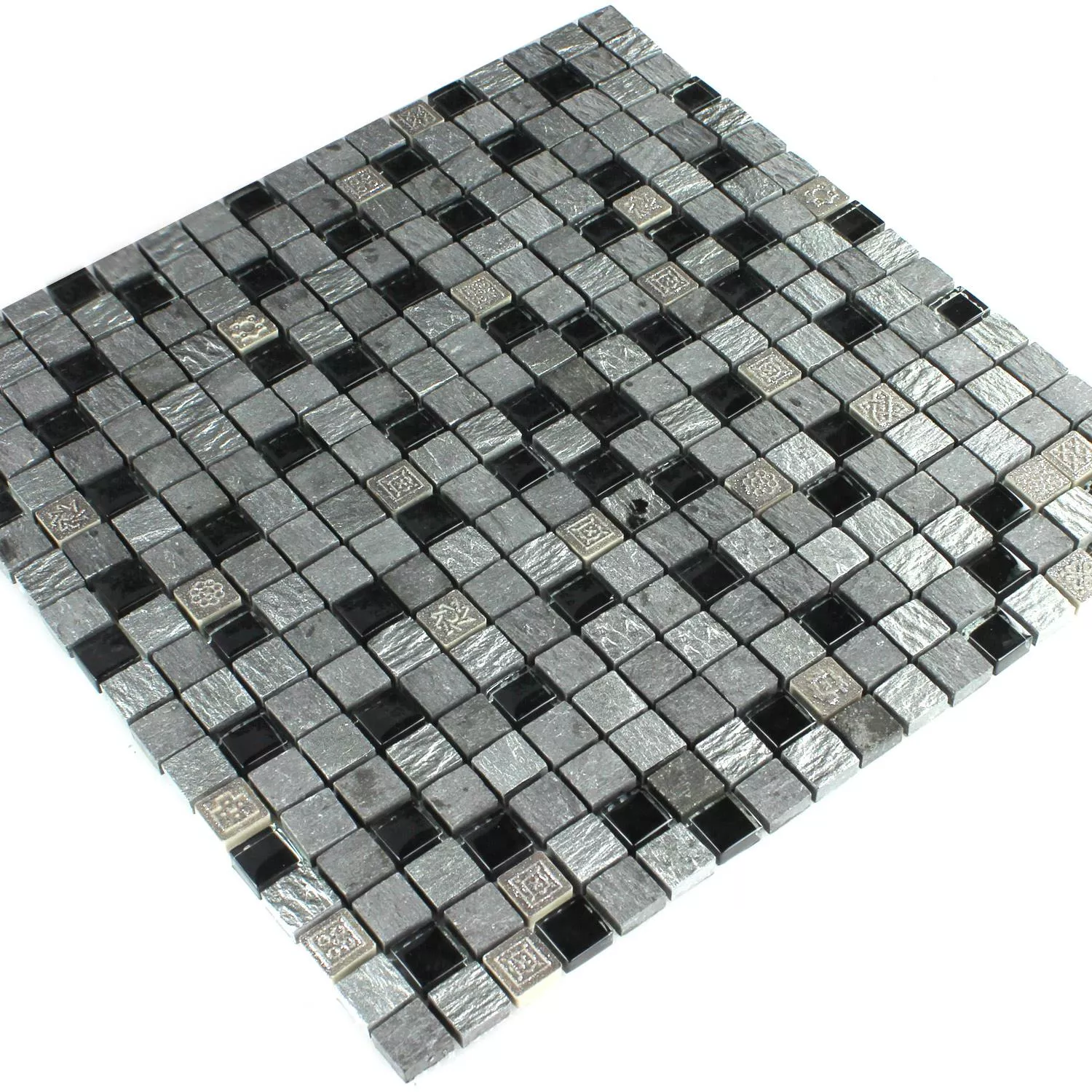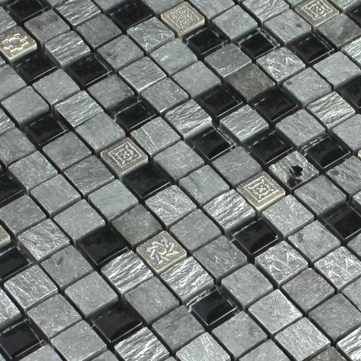 Muster von Mosaikfliesen Glas Naturstein Silber Schwarz