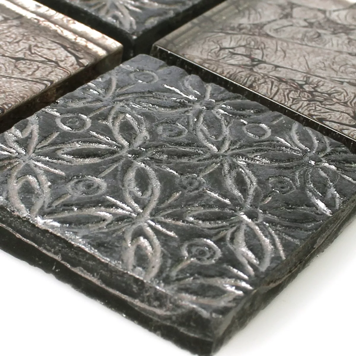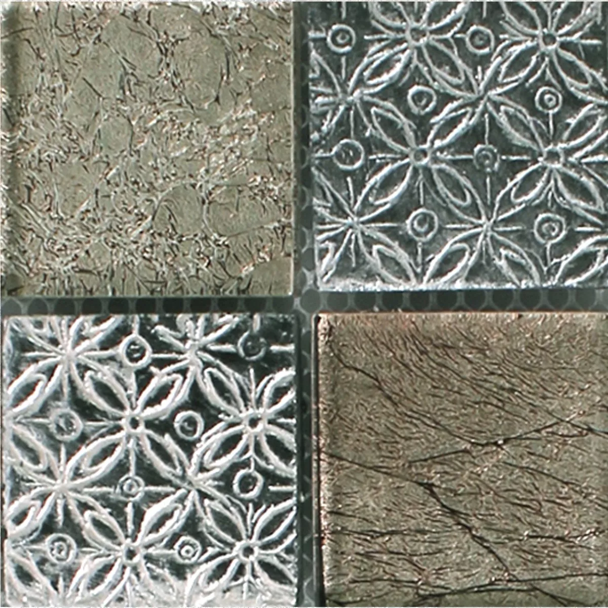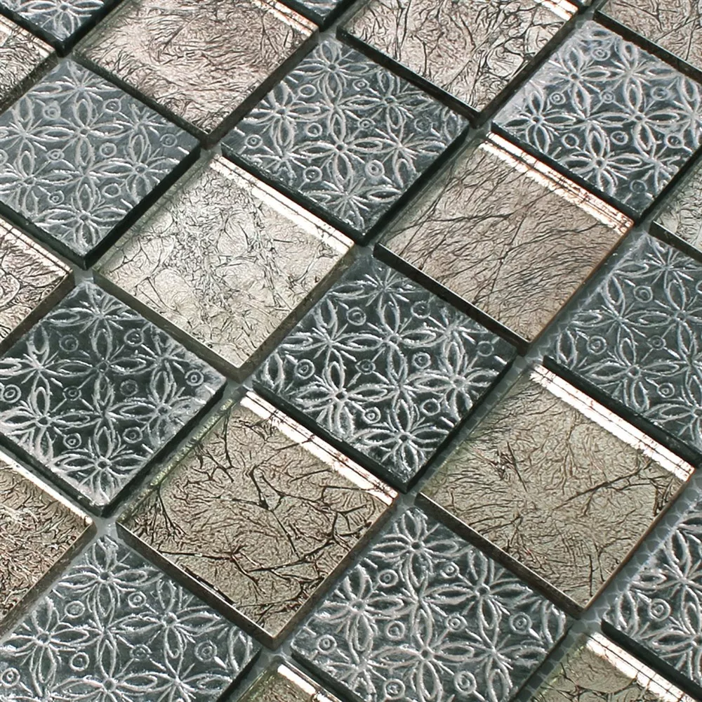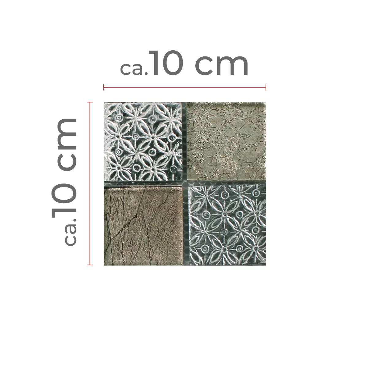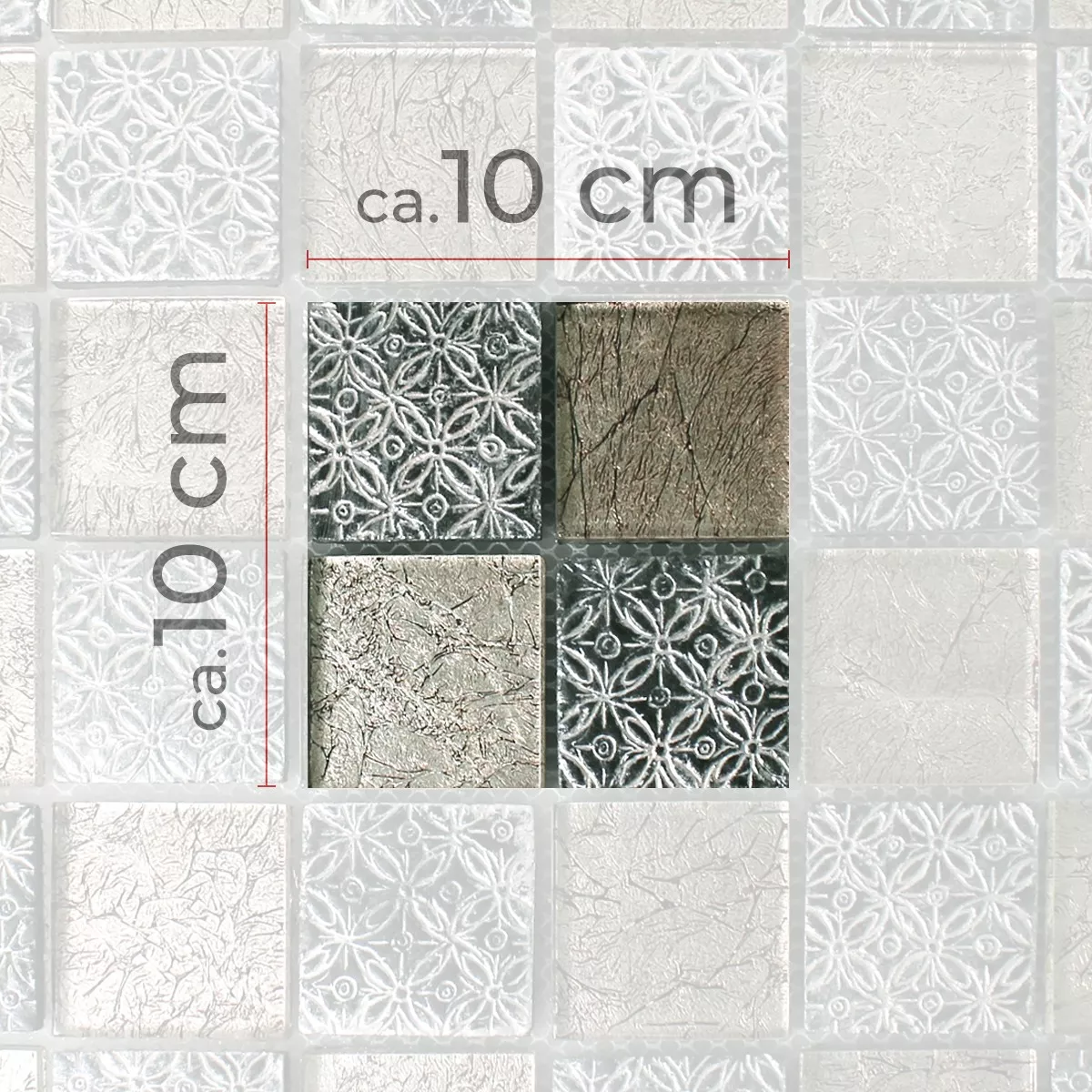 Muster von Mosaikfliesen Glas Resin Naturstein Friesia Silber