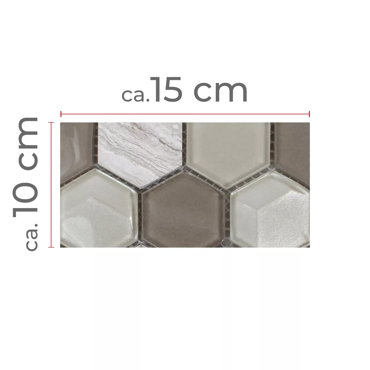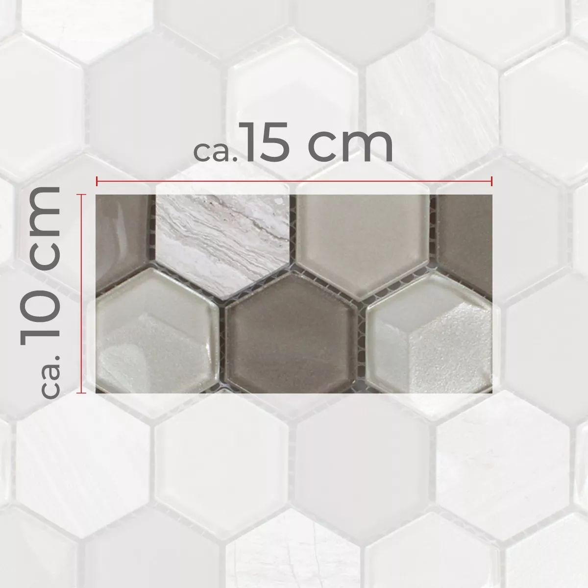 Muster von Mosaikfliesen Hexagon Glas Naturstein Iznik Hellgrau 3D