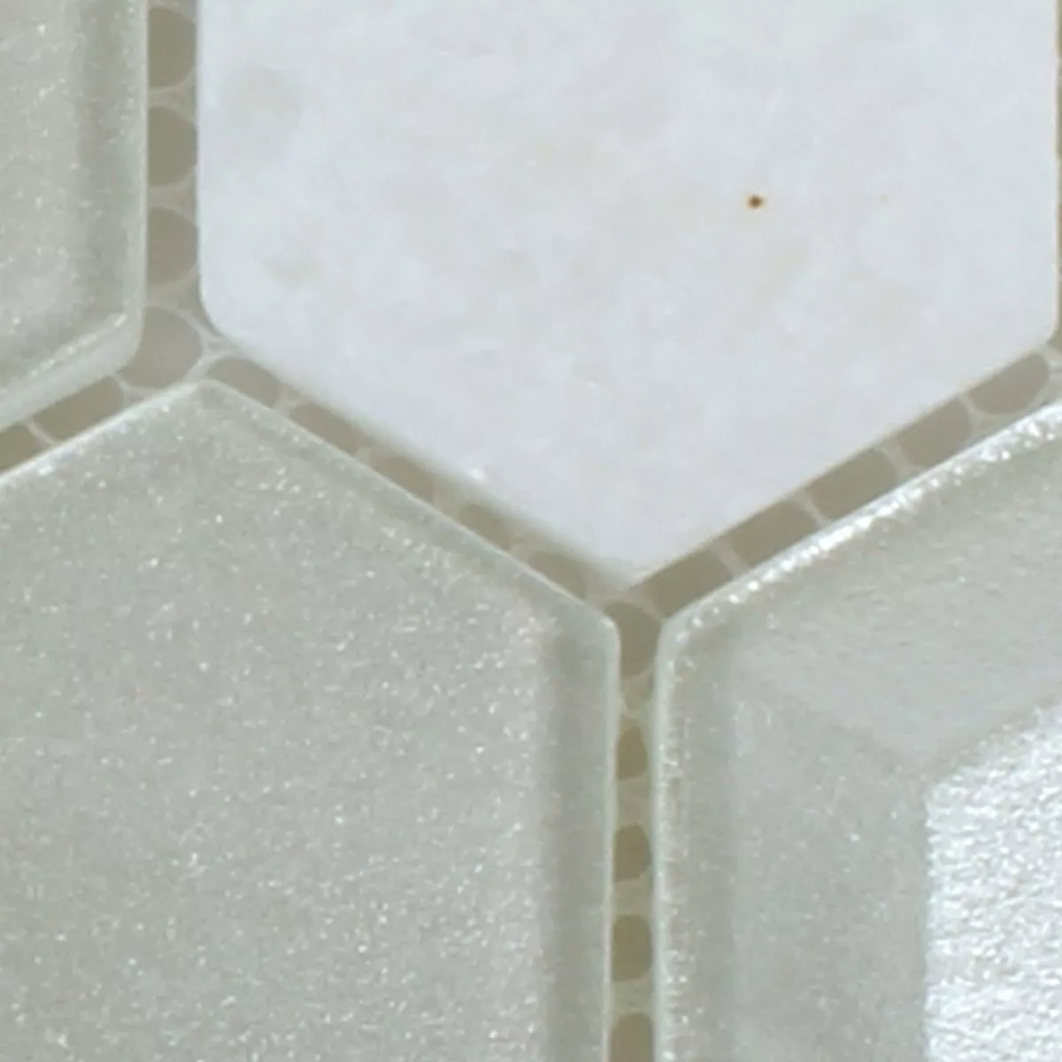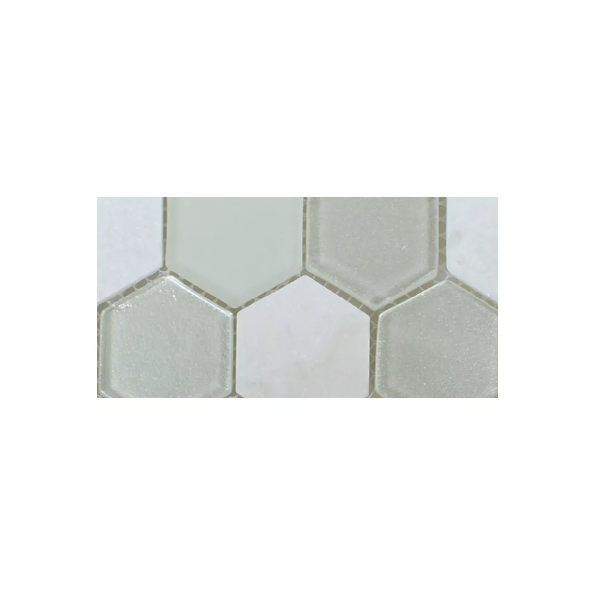 Muster von Mosaikfliesen Hexagon Glas Naturstein Iznik Weiss 3D