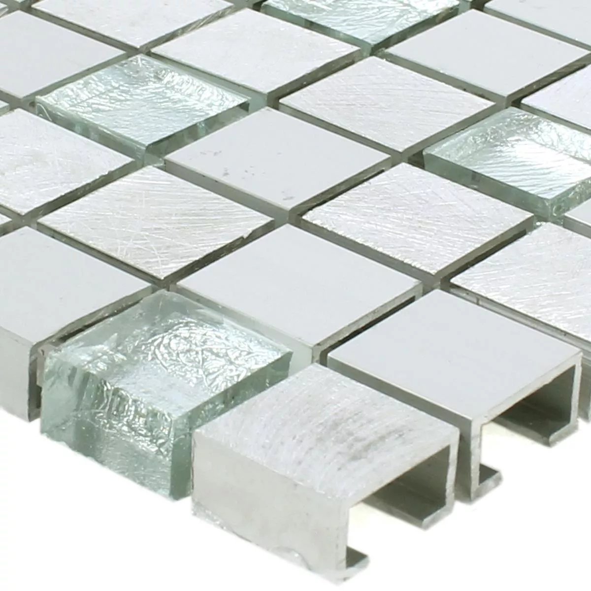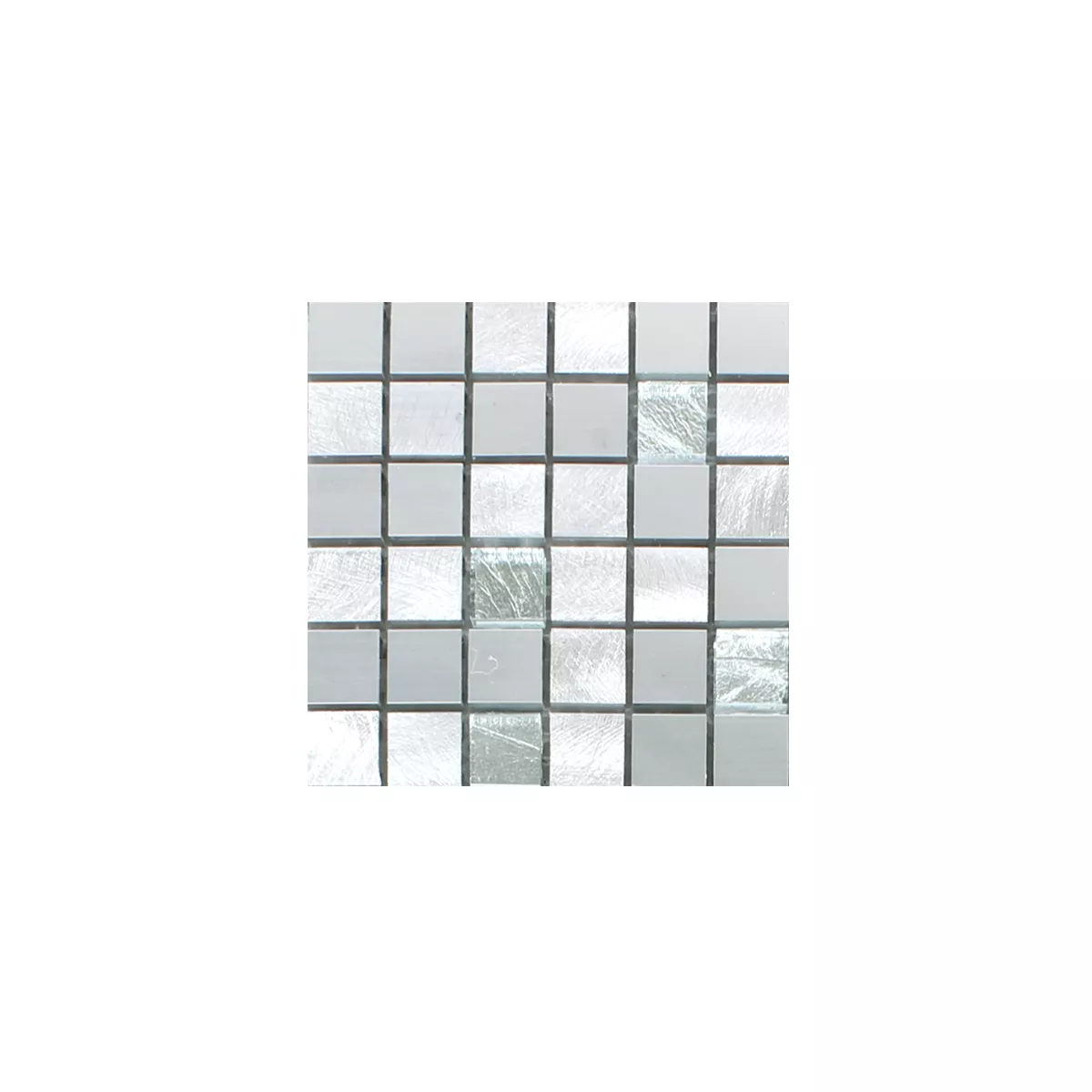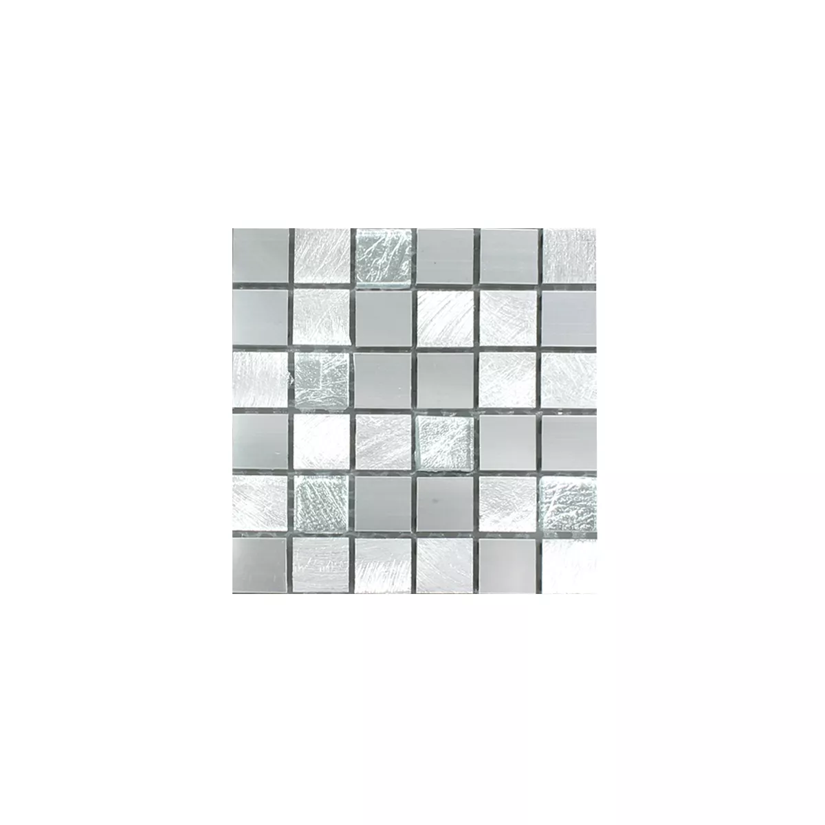 Muster von Mosaikfliesen Lissabon Aluminium Glas Mix Silber