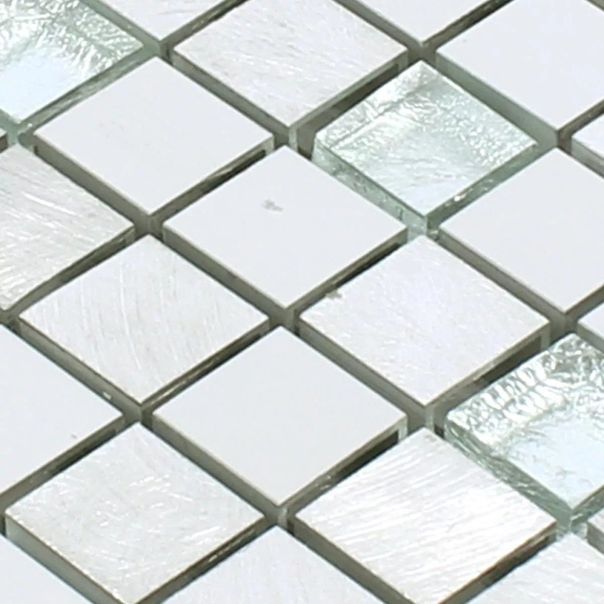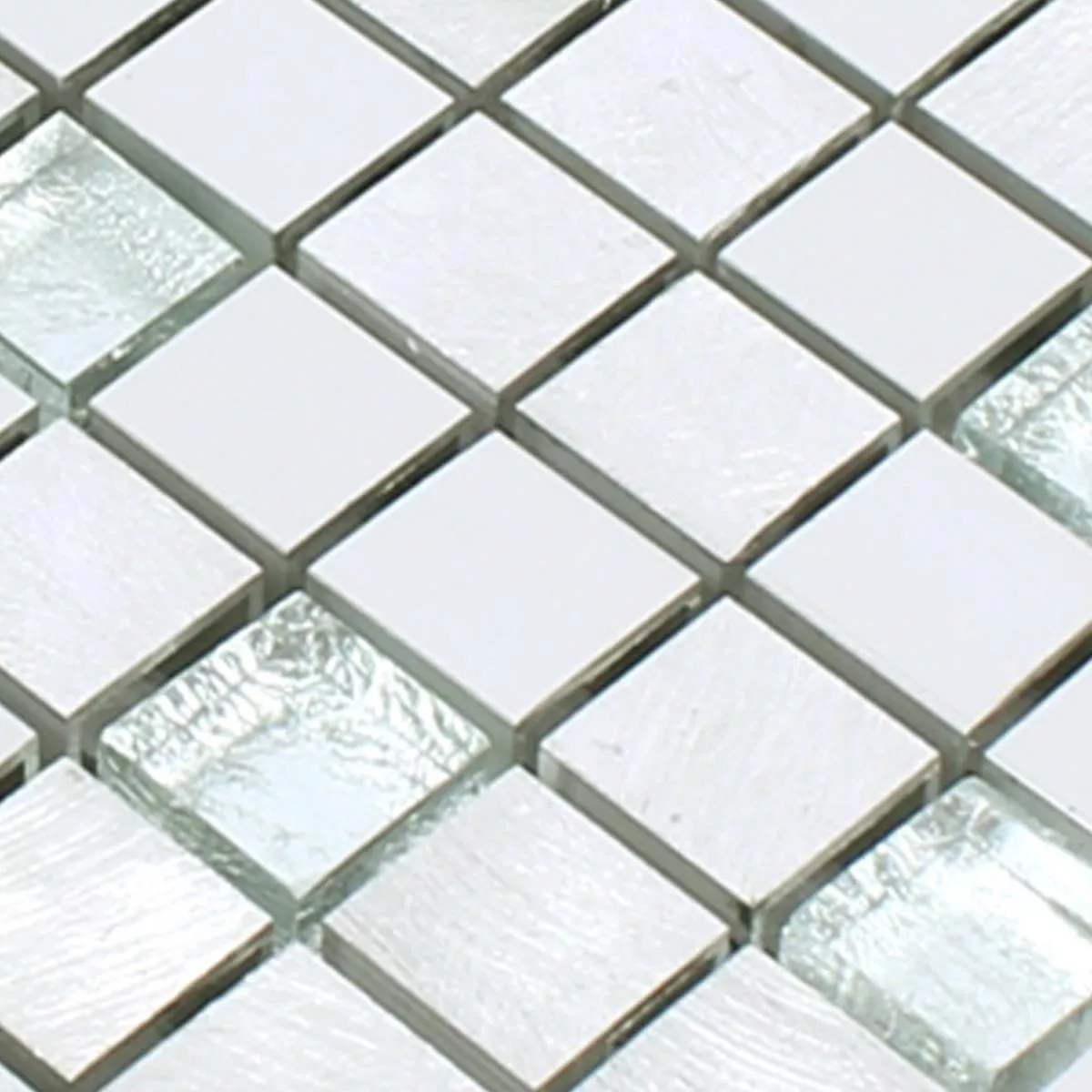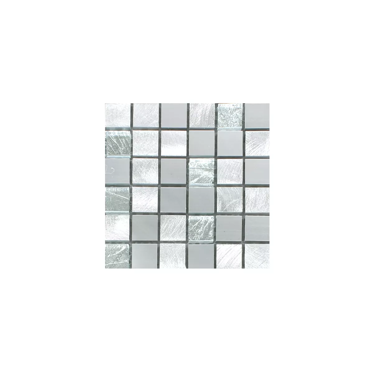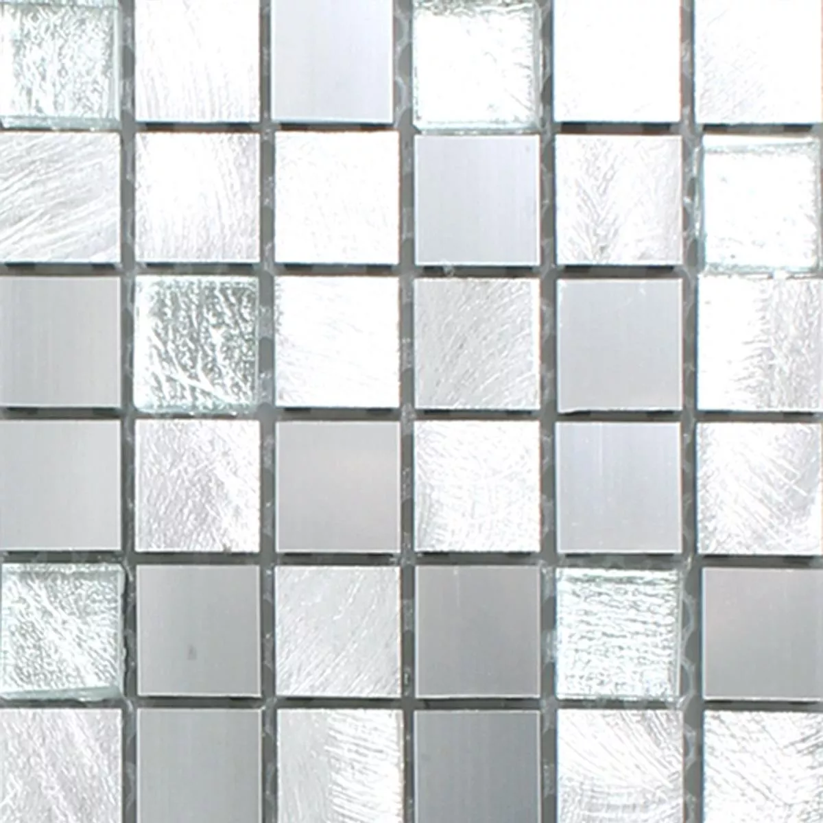 Muster von Mosaikfliesen Lissabon Aluminium Glas Mix Silber