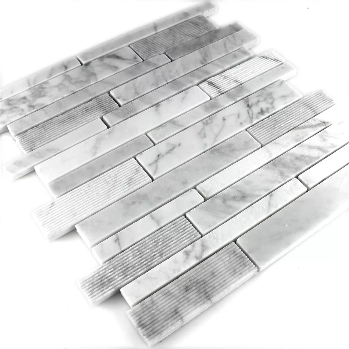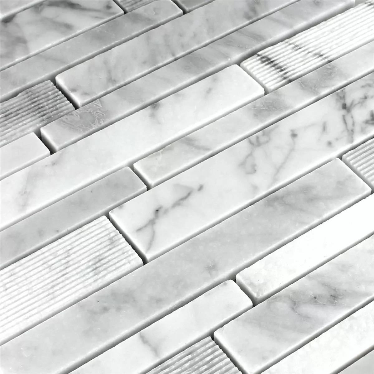 Muster von Mosaikfliesen Marmor Stäbchen Weiss