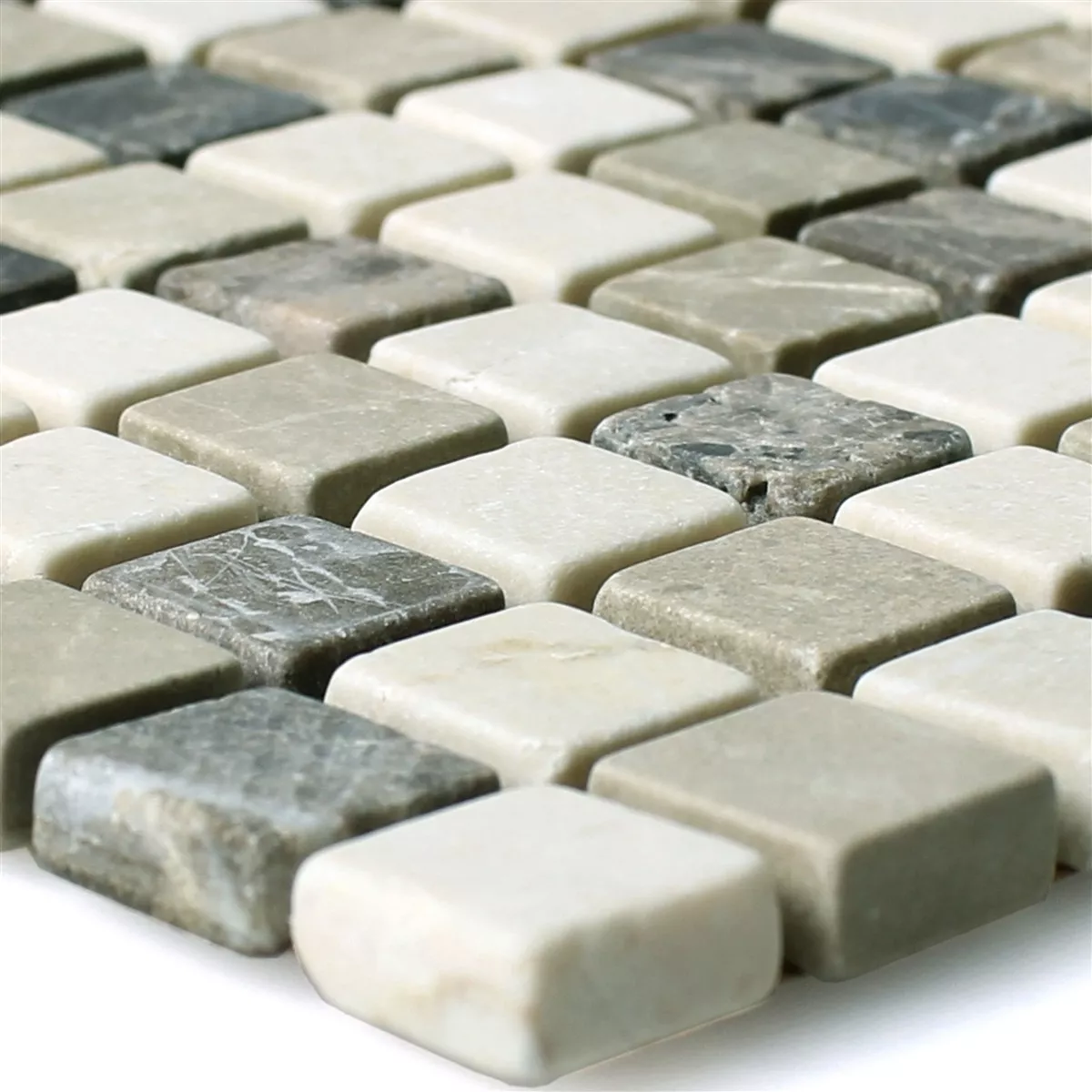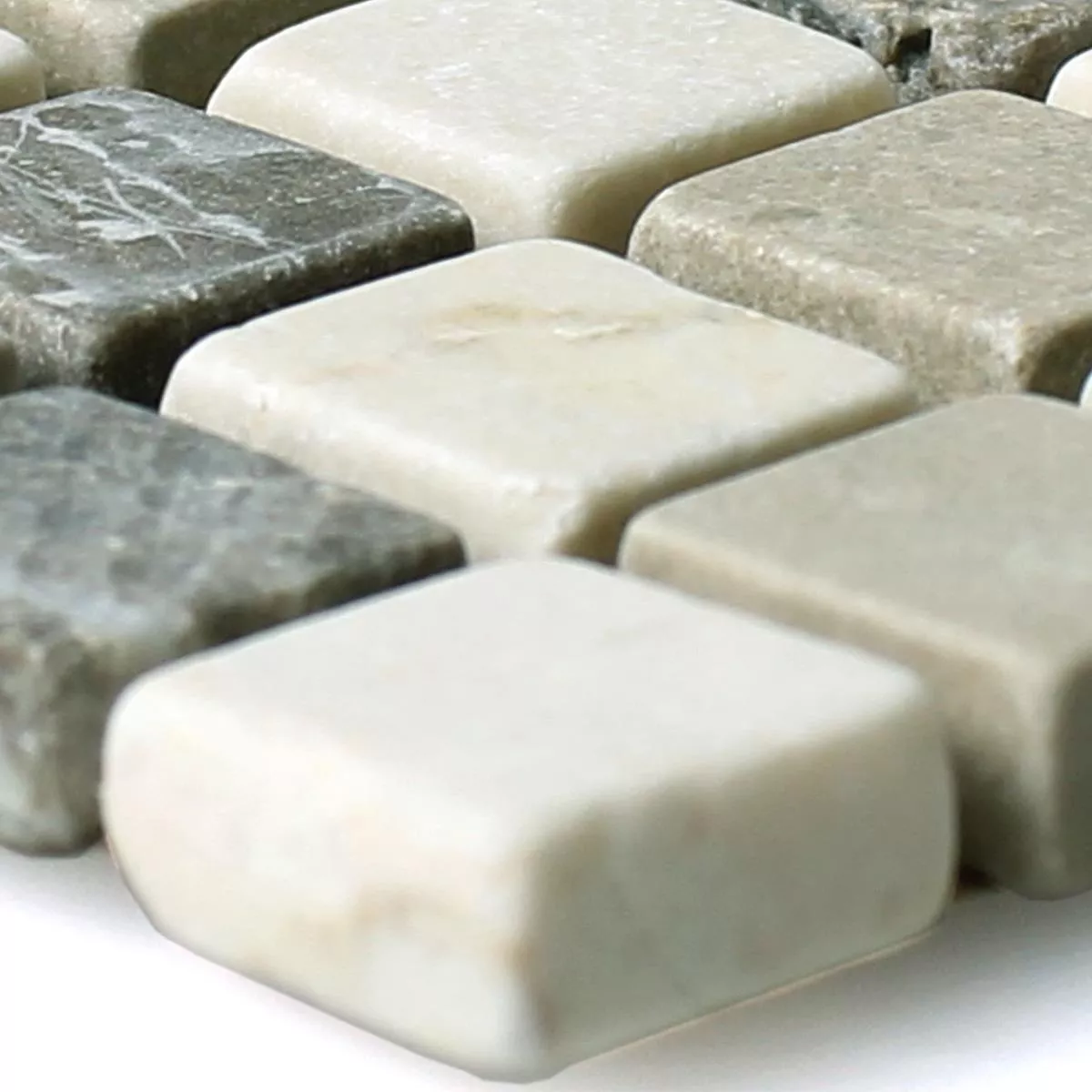 Muster von Mosaikfliesen Marmor Waranya Castanao Biancone