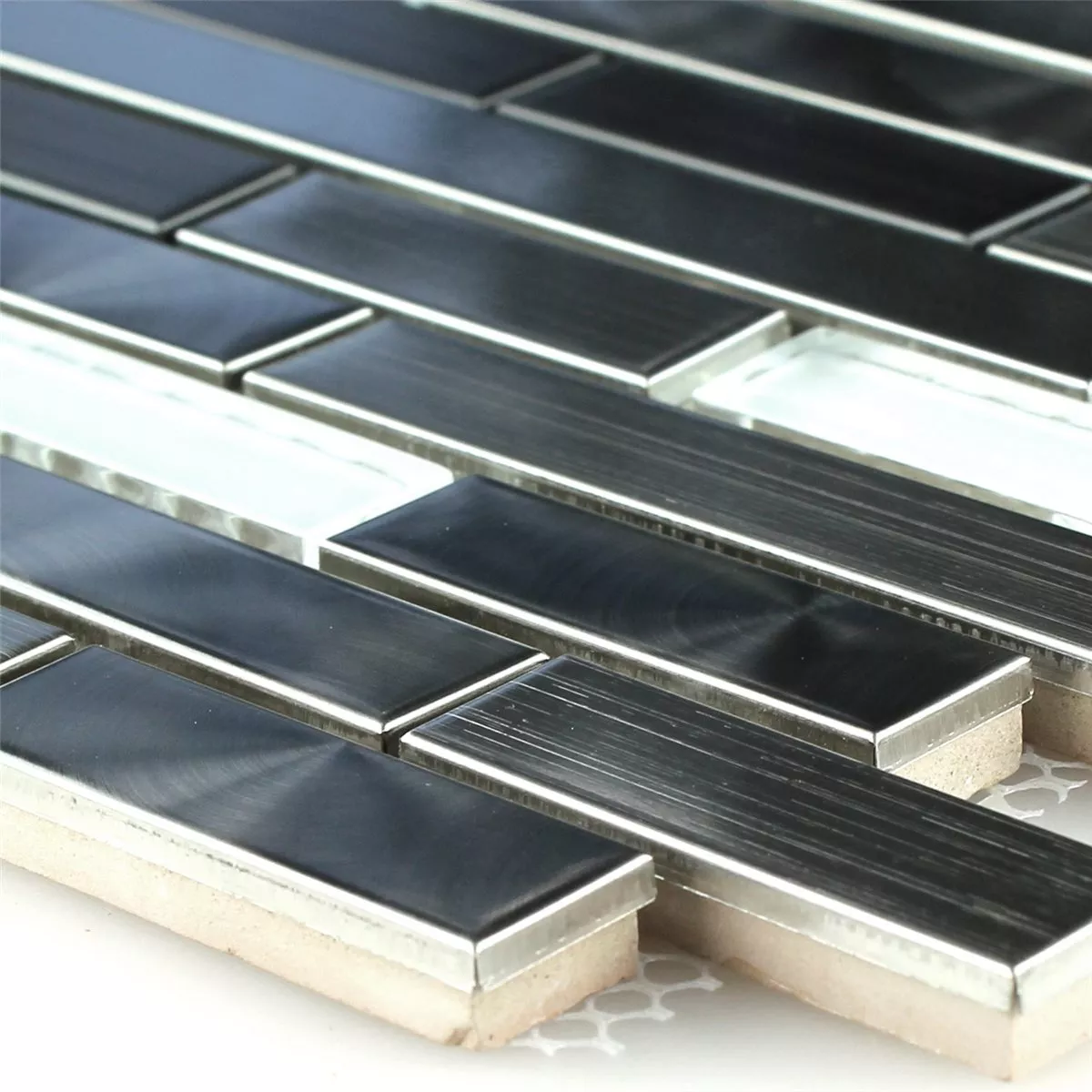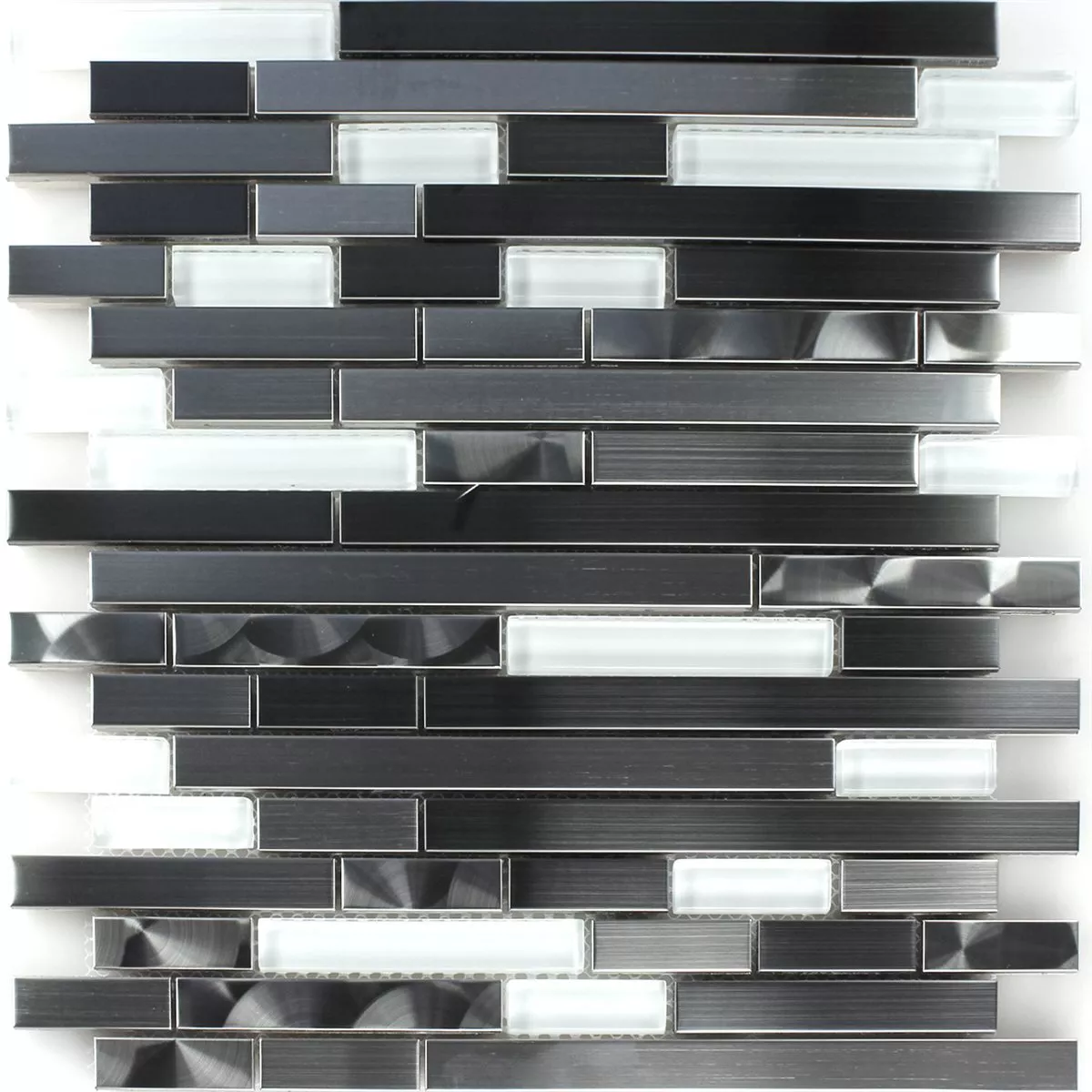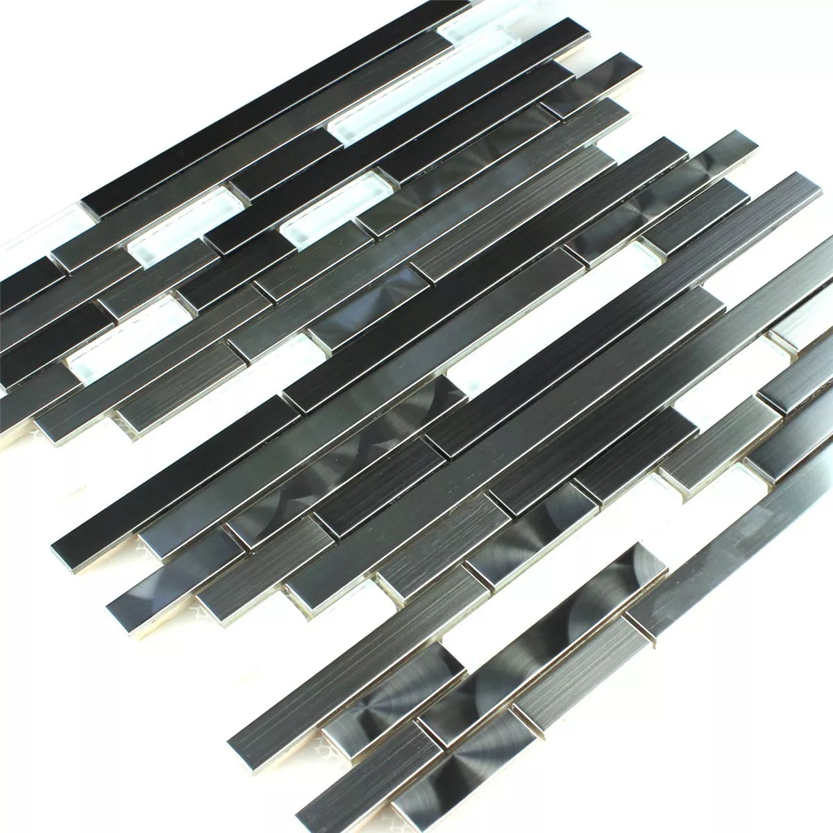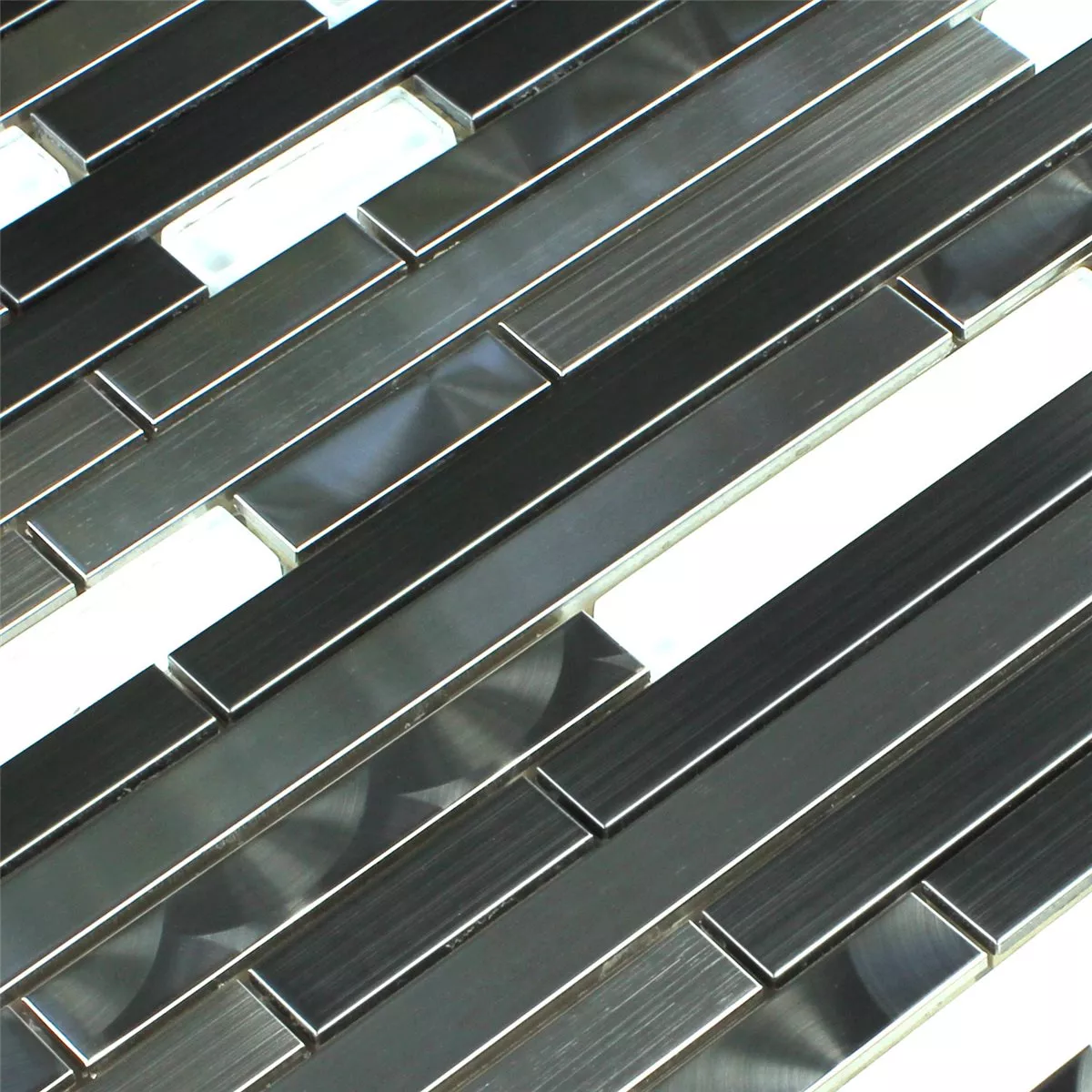 Muster von Mosaikfliesen Metall Glas Weiss Silber Sticks