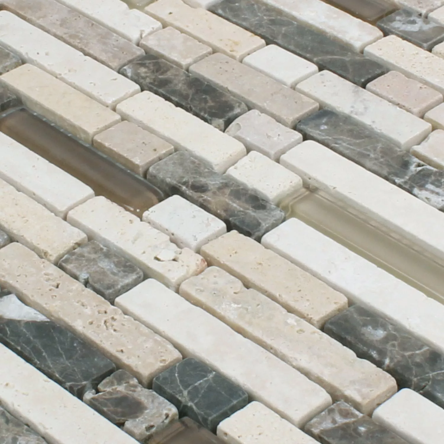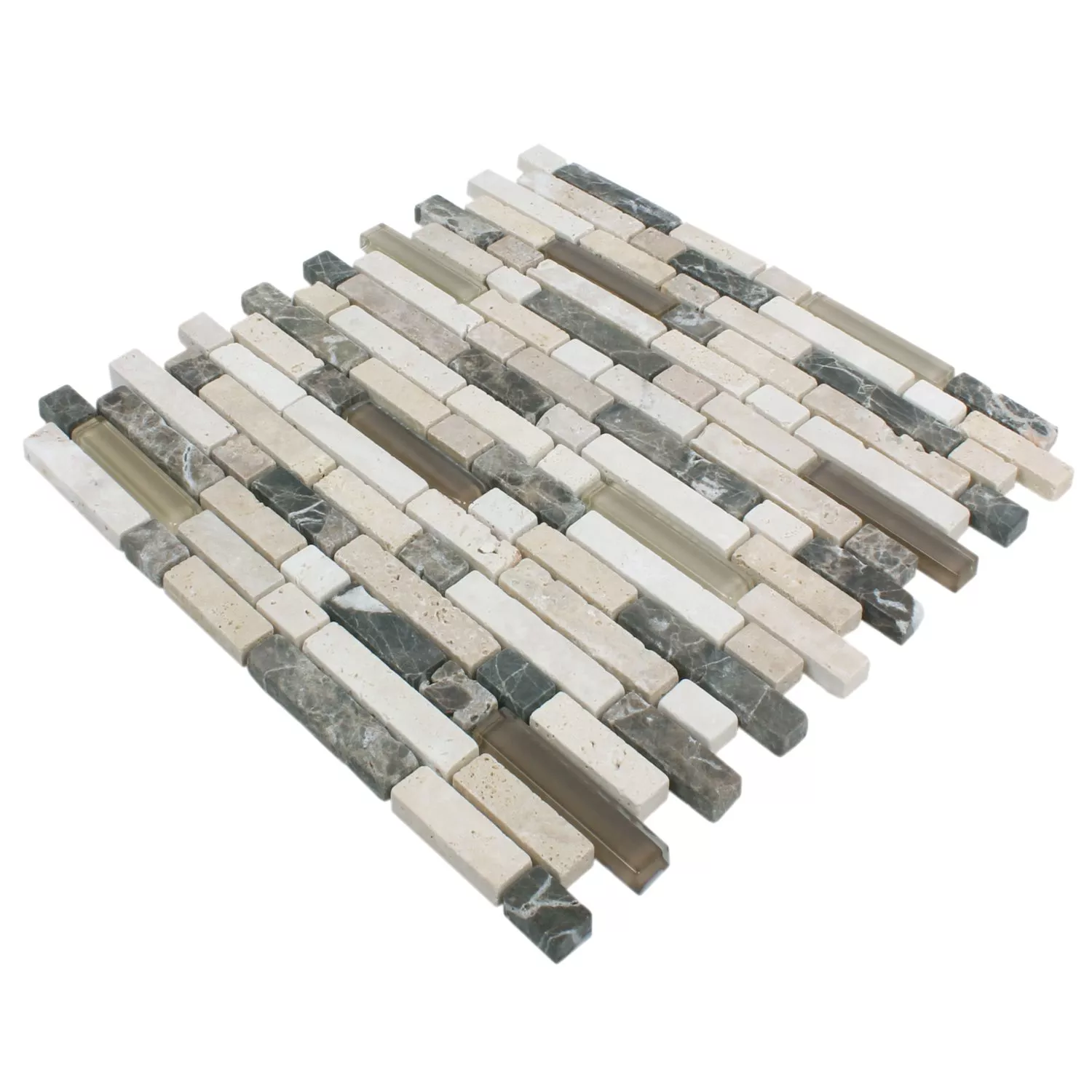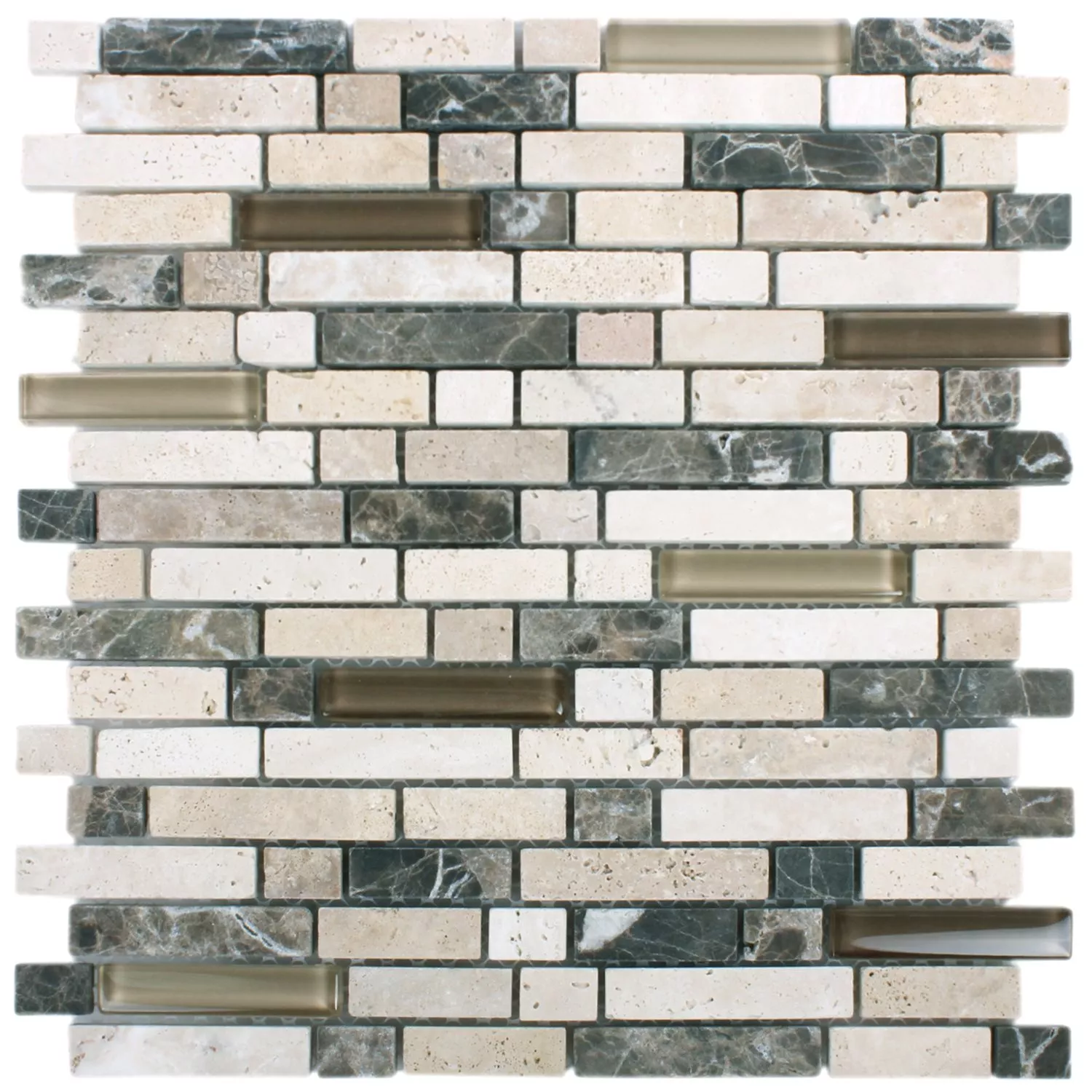 Muster von Mosaikfliesen Milos Glas Naturstein Mix Braun Beige Verbund