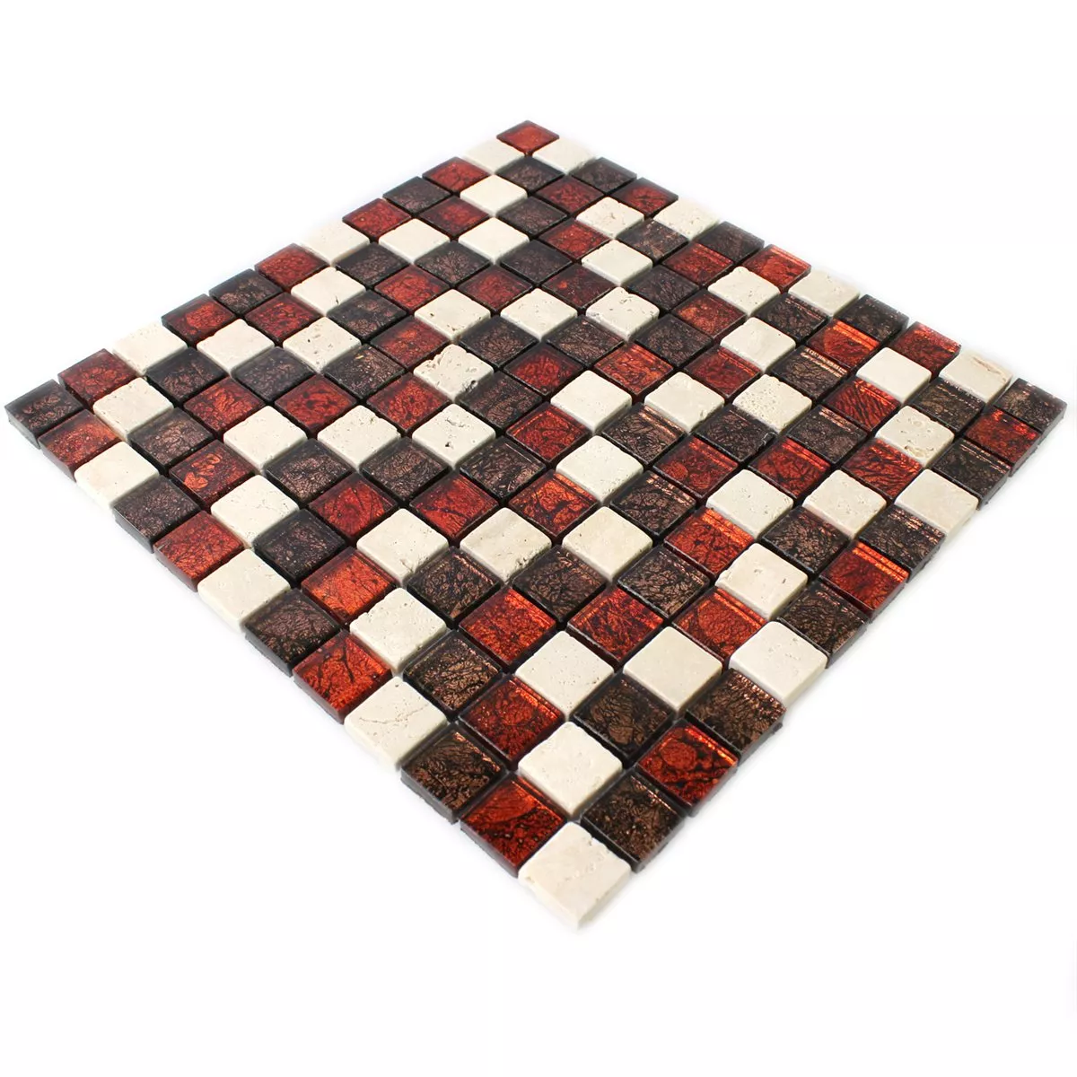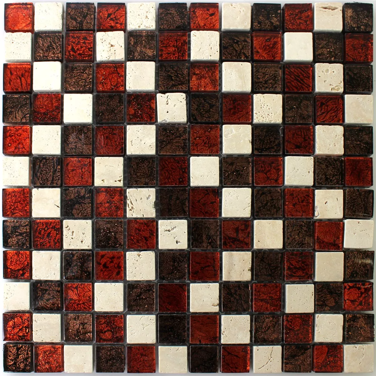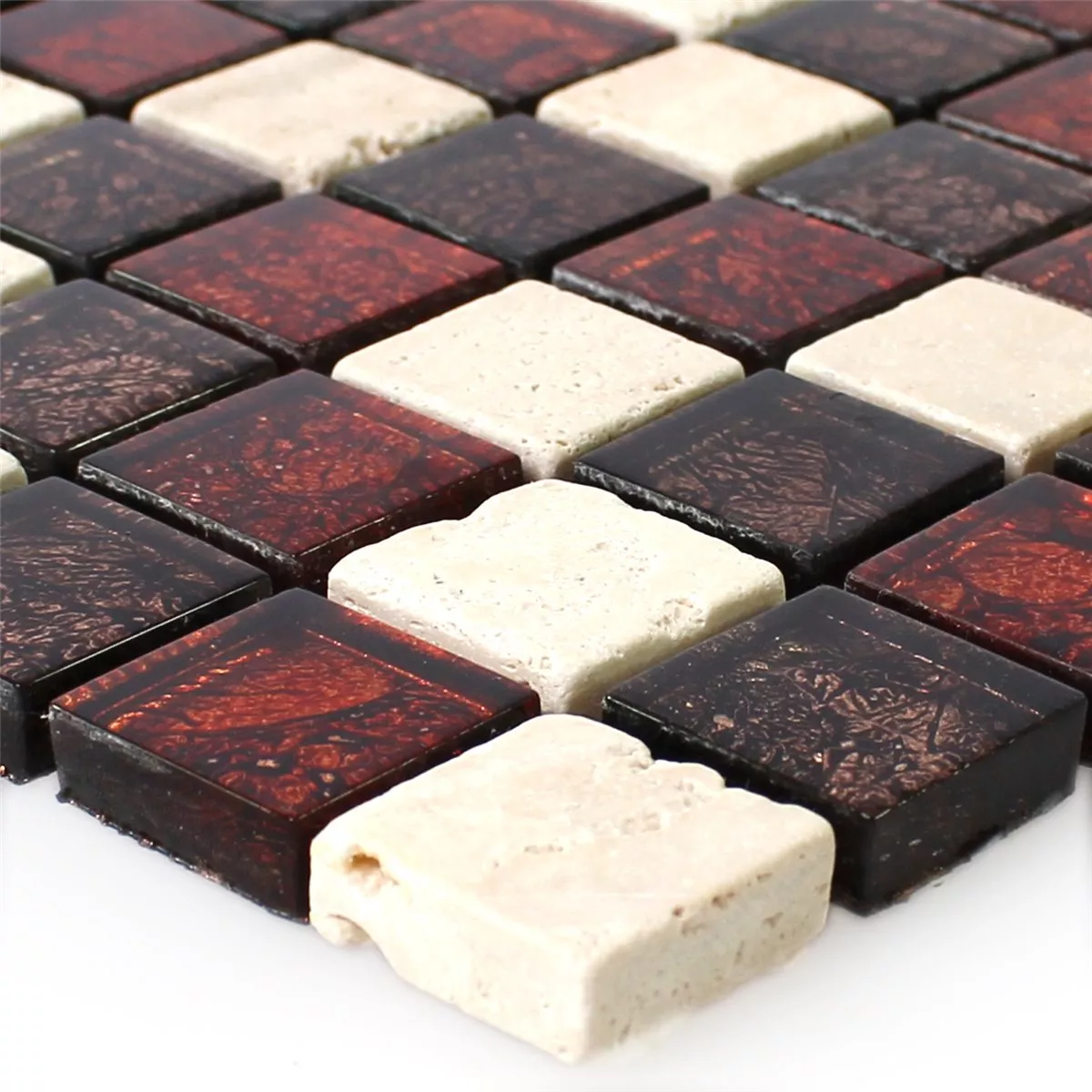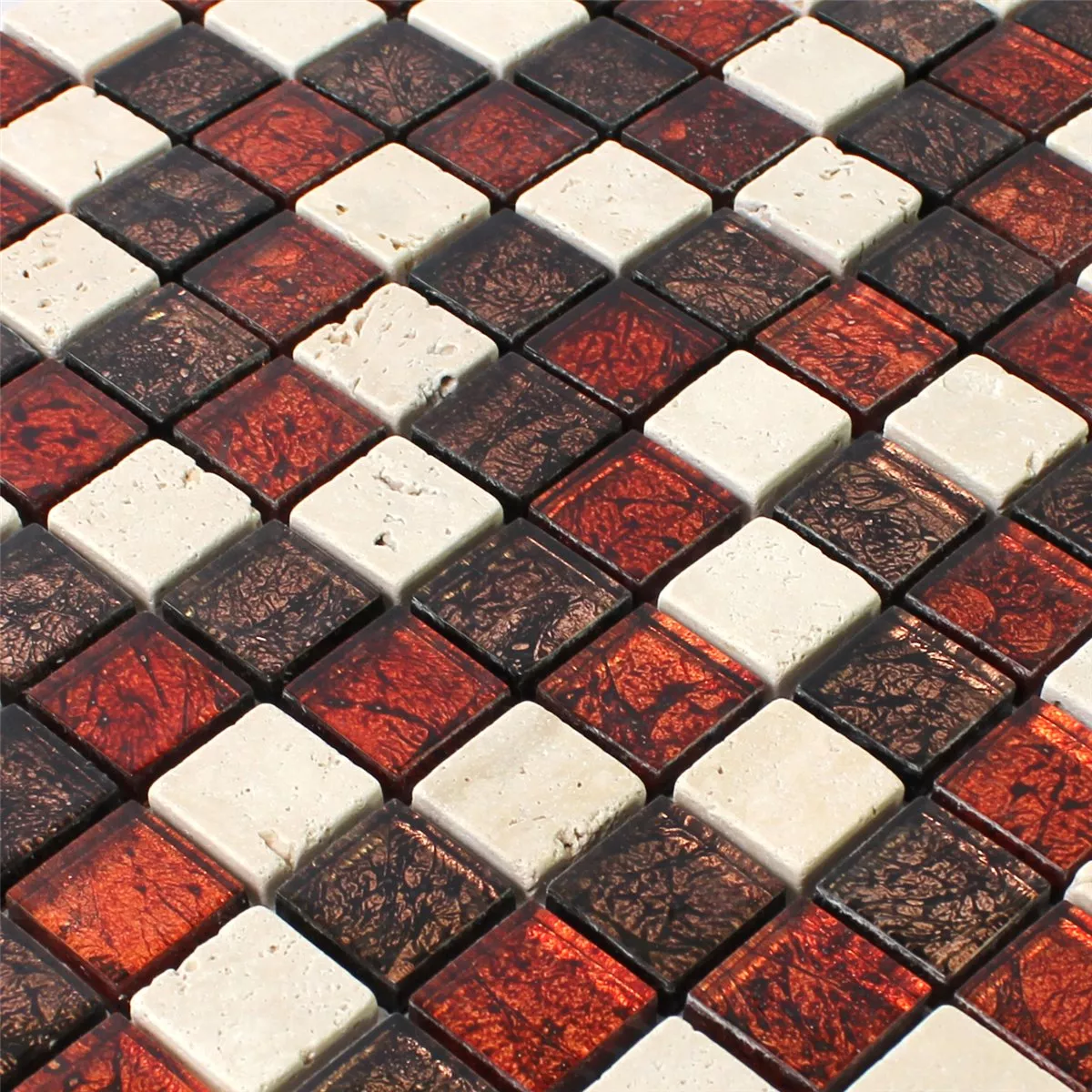 Muster von Mosaikfliesen Naturstein Glas Rot Braun Beige