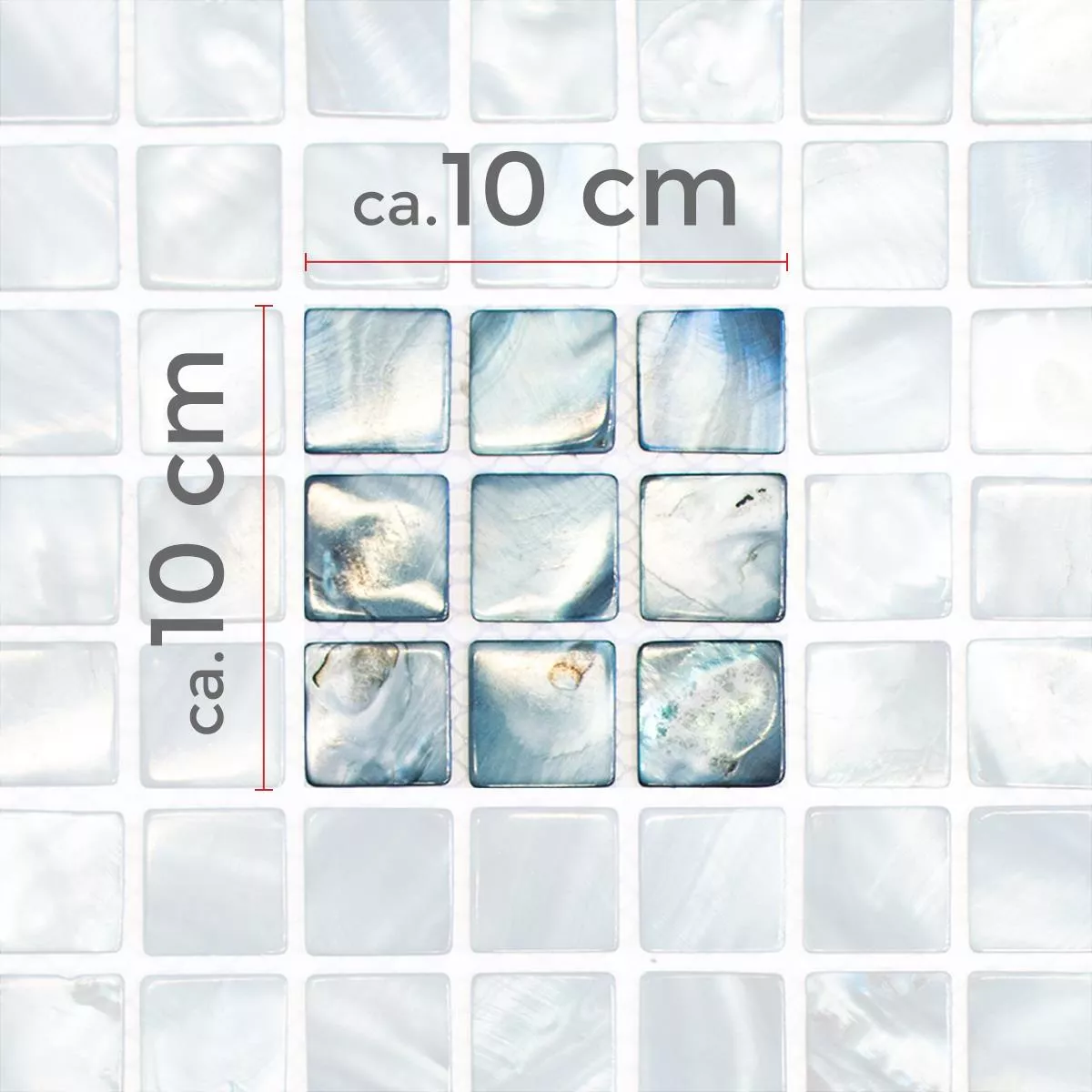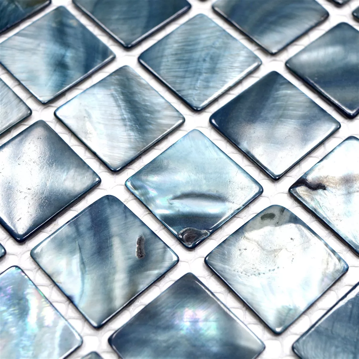 Muster von Mosaikfliesen Perlmutt Xenia Blau Grau