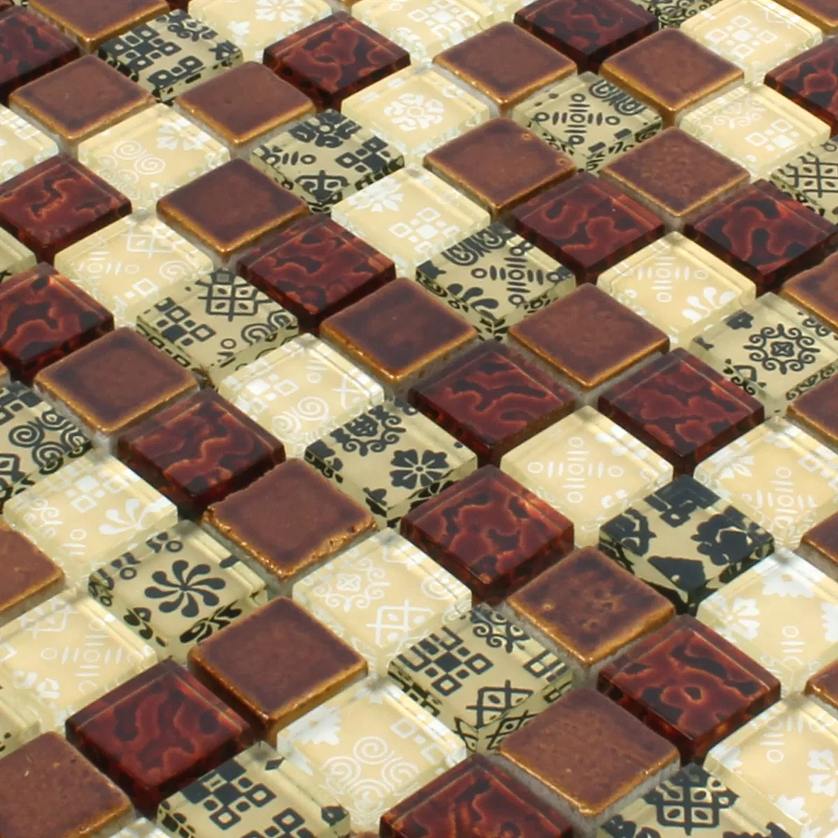 Muster von Mosaikfliesen Resin Glas Belmont Rot Beige
