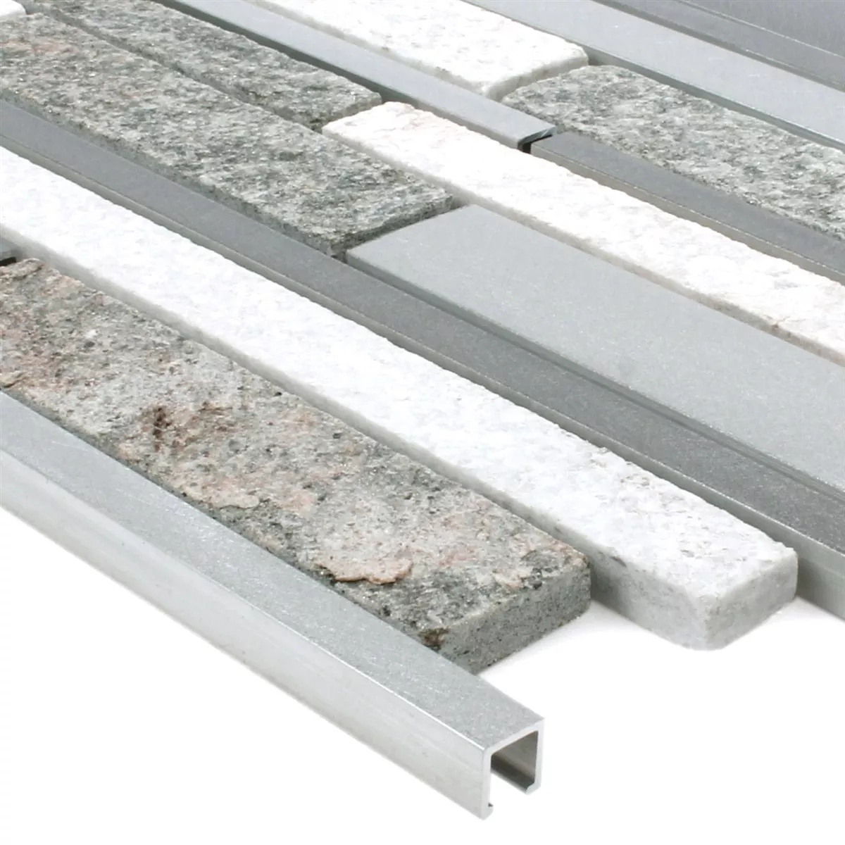 Muster von Mosaikfliesen Wolga Quarzit Aluminium Mix