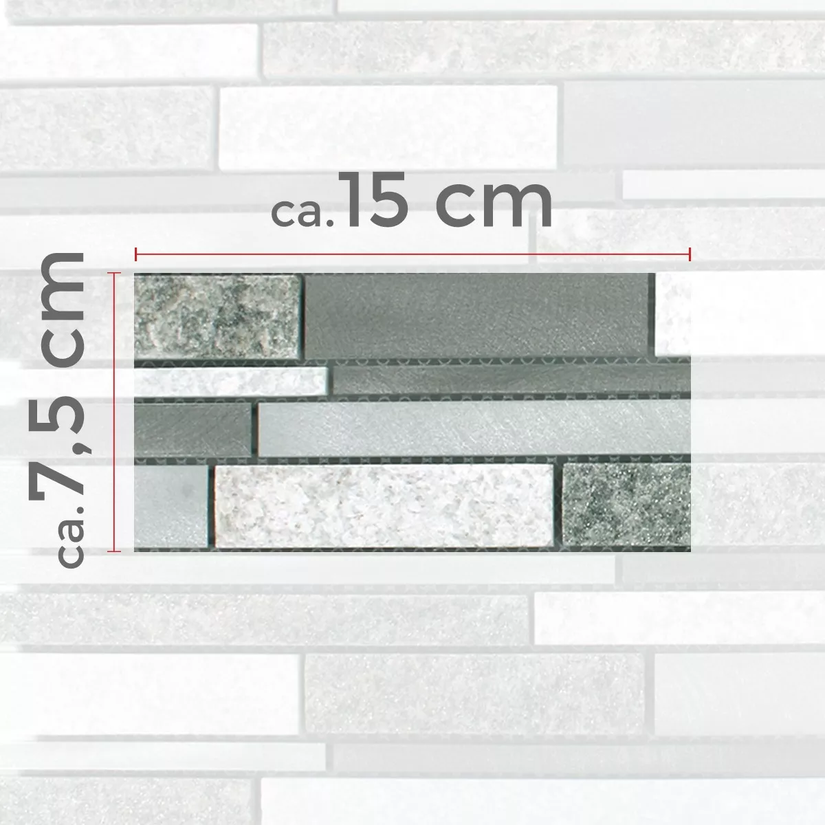 Steingröße: 15x98mm, 23x98mm, 8x98mm, 8x198mm