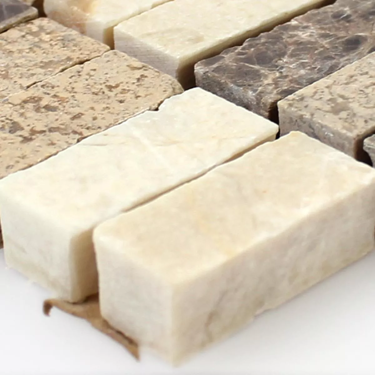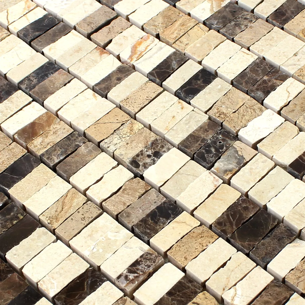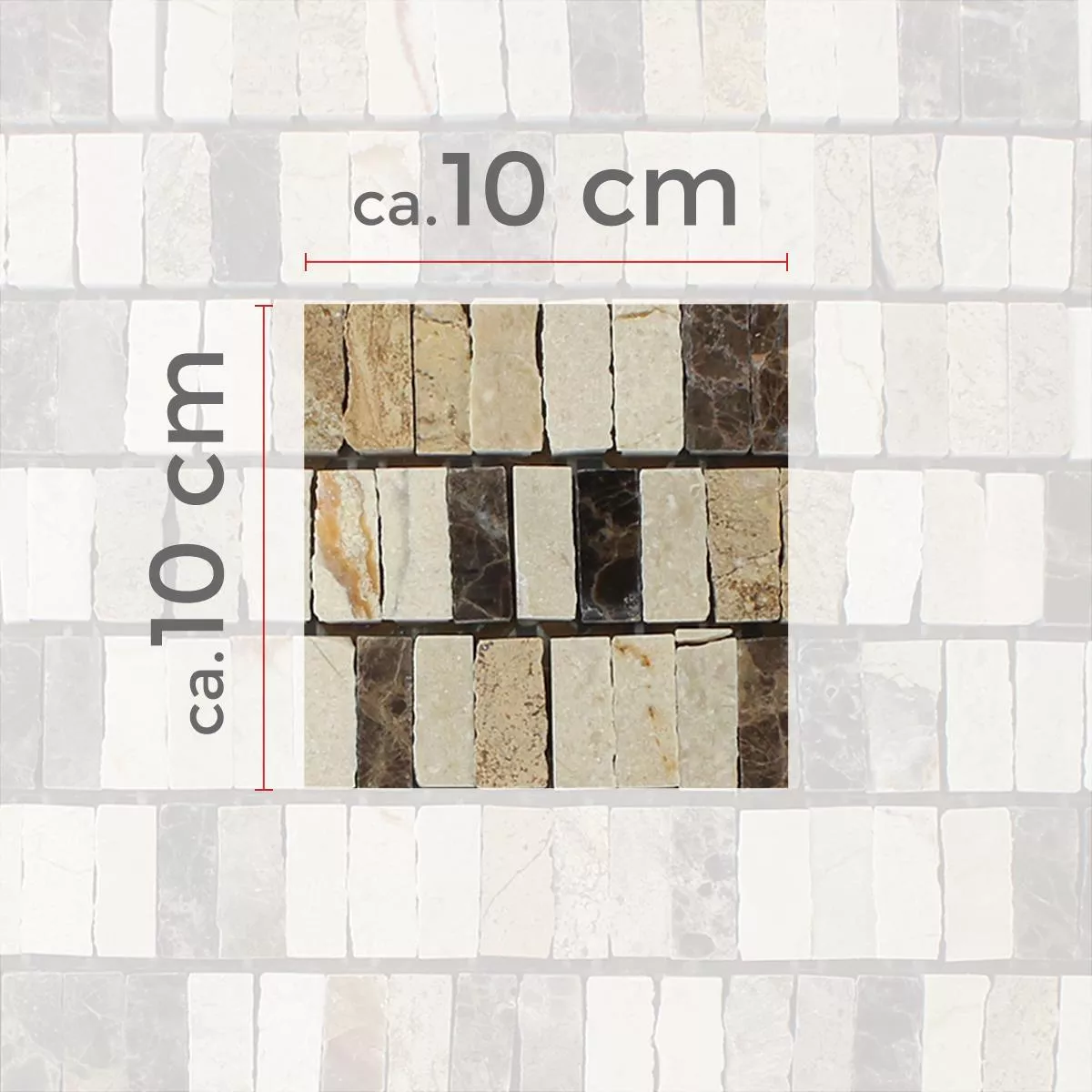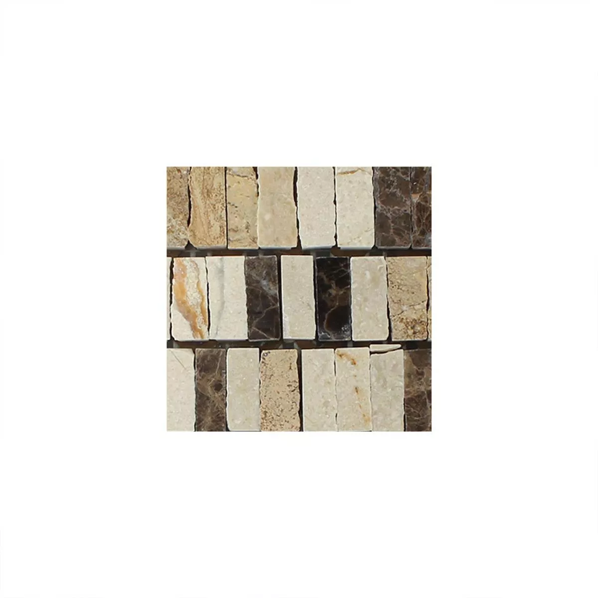 Muster von Mosaikfliesen Zoltan Beige Crema Emperador Stäbchen