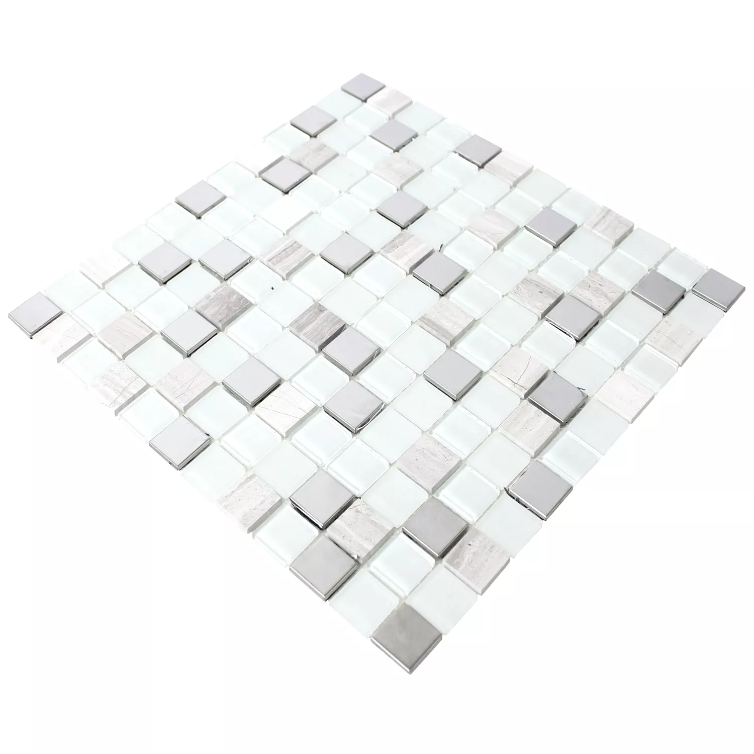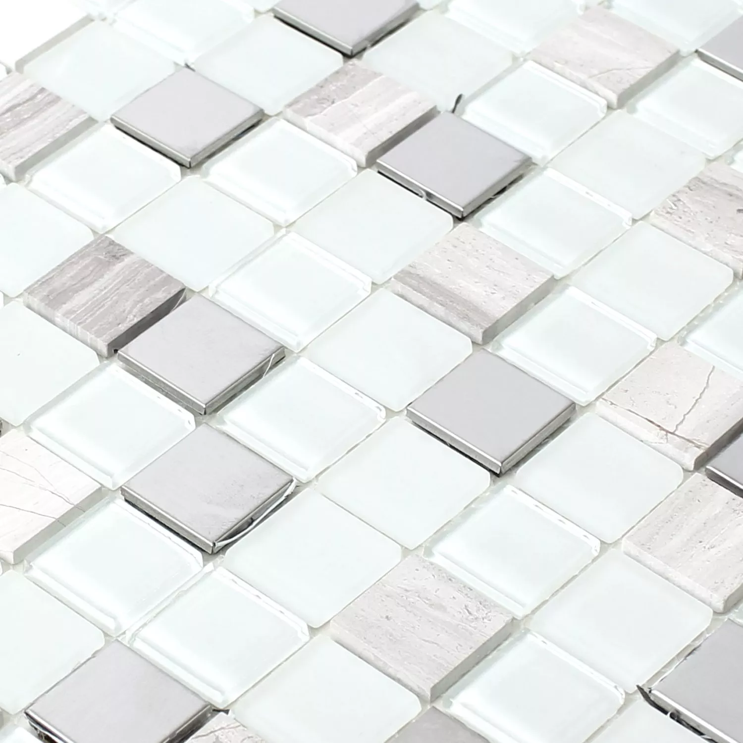 Muster Glas Naturstein Edelstahl Mosaik Starcrest Weiß Silber Grau Selbstklebend