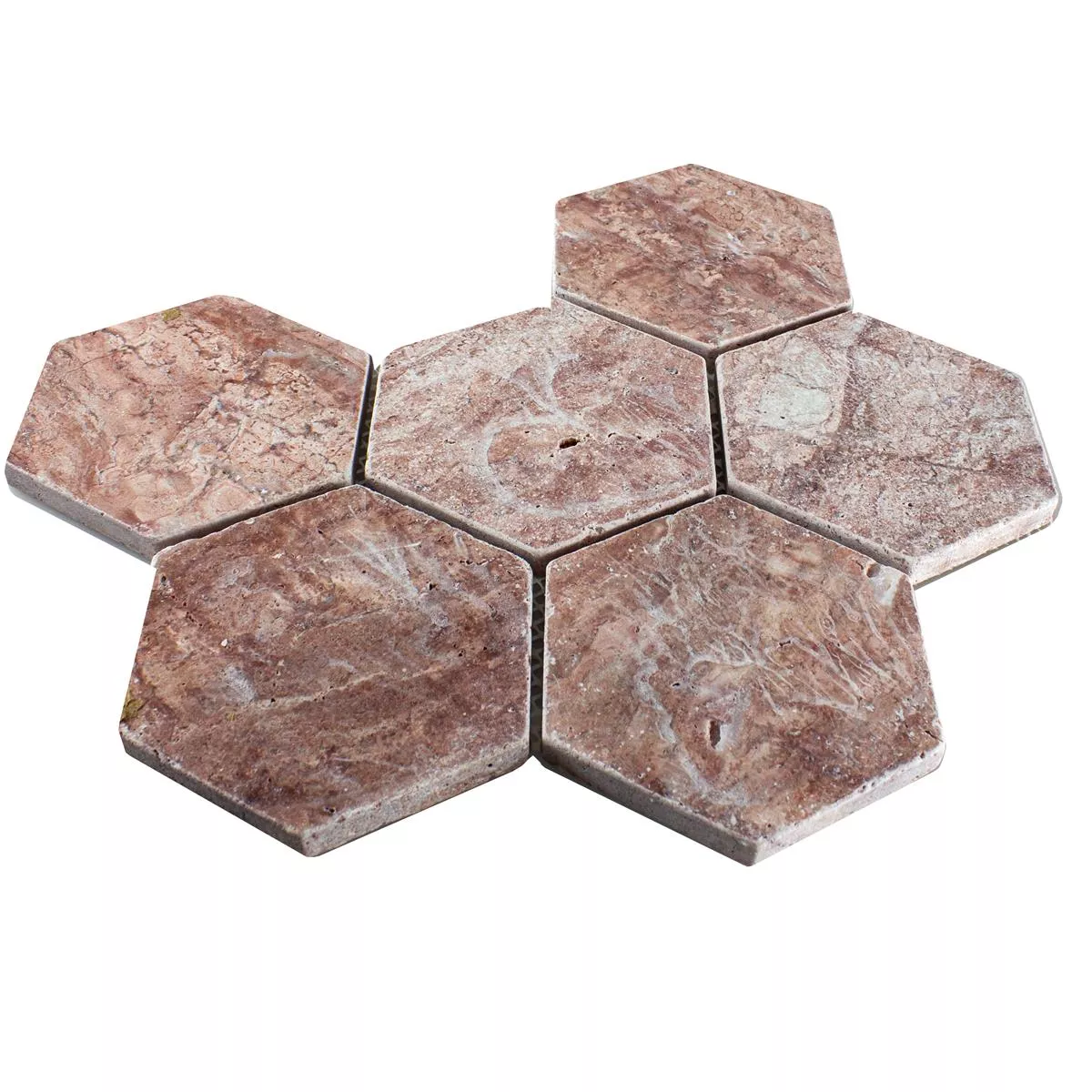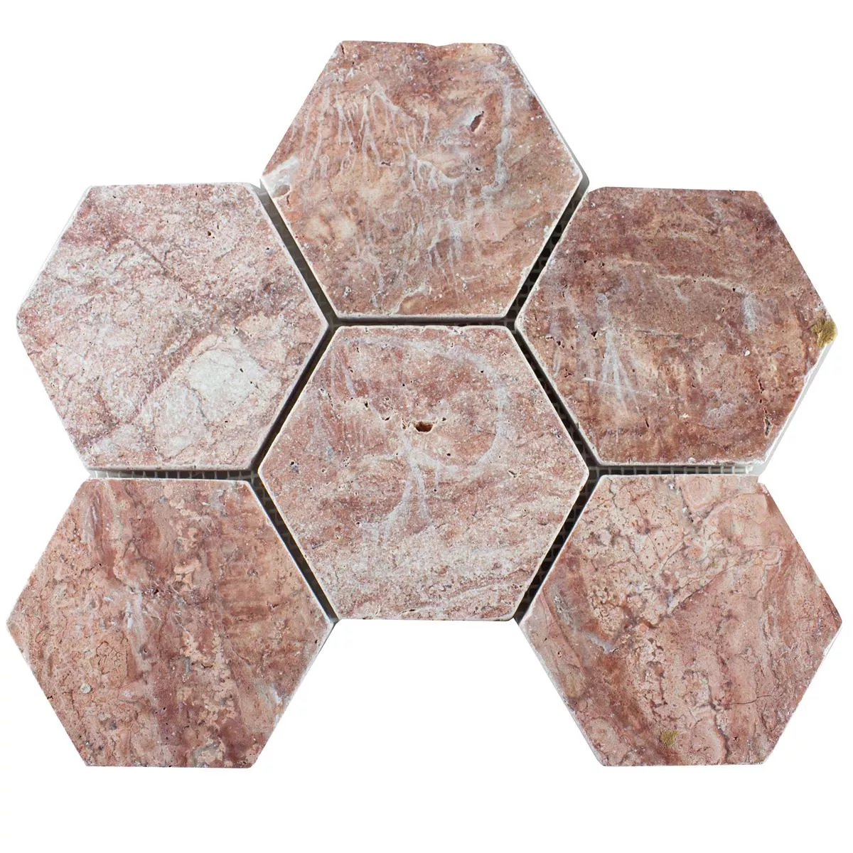 Muster von Travertin Naturstein Mosaikfliesen Mercado Sechseck Rot