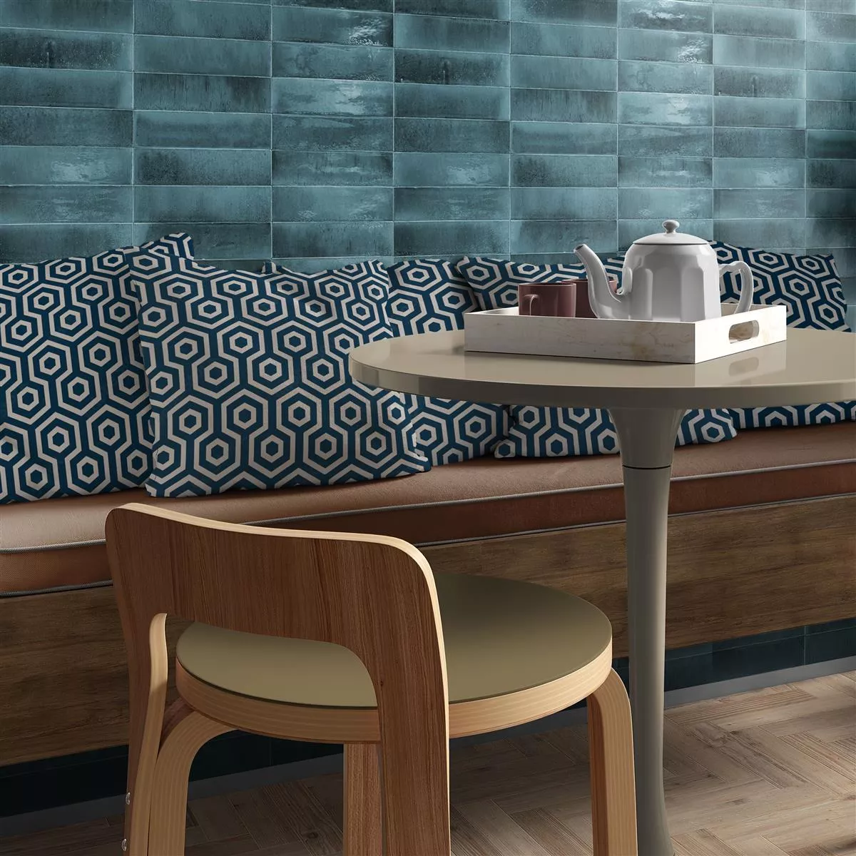 Muster von Wandfliesen Arosa Glänzend Gewellt Pazifikblau 6x25cm