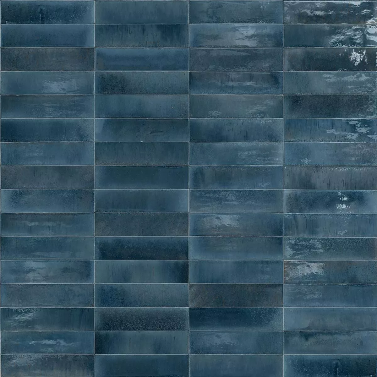 Muster von Wandfliesen Laguna Glänzend Gewellt Blau 6x24cm