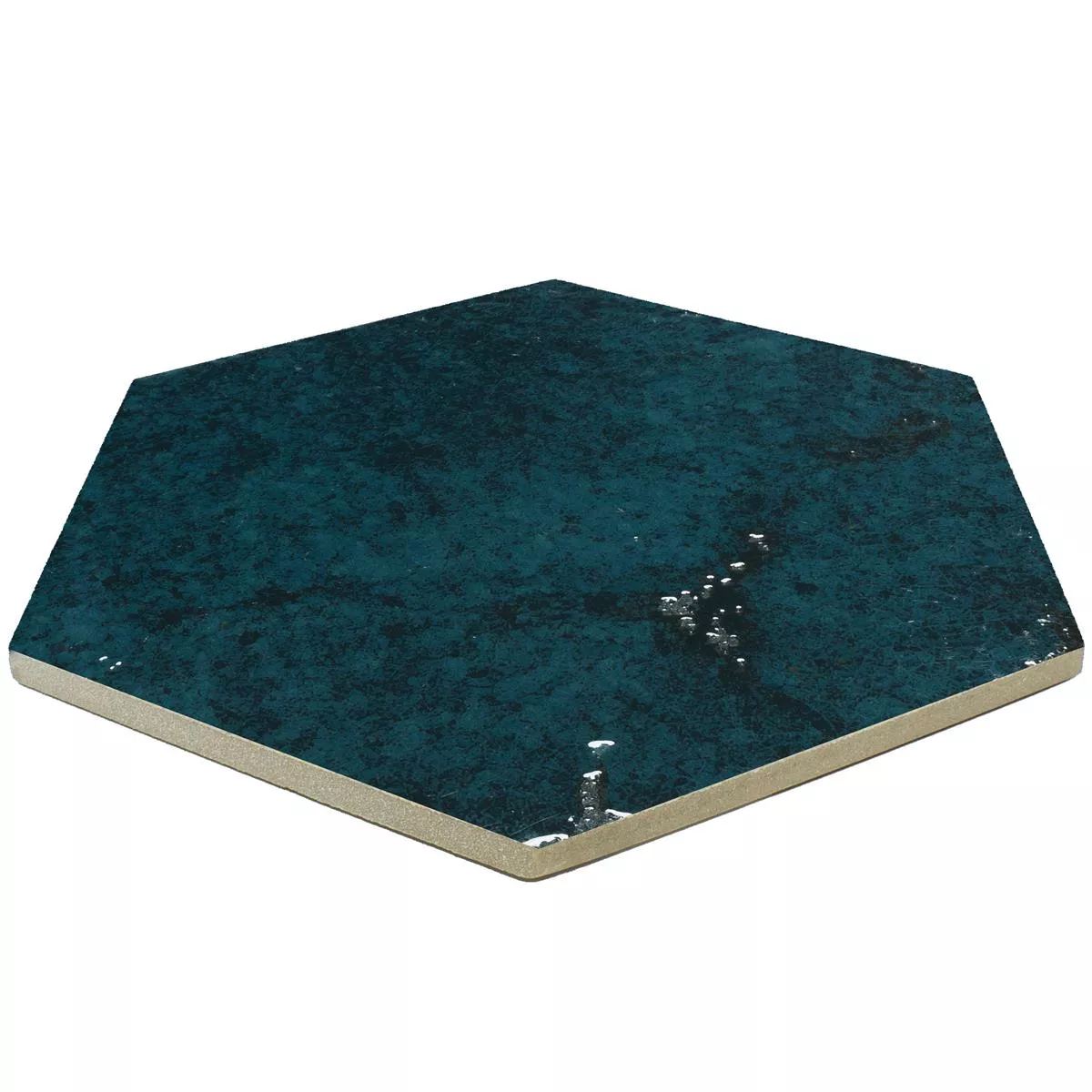 Muster von Wandfliesen Lara Glänzend Gewellt 13x15cm Hexagon Blau