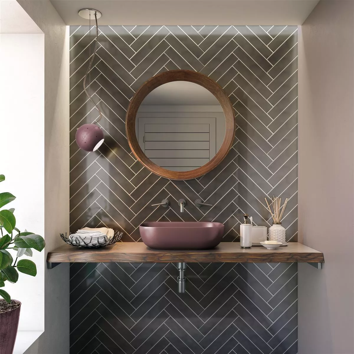 Muster von Wandfliesen Tamaris Flora Glänzend Dunkelgrau Gewellt 5x25cm