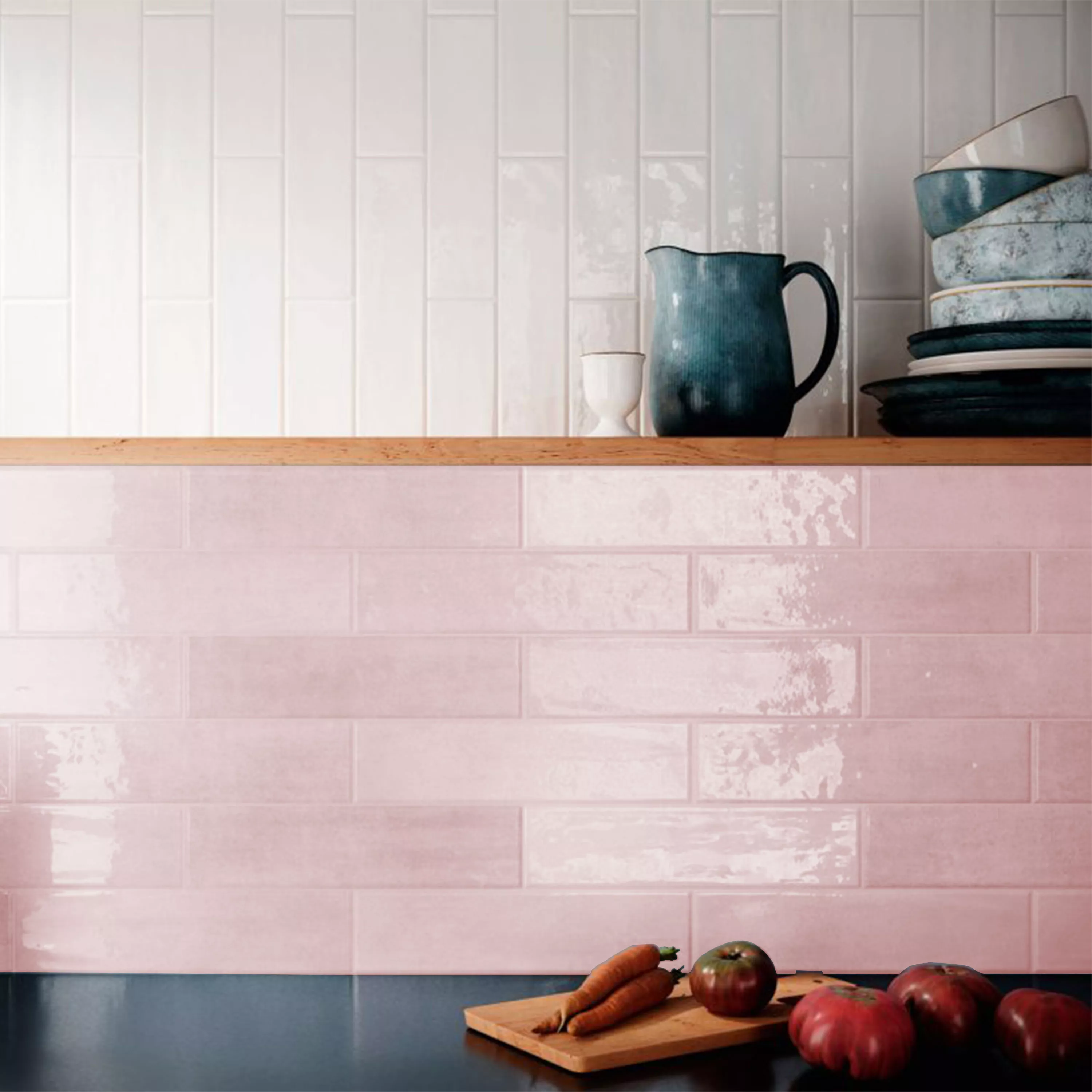 Muster von Wandfliesen Tropea Glänzend Gewellt Rosa 7,5x30cm