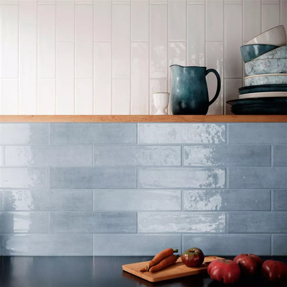 Muster von Wandfliesen Tropea Glänzend Gewellt Blau 7,5x30cm