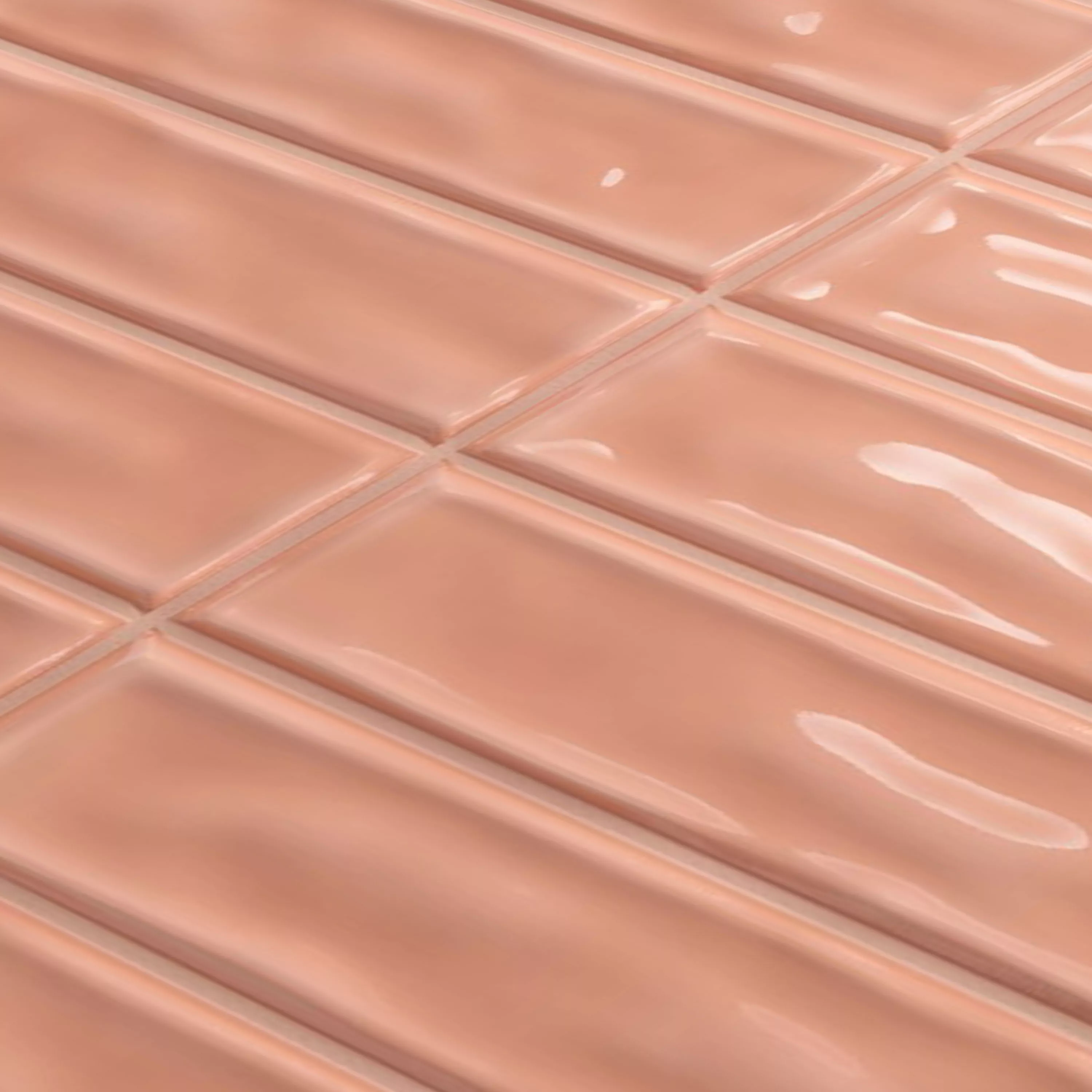 Muster von Wandfliesen Verbania Stäbchen Glänzend Gewellt Rosa 20x20cm