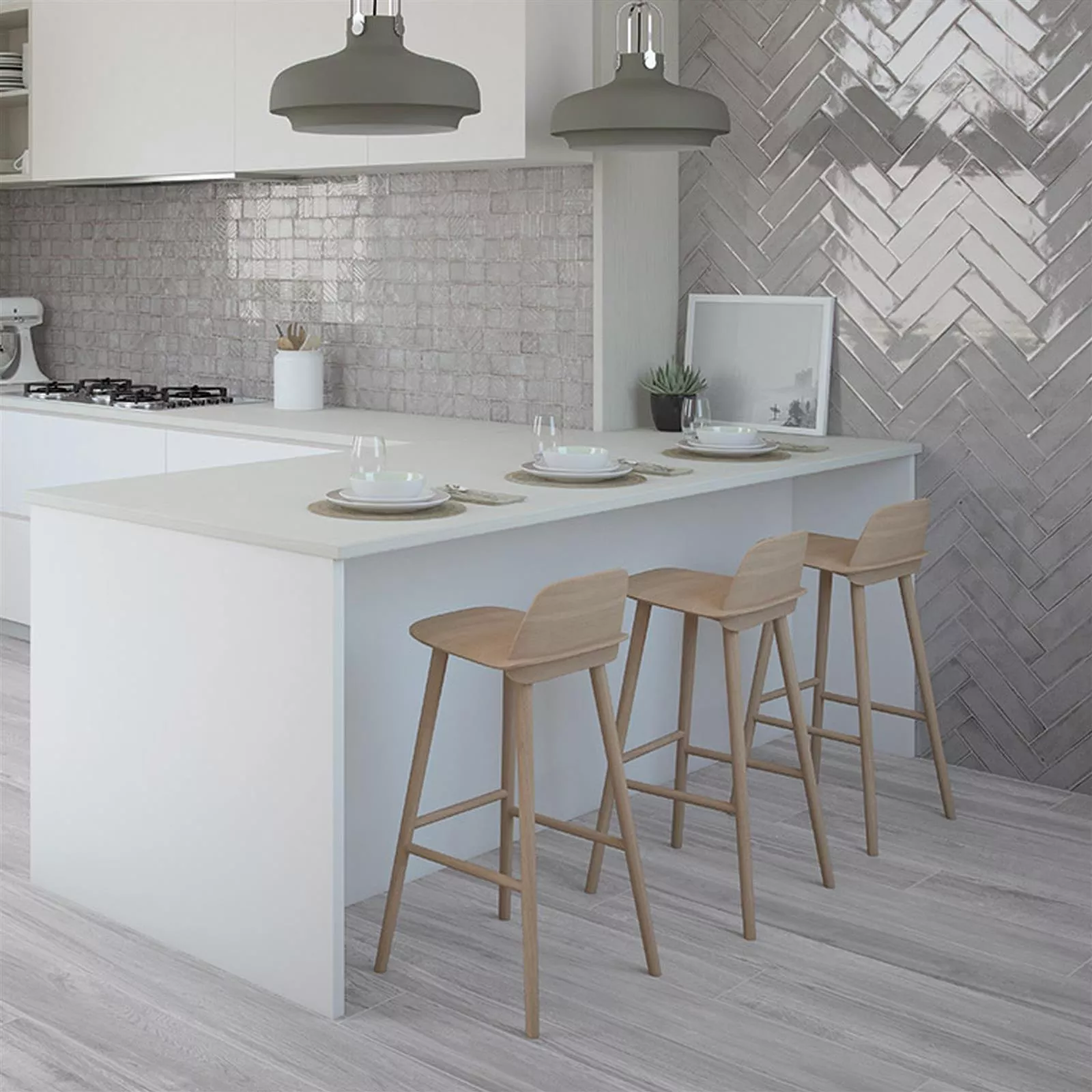 Muster Wandfliesen Maestro Gewellt Glänzend Grau 7,5x30cm
