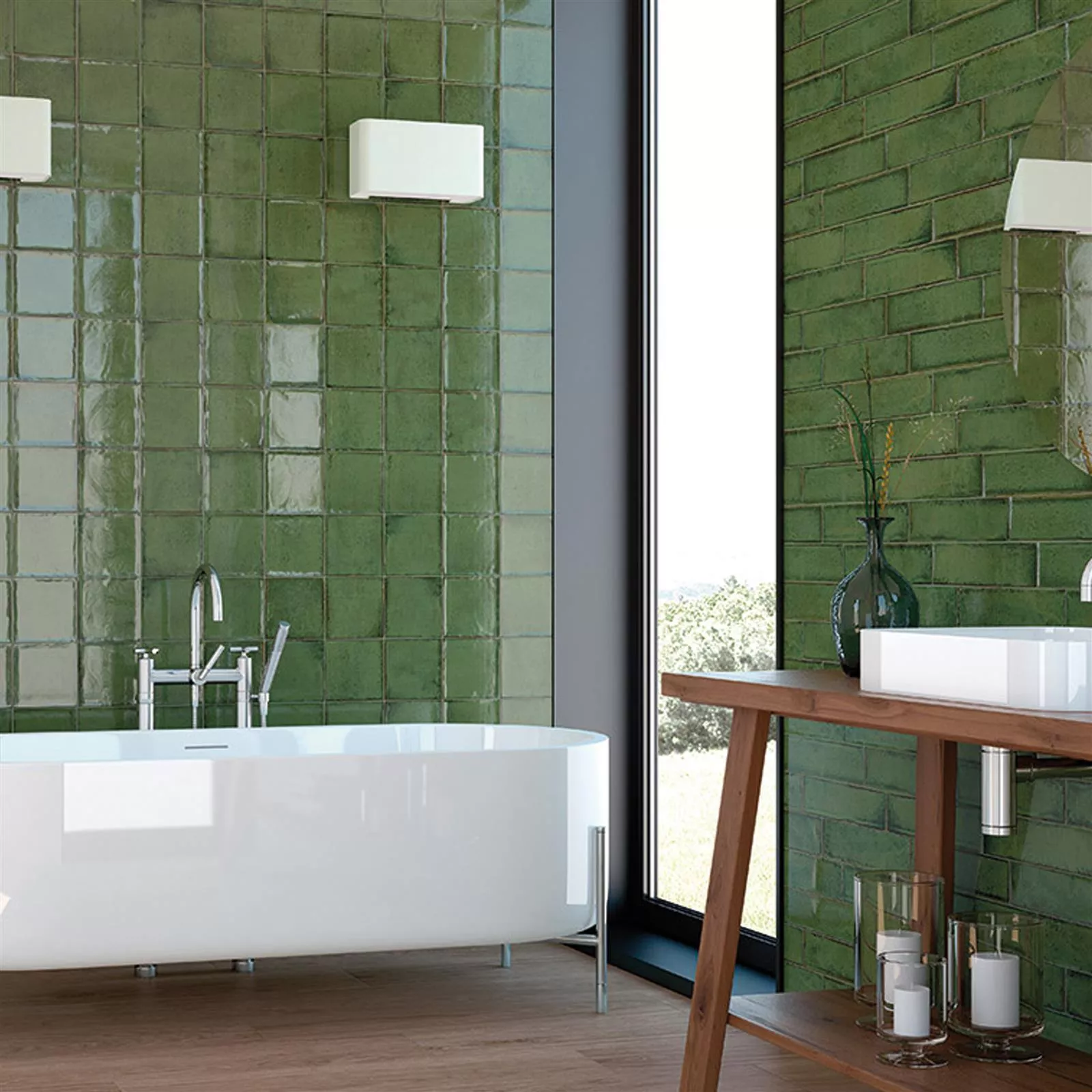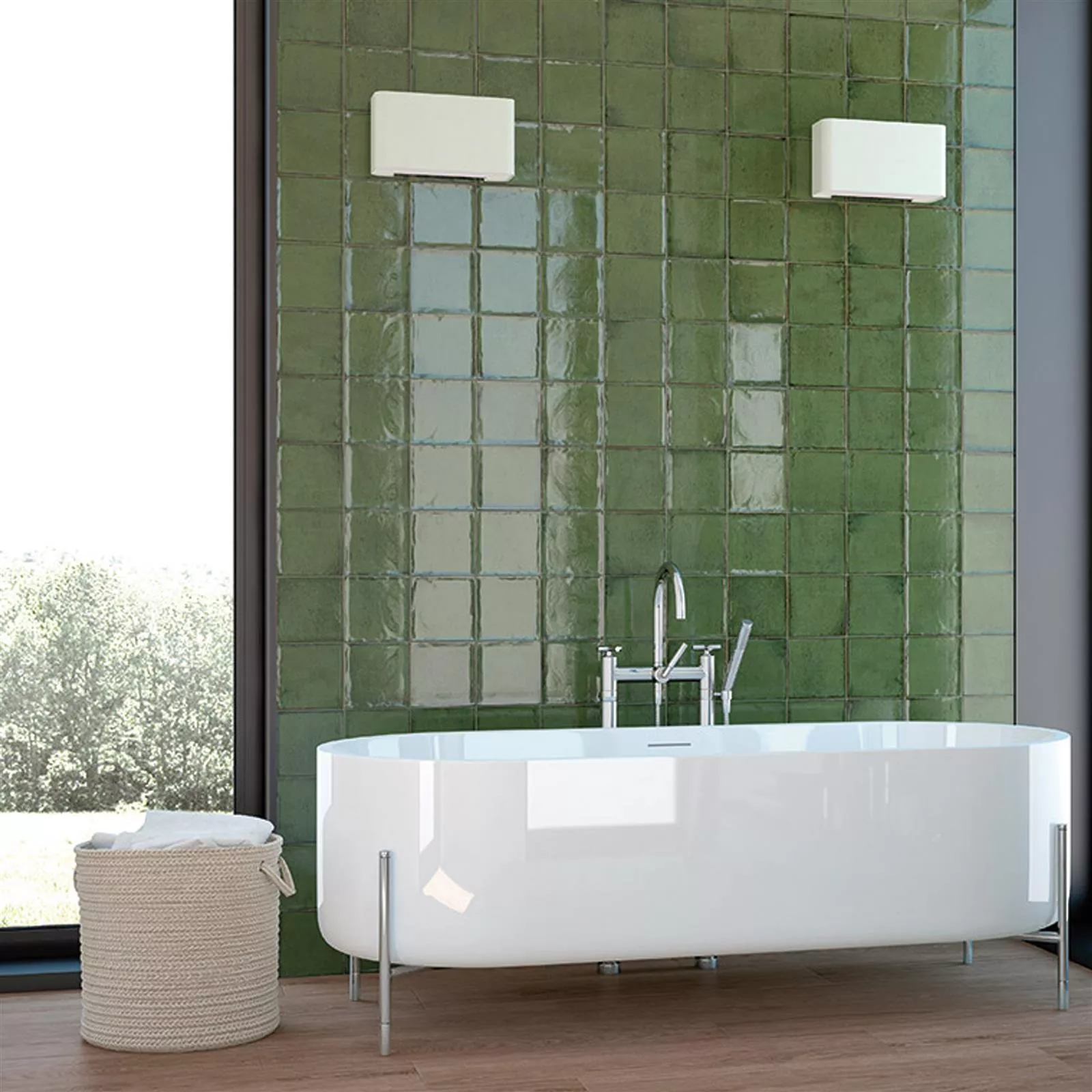 Muster Wandfliesen Maestro Gewellt Glänzend Olivgrün 15x15cm