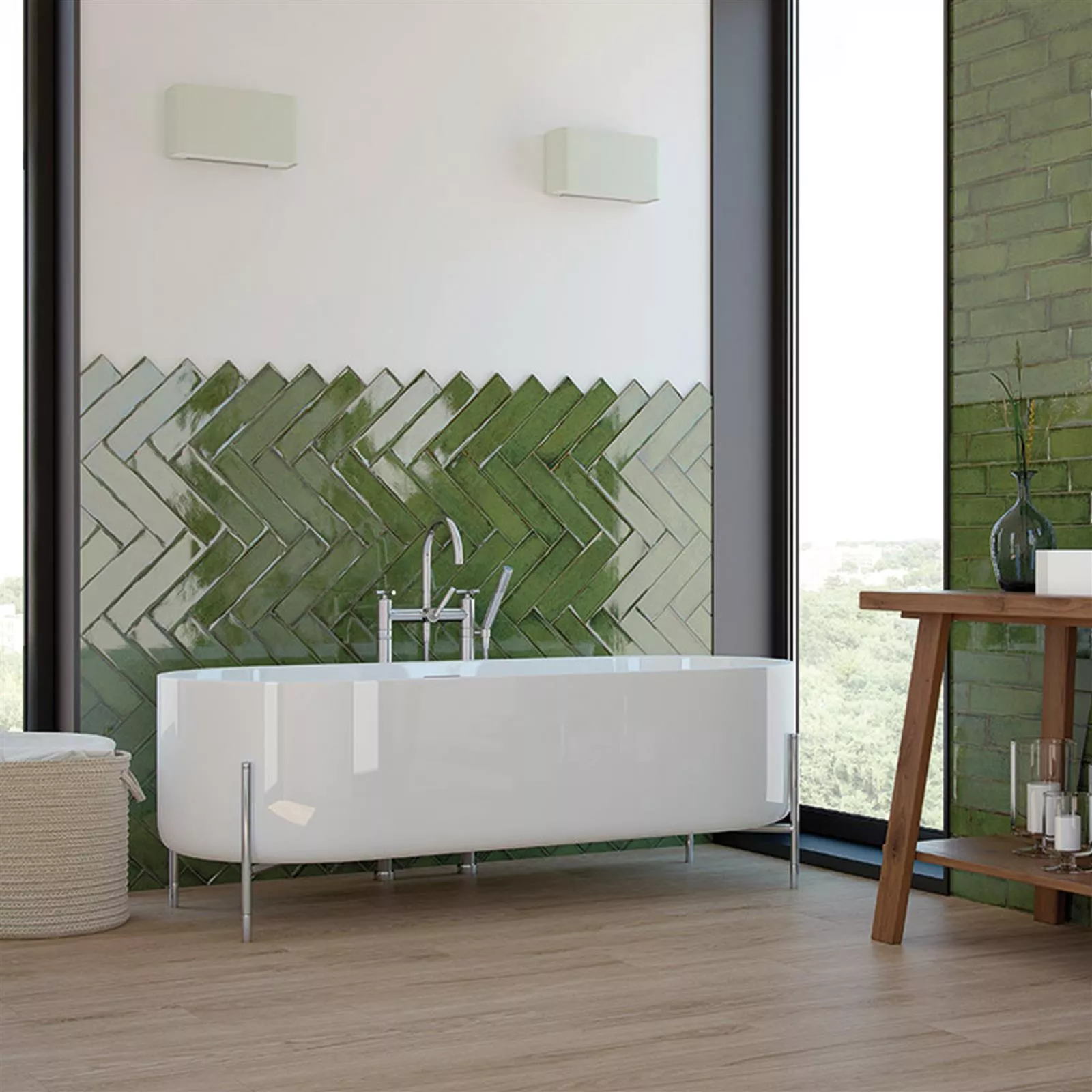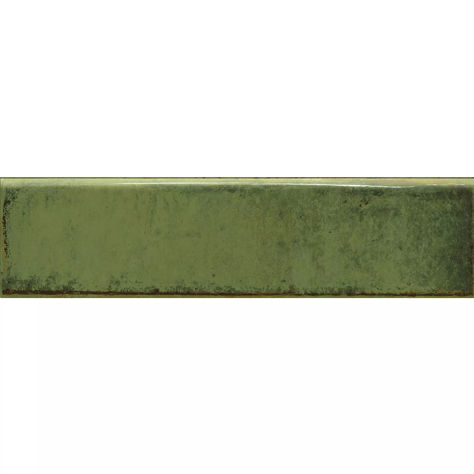 Muster Wandfliesen Maestro Gewellt Glänzend Olivgrün 7,5x30cm