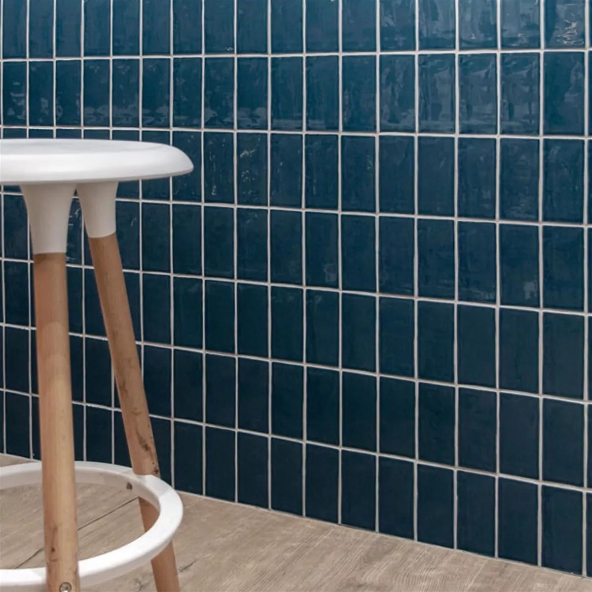 Muster Wandfliesen Mogadischu 7,5x15cm Blau Glänzend