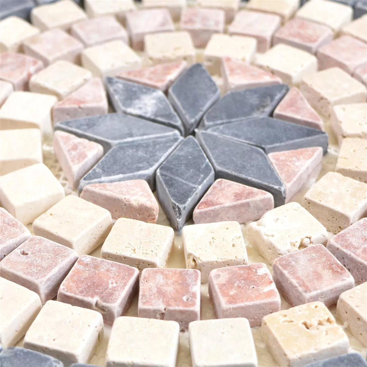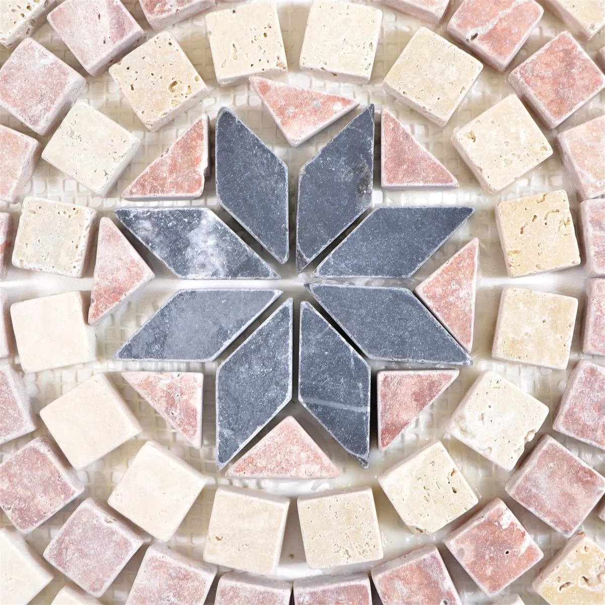 Naturstein Rosone Buxton Beige Rot Schwarz 61x61cm