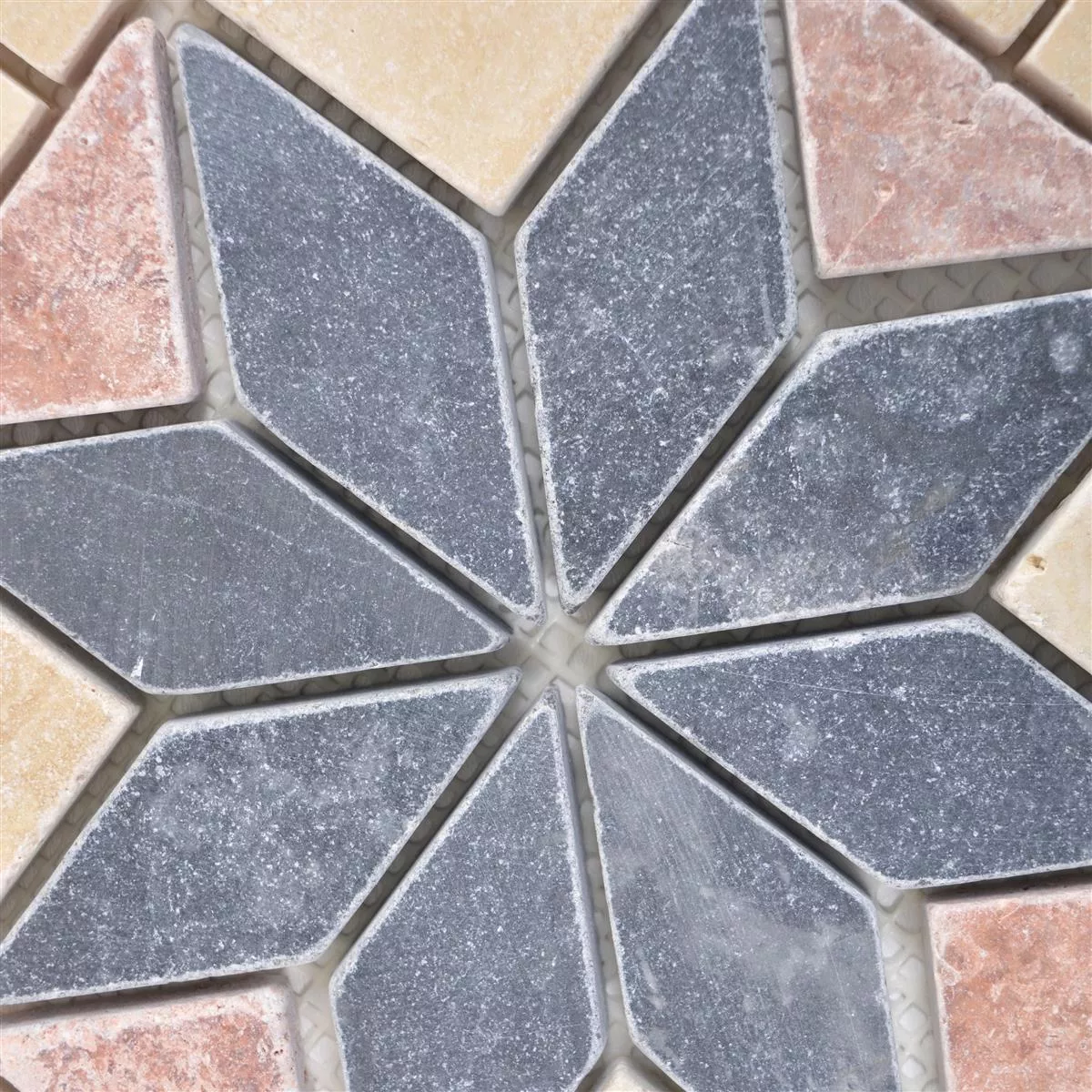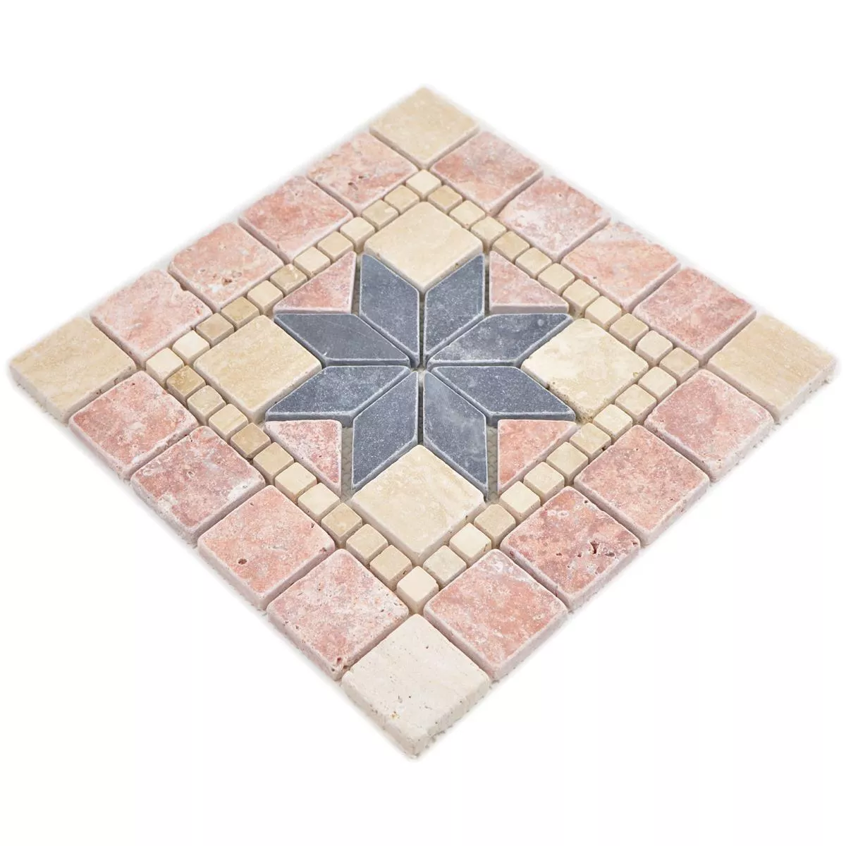 Naturstein Rosone Tarbora Beige Rot Schwarz 30x30cm