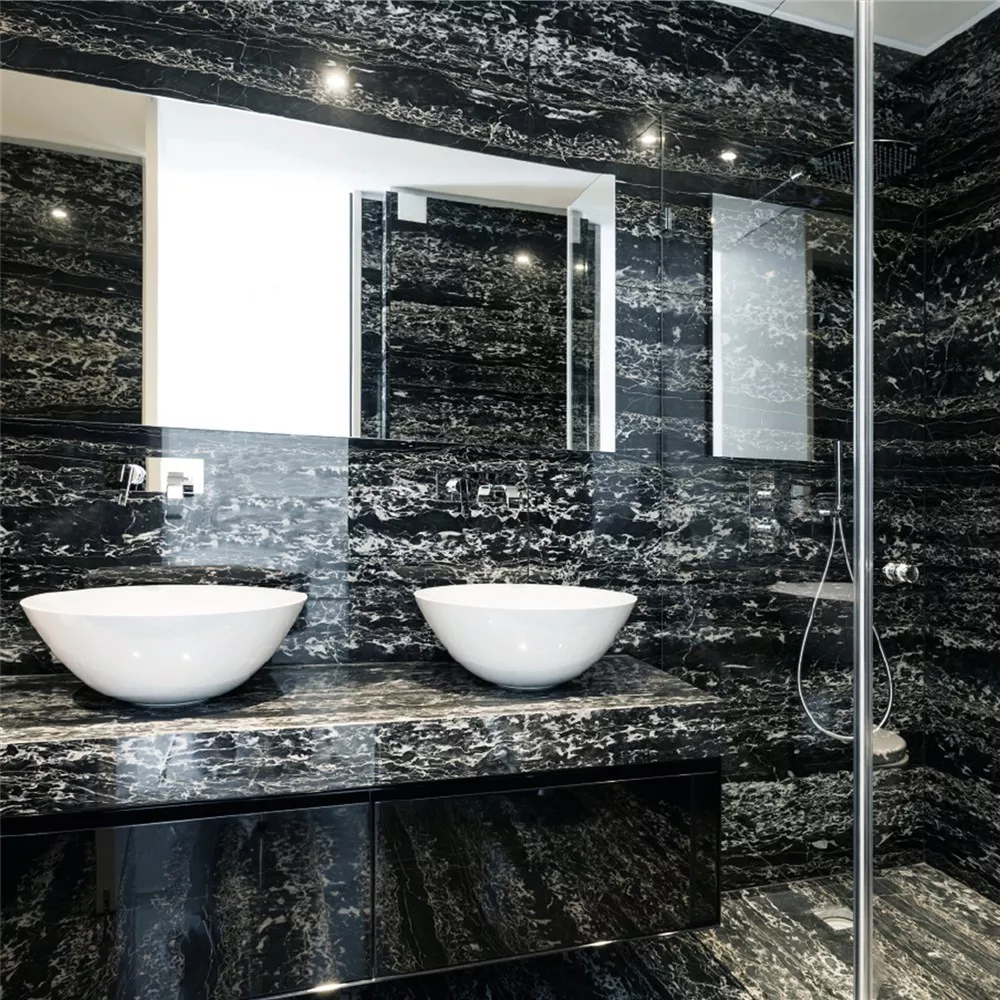 Mit der Natursteinfliese Discovery Nero Galactica 60x60, welche auch noch poliert sind, kann jedes Badezimmer optisch aufgefrischt werden. Selbst wenn dann eine Bodenheizung verwendet werden, oder es etwas kälter im Badezimmer wird, halten diese Bodenfliesen in Natursteinfliesen Optik, jenen Temperaturschwankungen stand. Natursteinfliesen Optik, wenn Schwarz auf Licht trifft Das Polierte der Feinsteinzeugfliesen, oder auch Bodenfliesen kommt erst dann so richtig gut zur Geltung, wenn noch an die passende Beleuchtung gedacht wurde.