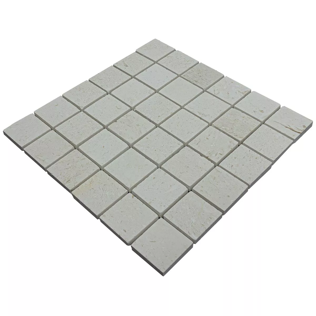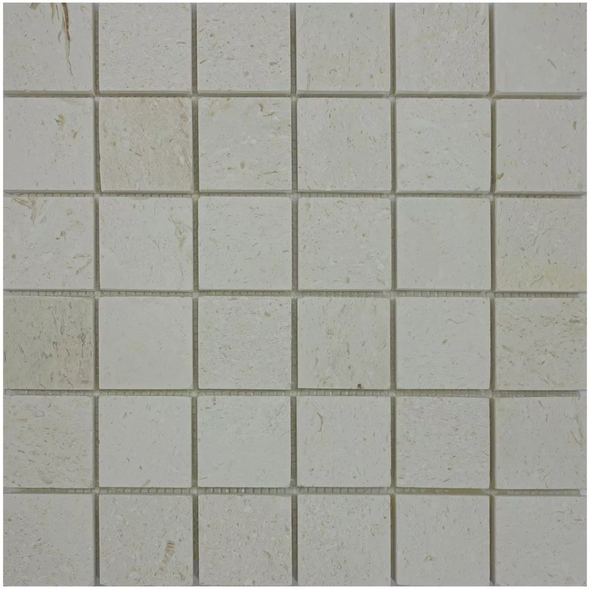 Bringen Sie mit dem Natursteinmosaik Kalkstein Luminares natürliche Eleganz in Ihre Räume. Diese quadratischen Mosaikfliesen in zeitlosem Beige überzeugen mit einer matten Oberfläche und einer robusten Stärke von 10mm. Mit einer Fliesengröße von 30,5x30,5cm und einer Steingröße von 48x48mm bieten sie Vielseitigkeit für Badezimmer, Küchen, Wohnräume und andere Innenbereiche, auch in Nasszonen und Duschen. Dank der Beanspruchungsklasse Abrieb 3 sind sie strapazierfähig und langlebig. Jede Packung wiegt 2,2 kg und deckt eine Fläche von 0,093m². Das hochwertige Natursteinmaterial und die 4mm breiten Fugen schaffen ein stilvolles, harmonisches Ambiente. Perfekt als Boden- und Wandfliese geeignet, vereinen sie Funktionalität und Ästhetik.